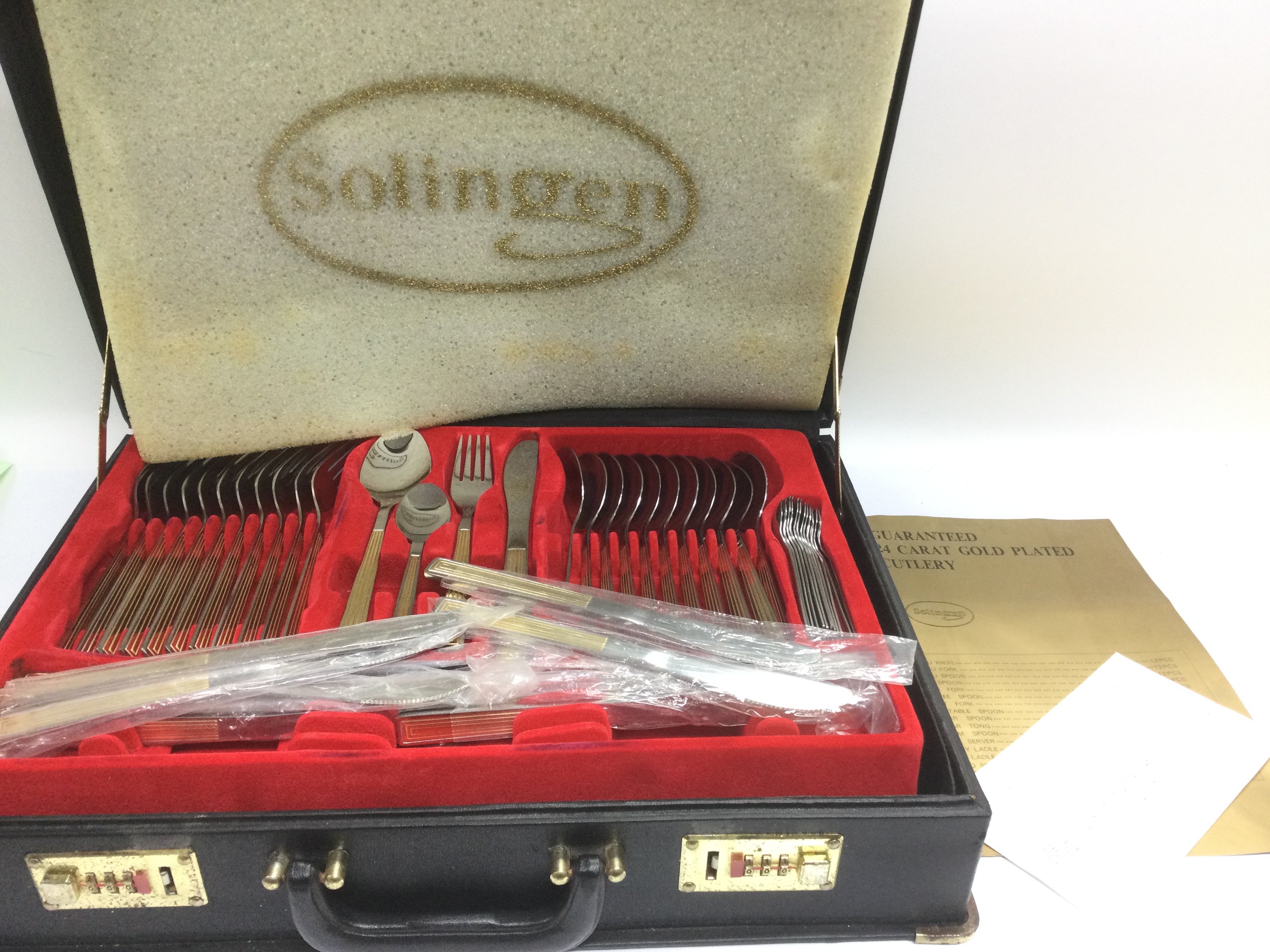 A cased canteen of Solingen gold plated cutlery. Shipping category C.