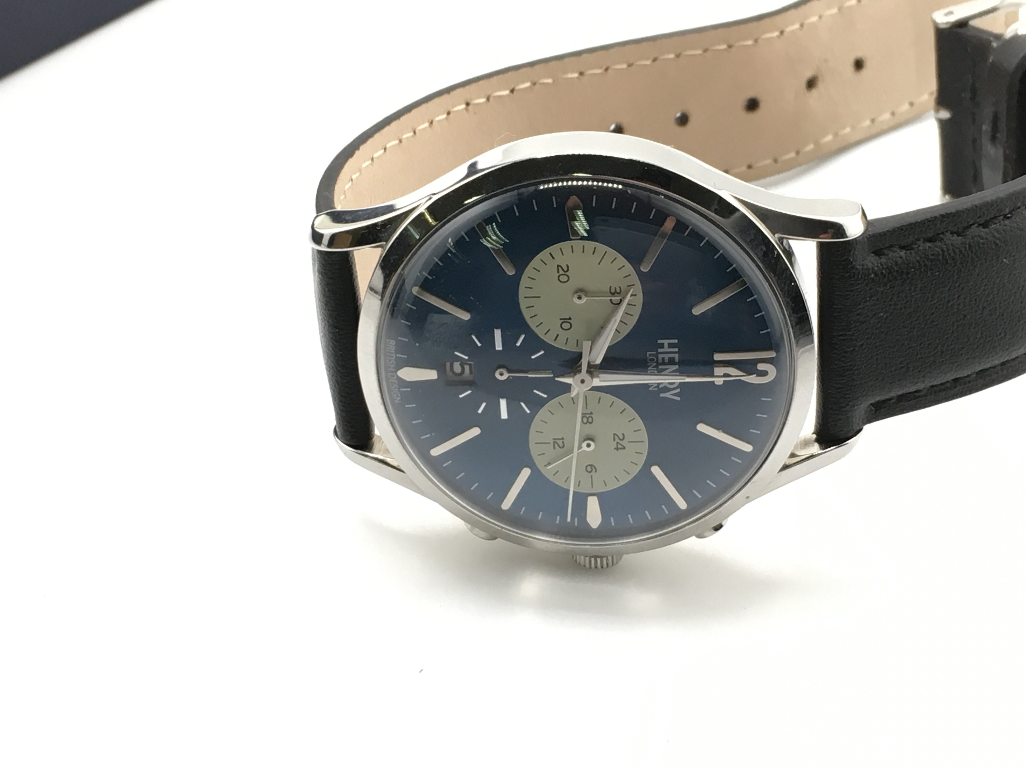 A Henry of london gents chronograph watch with box. Not seen running. Approximately 42mm including crown. NO RESERVE