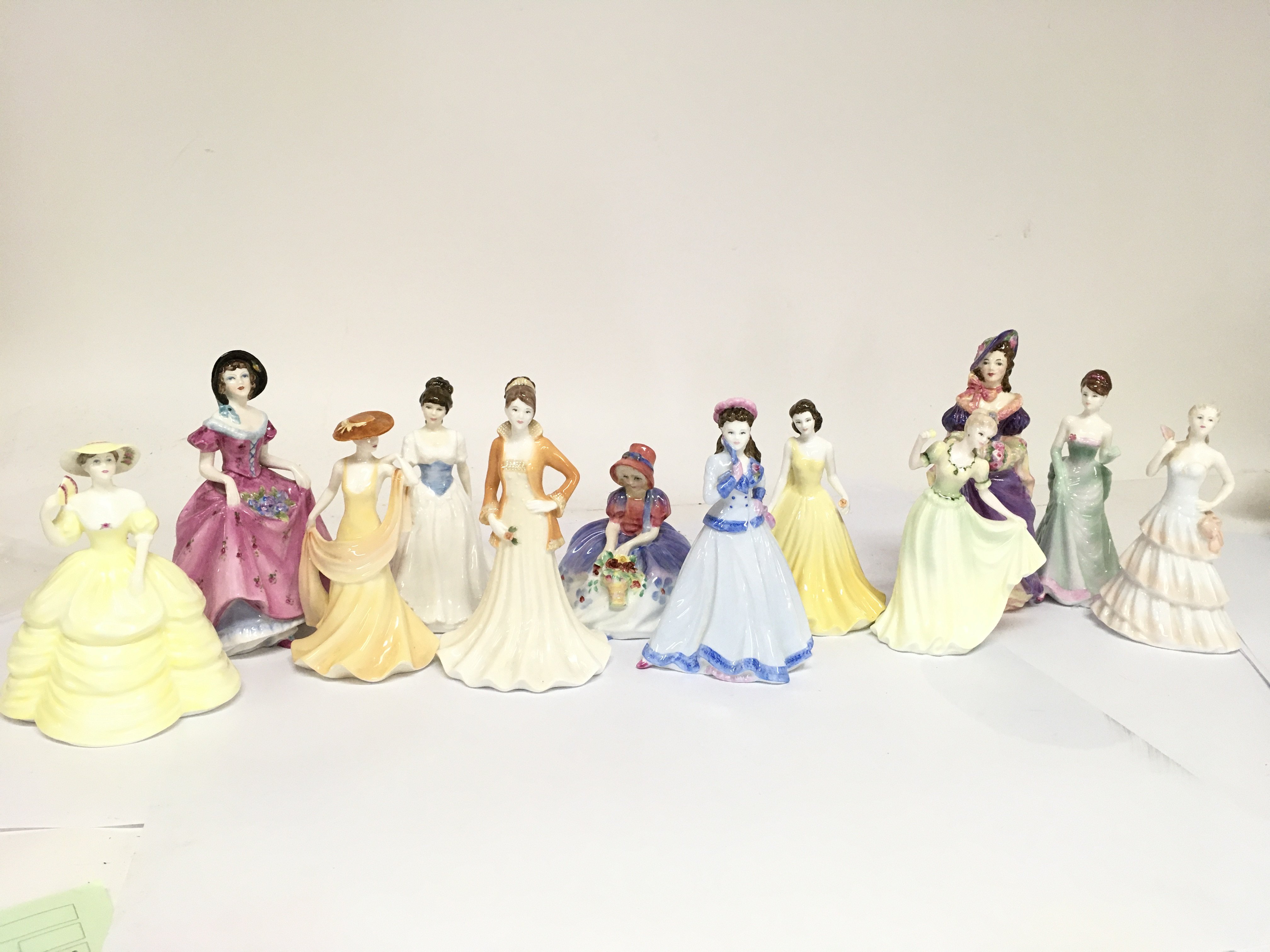 A Collection of small Coalport porcelain lady figures including Debutante Fiona, Katie, April Etc This lot cannot be posted