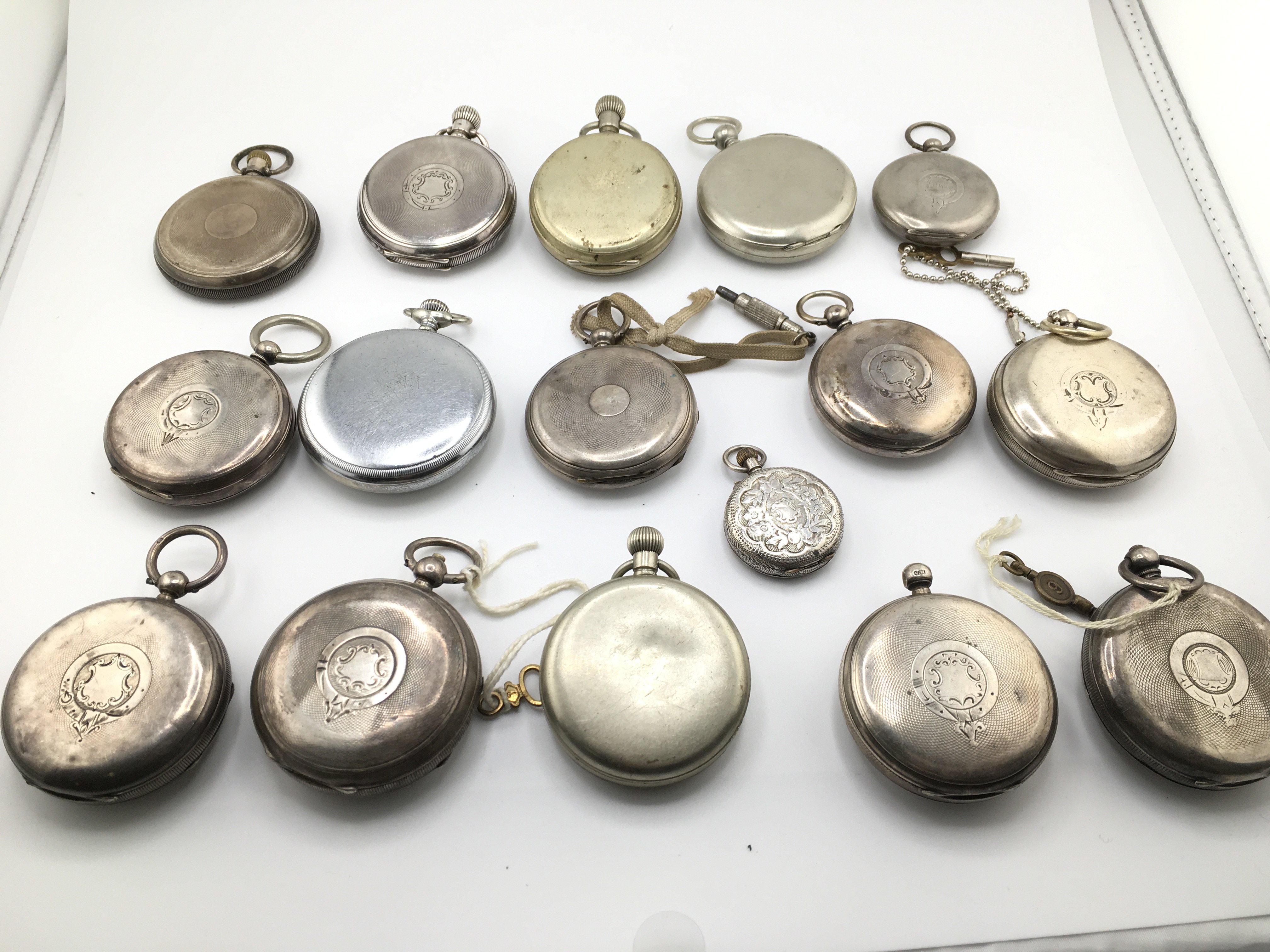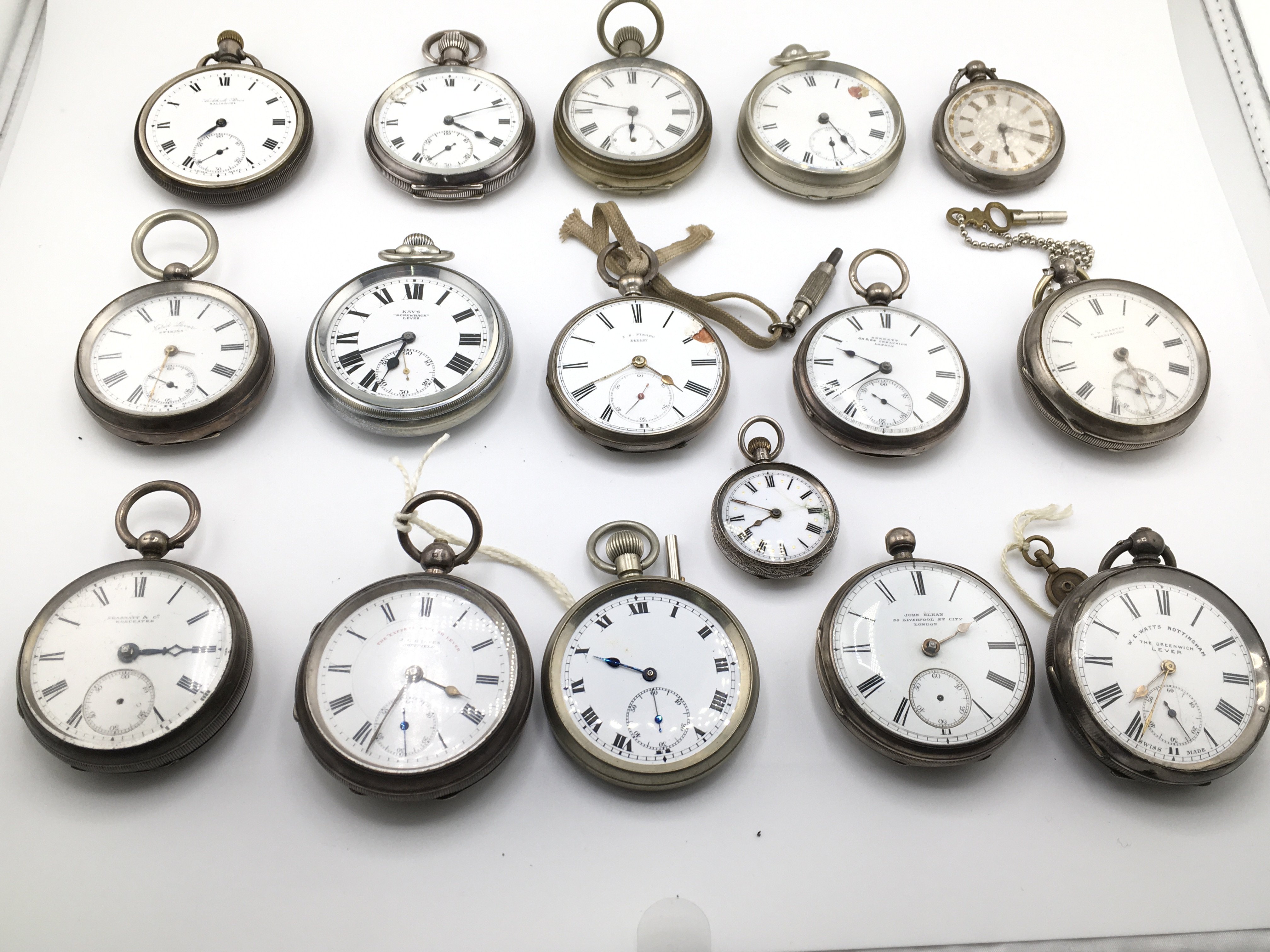 A large collection of of assorted pocket watches the majority are silver cased. Postage B