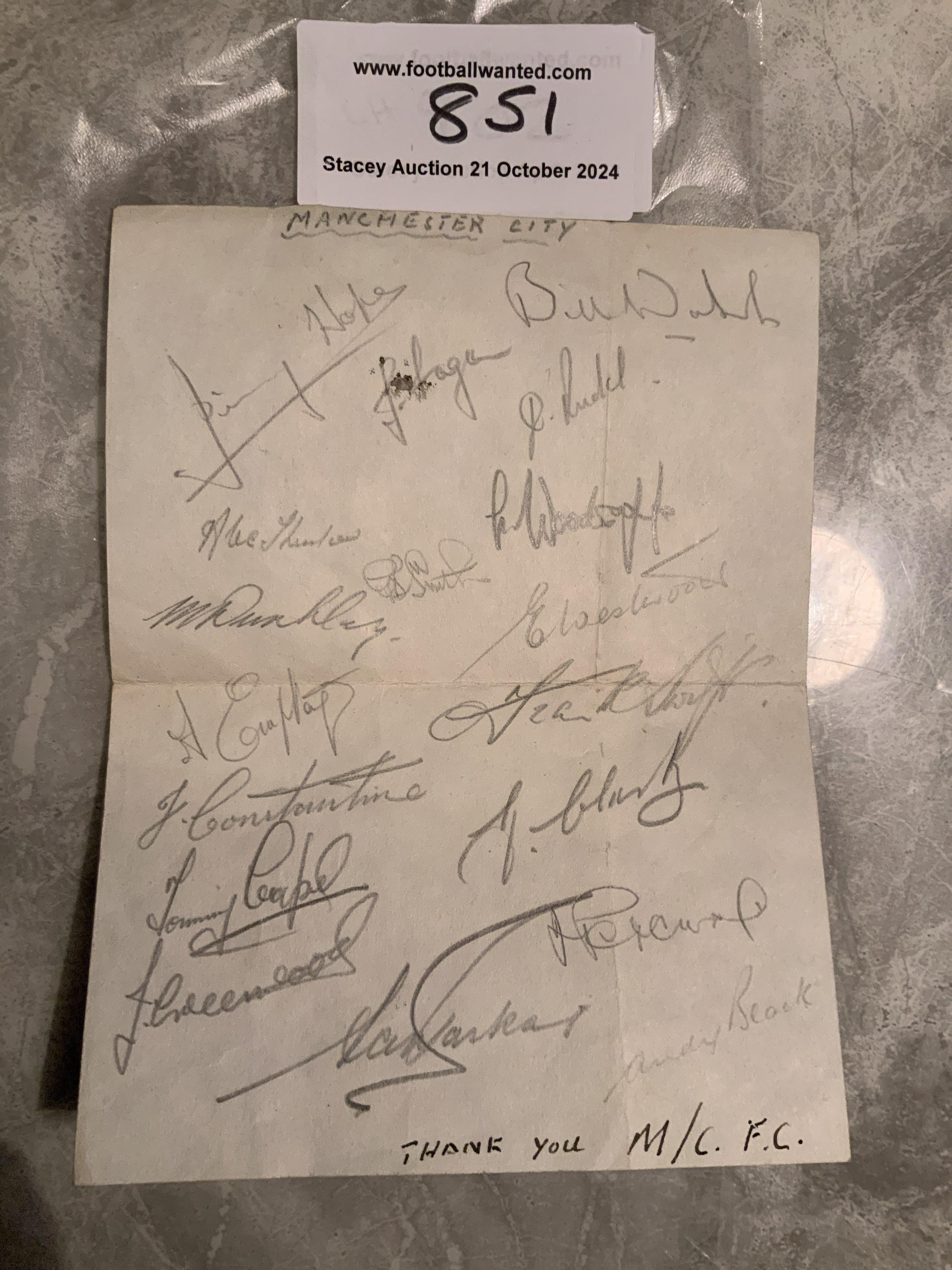 Manchester City Champions 46/47 Signed Football Page: 18 autographs in pencil from the division two winners including Fagan Walsh Dunkley and Constantine.