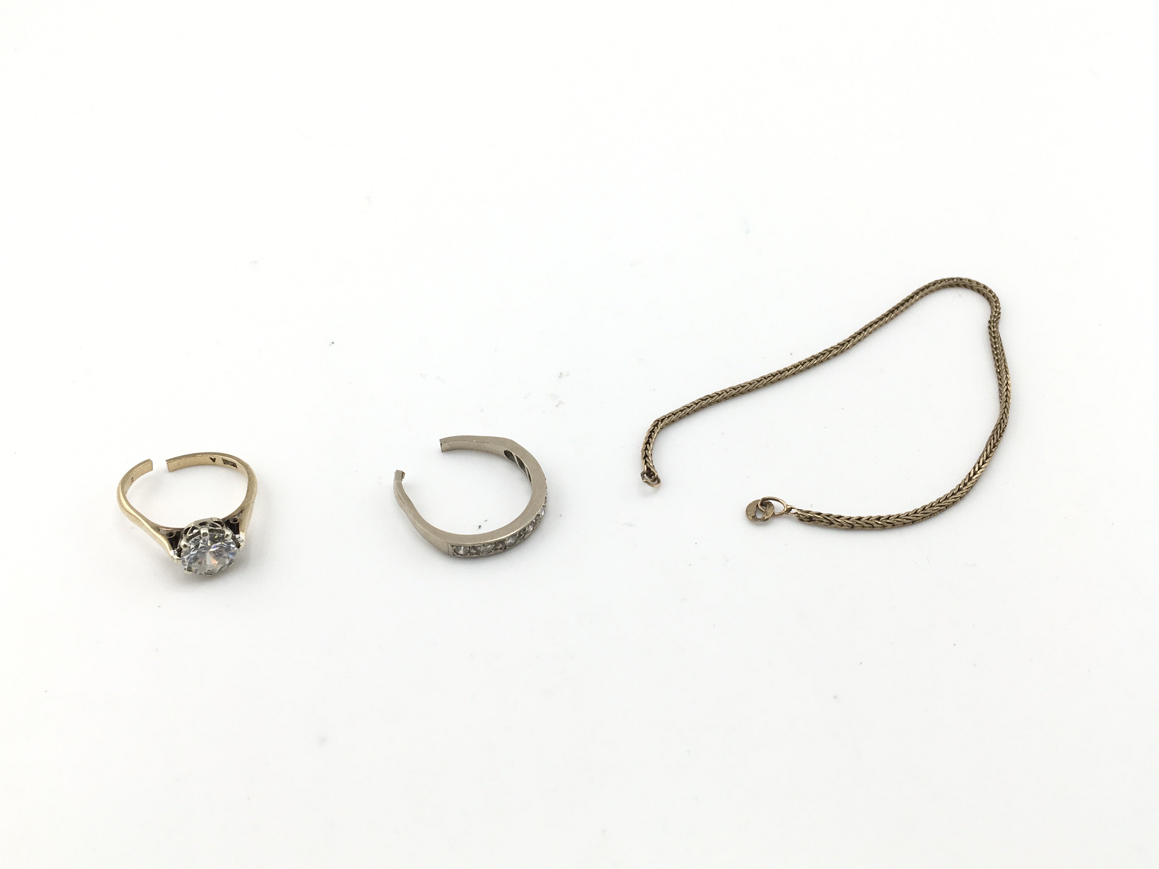 Three items of 9ct gold jewellery including 2 rings and a bracelet all a/f 6.91g total. Postage A