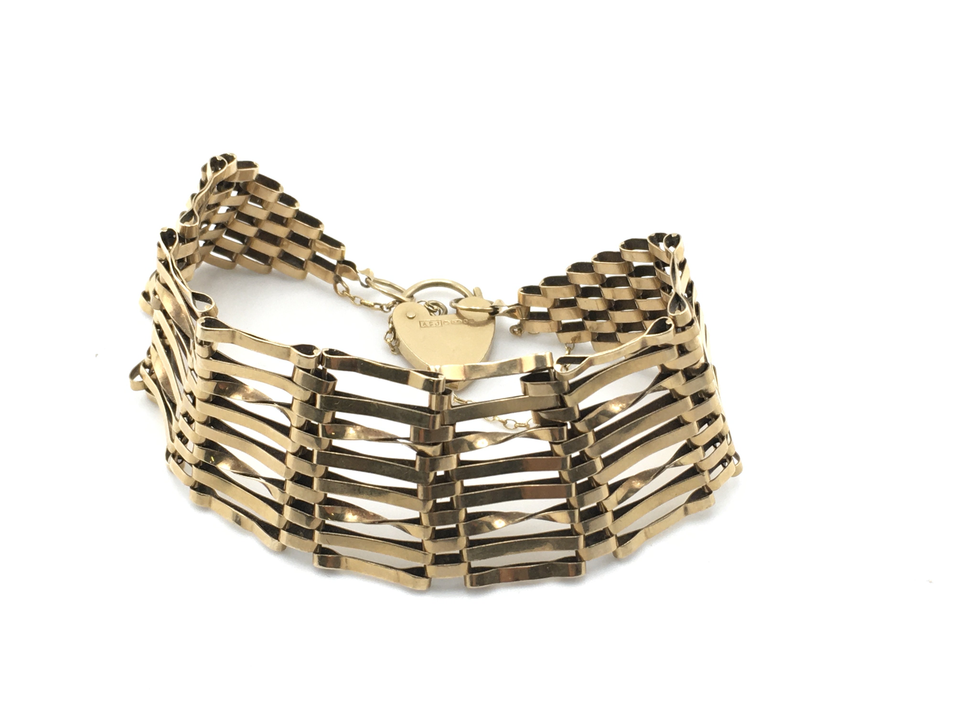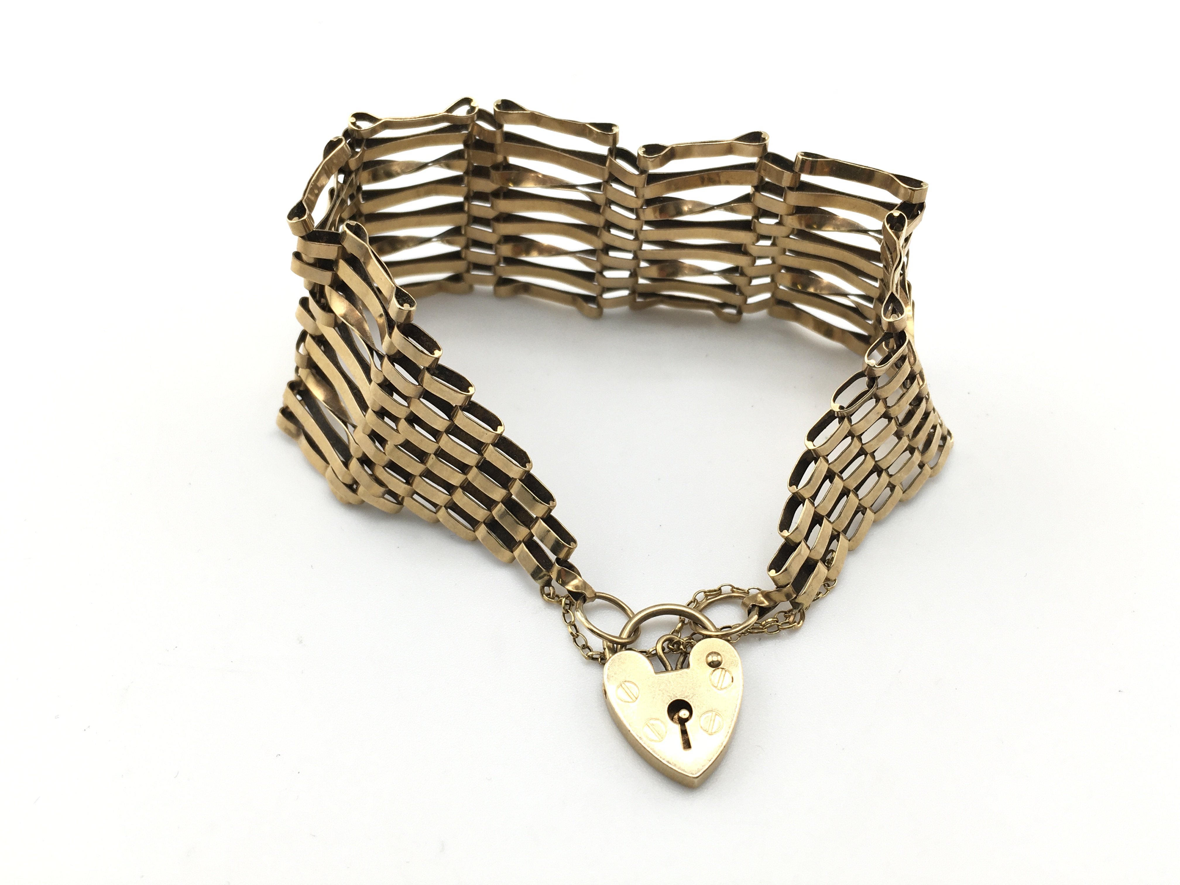A 9ct gold gate bracelet with heart padlock. 15.32g Postage A