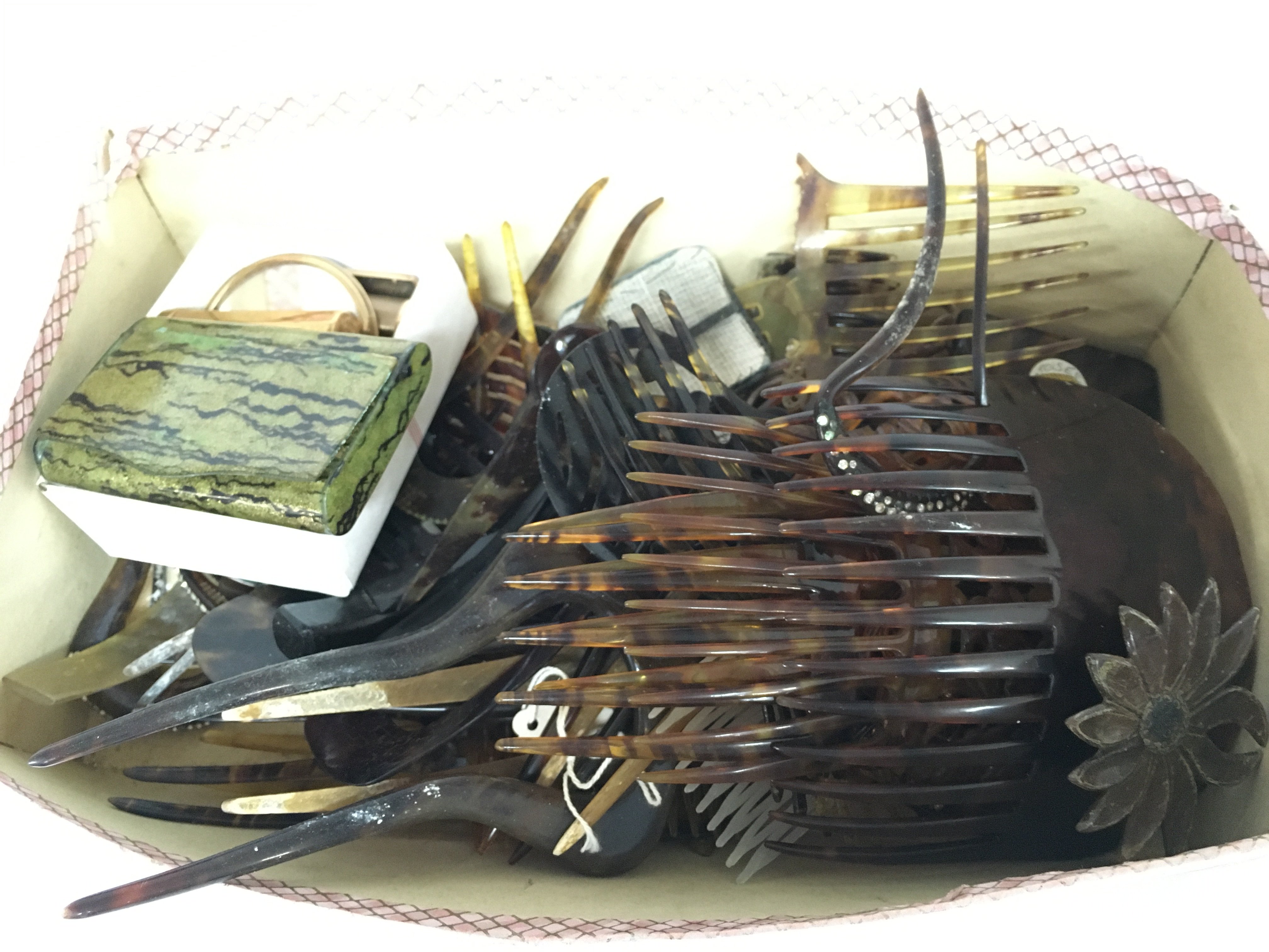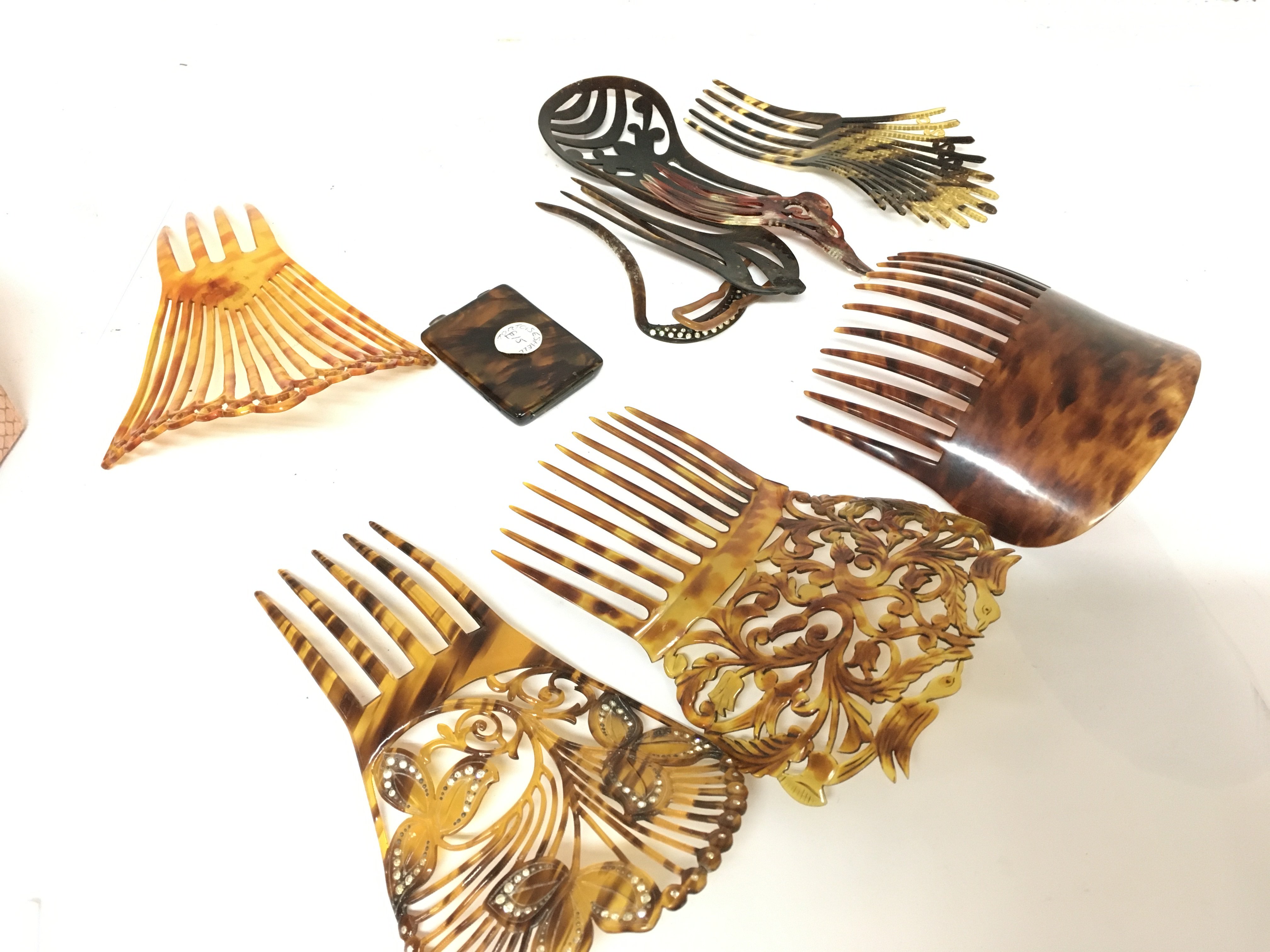 A Collection of vintage tortoiseshell combs and other items. Postage cat B