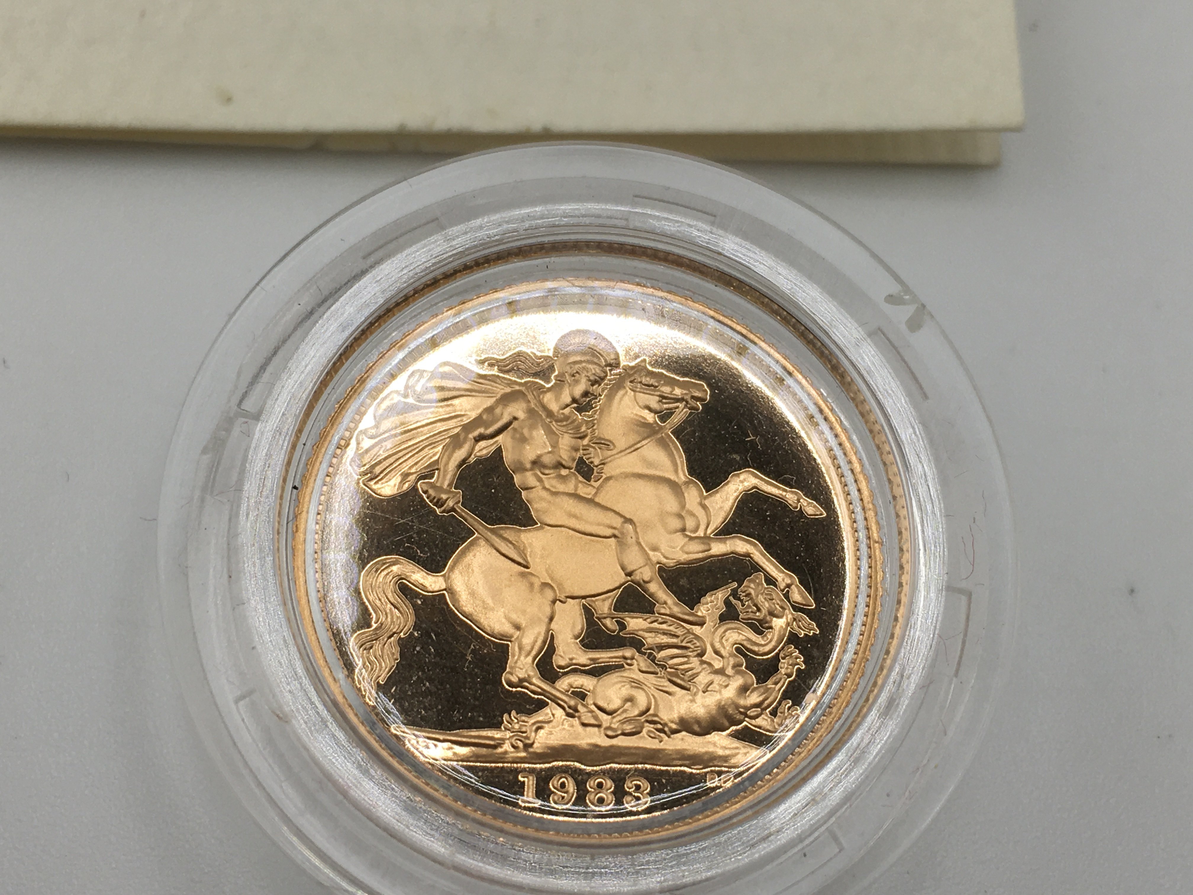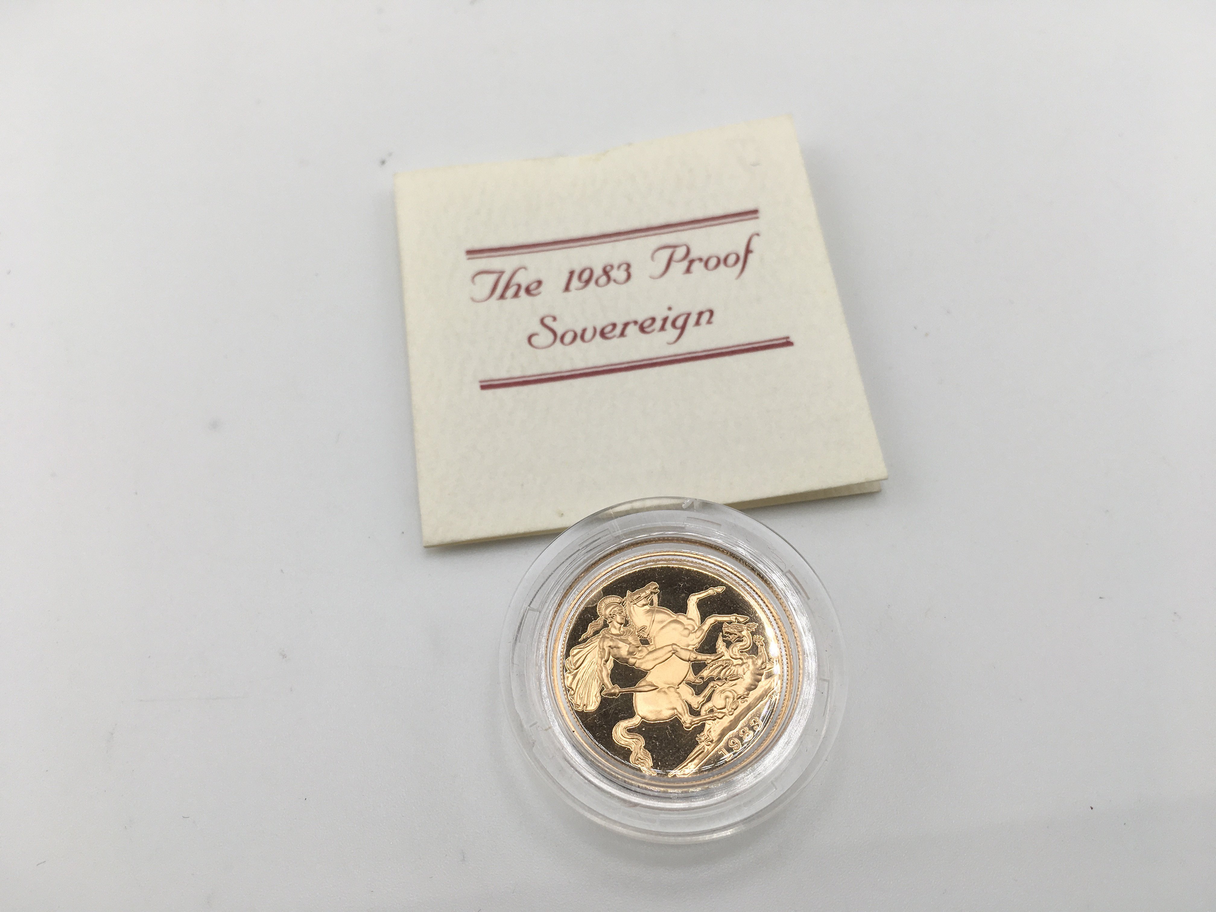 WITHDRAWN - A 1983 full proof sovereign with COA Postage B