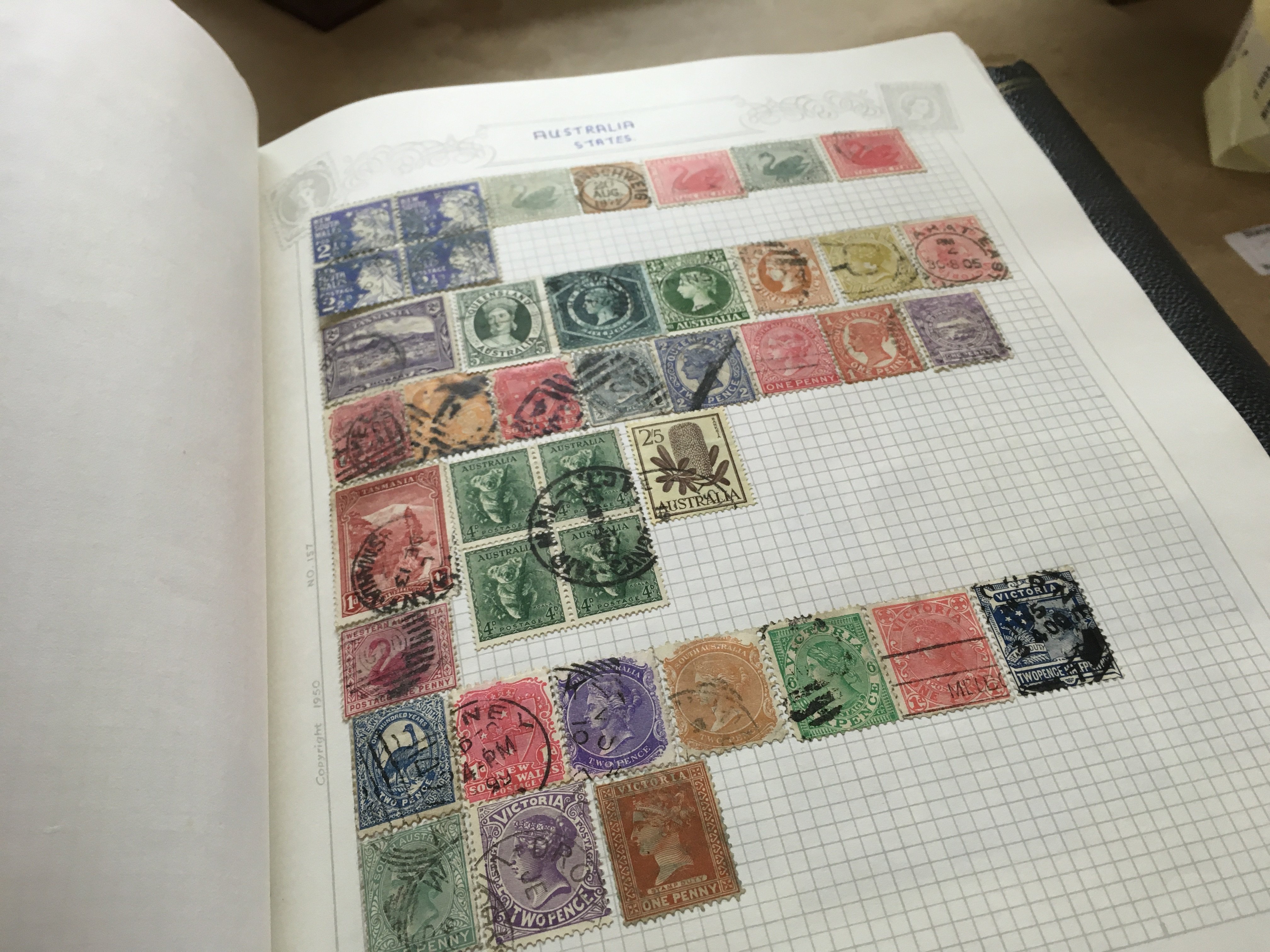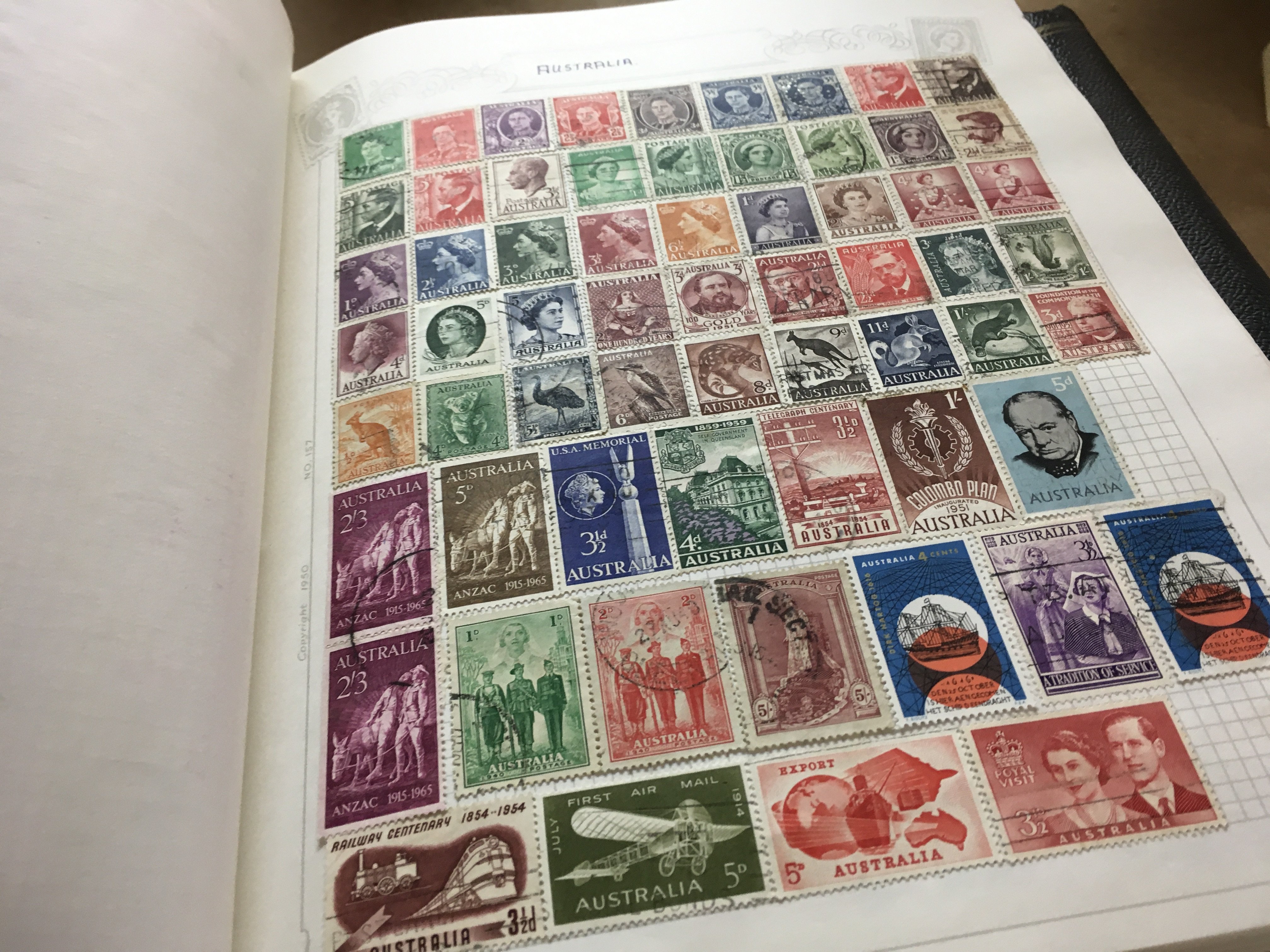 A Collection of nine stamp albums containing world stamps from Queen Victoria to Elizabeth II mostly used stamps. An interesting mixed collection. Postage category C