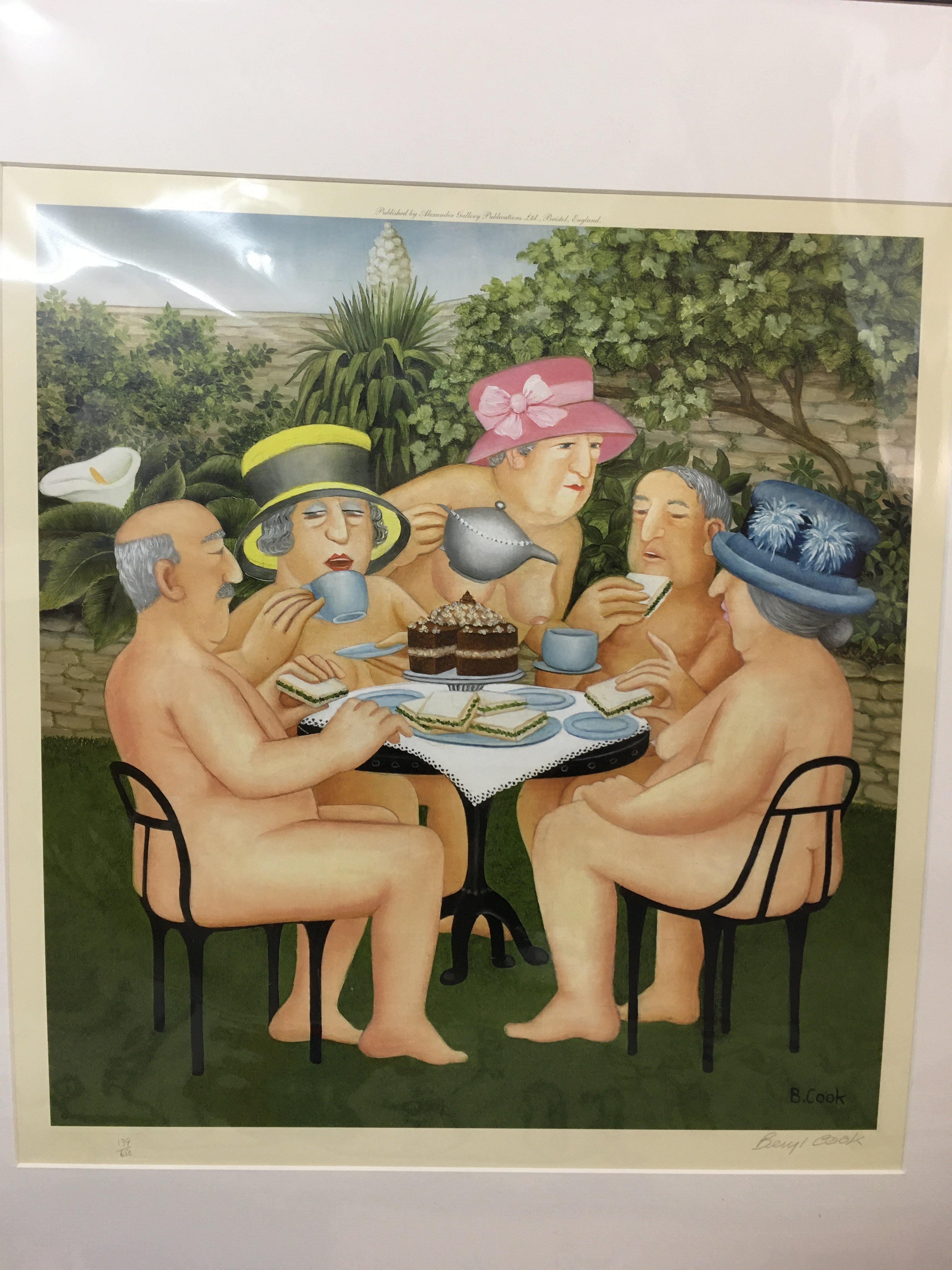 A signed Limited Edition Beryl Cook print 139/650 " Tea in the Garden"