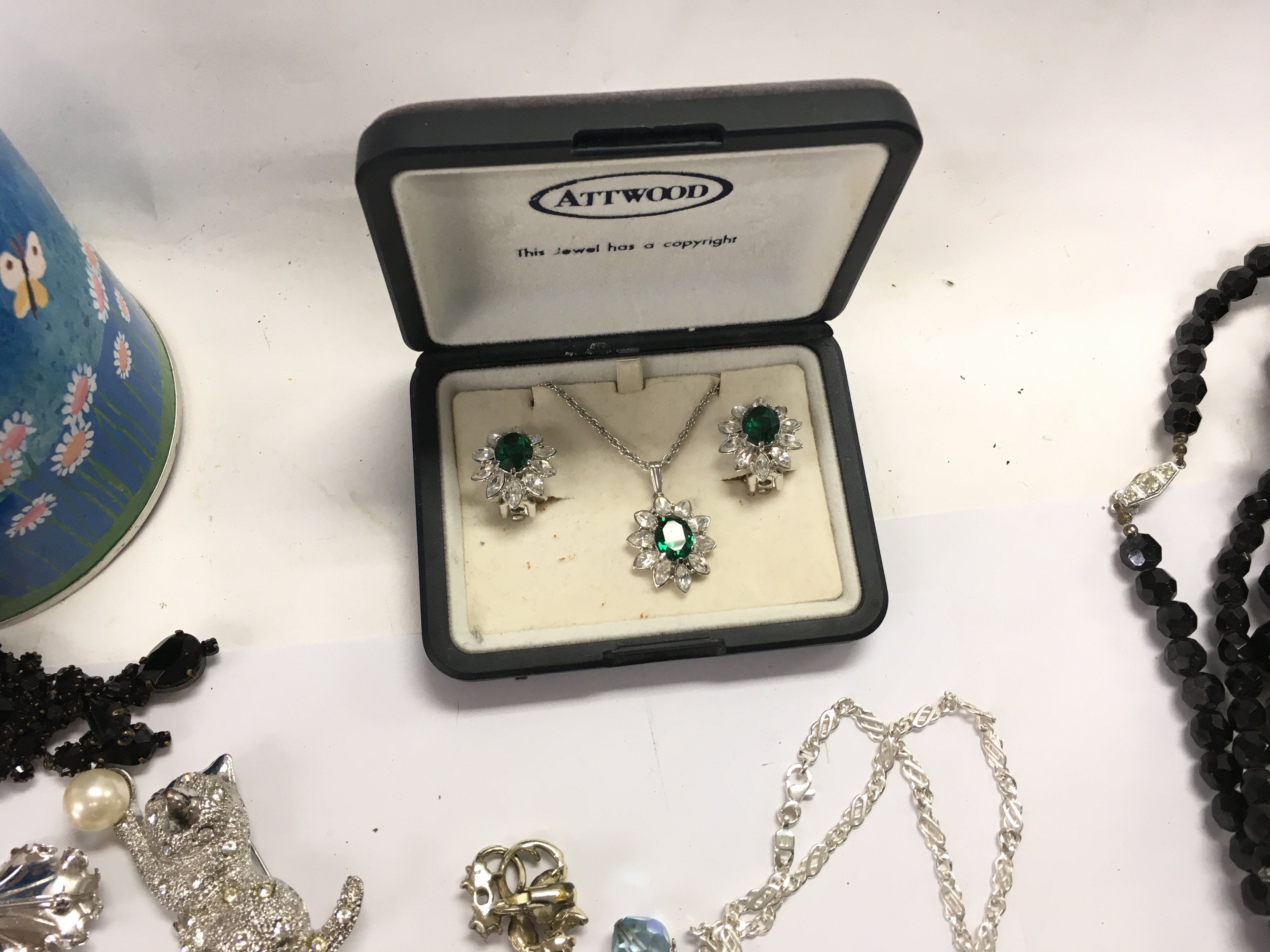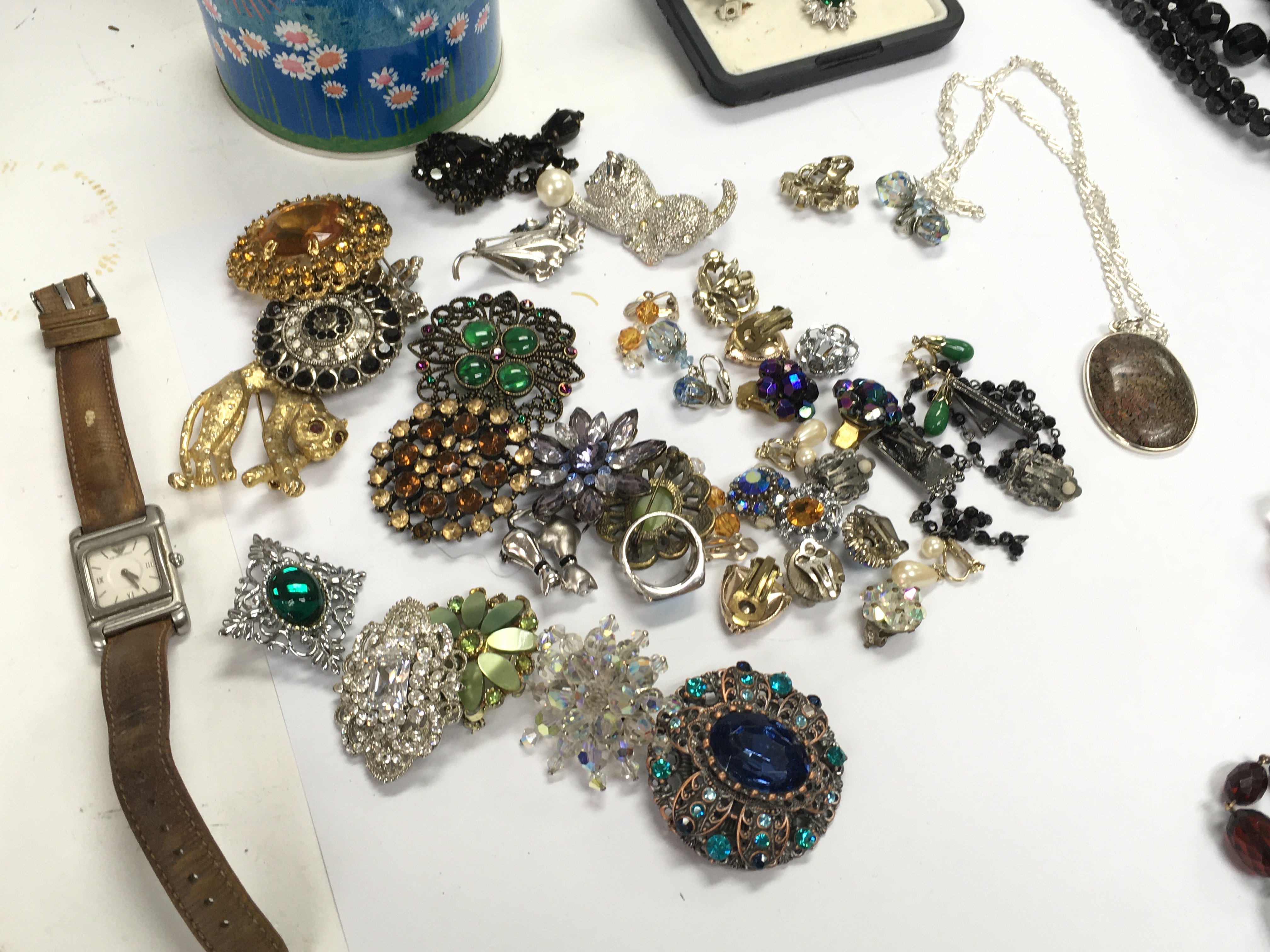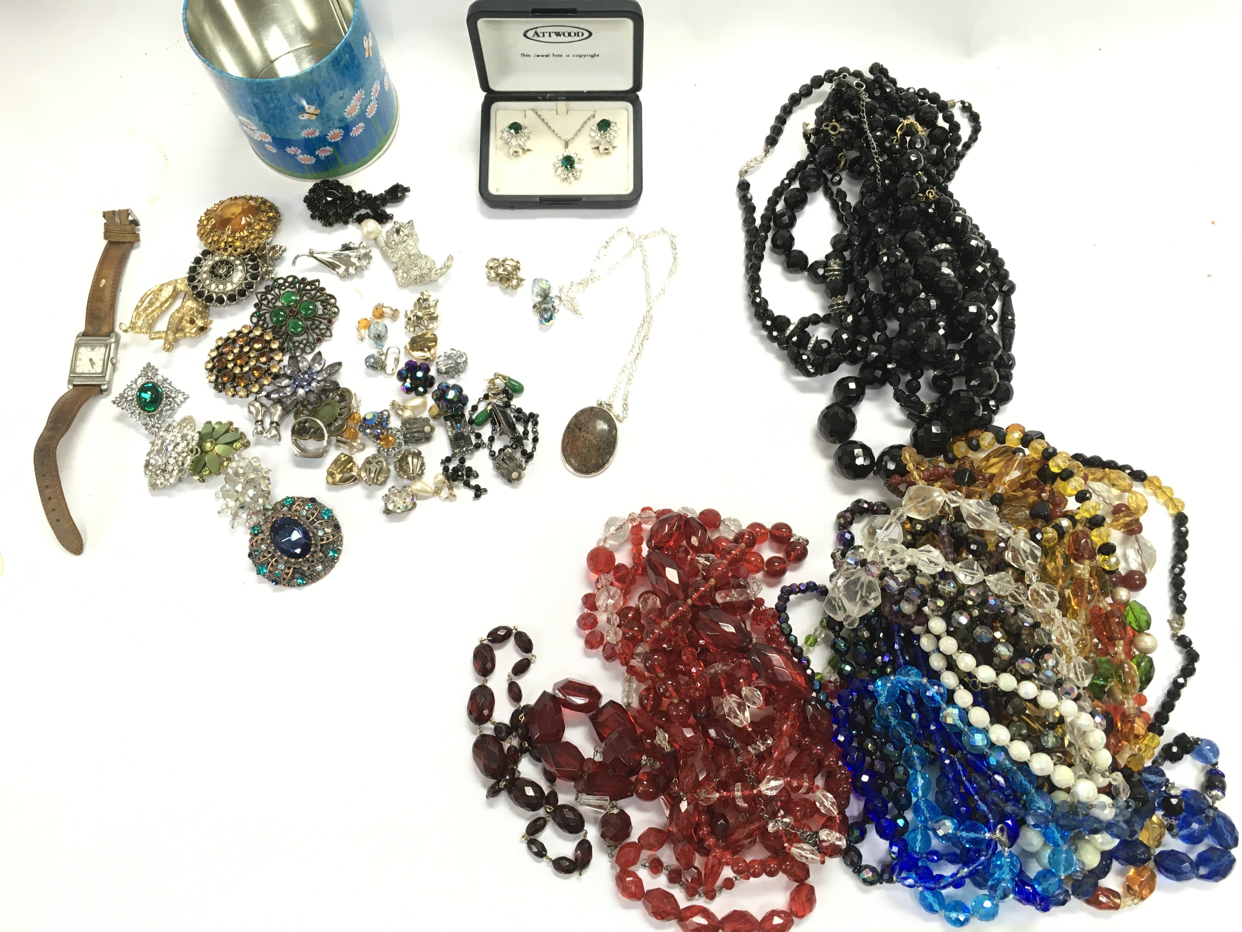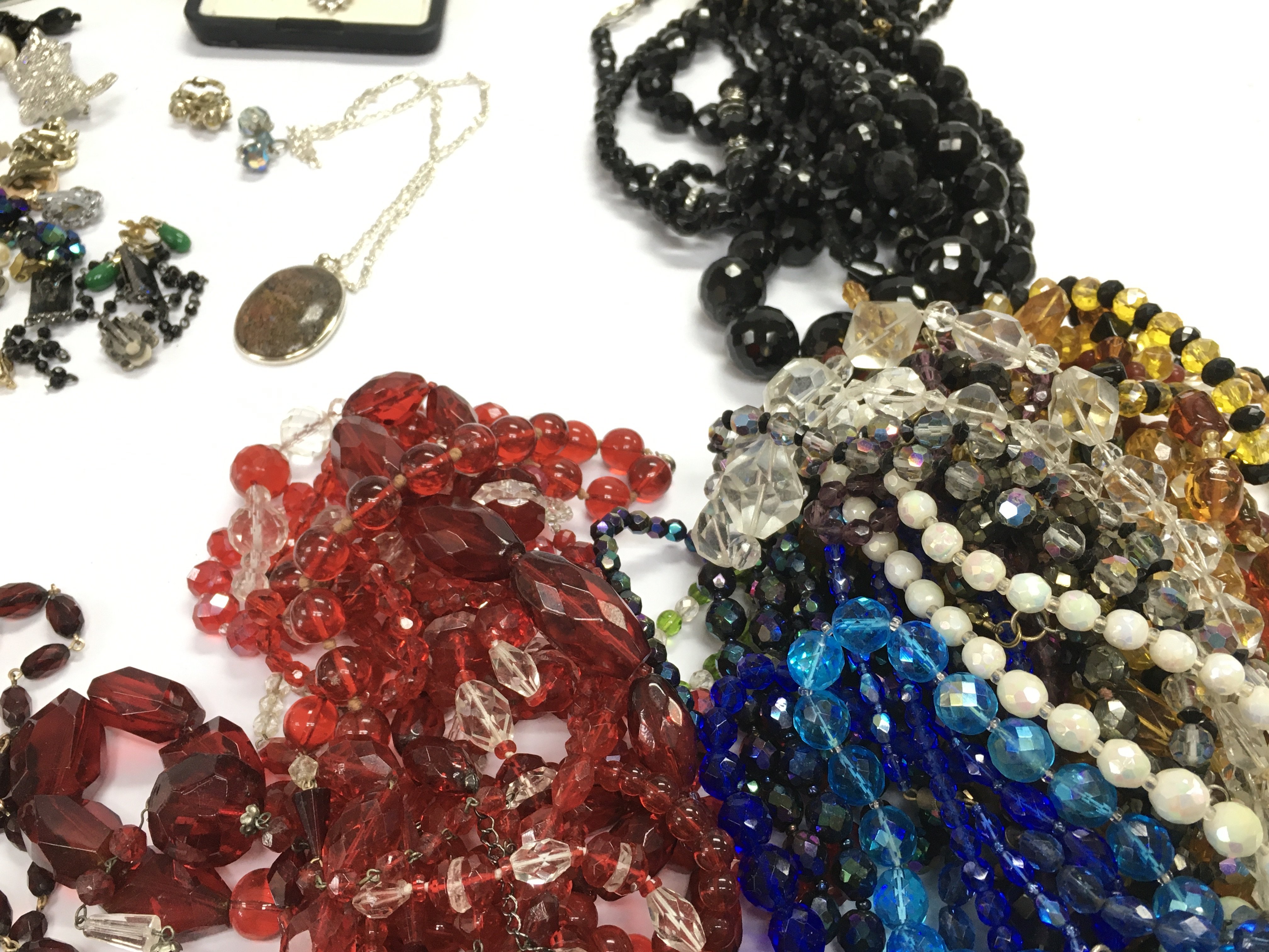 A large collection of assorted costumes jewellery including brooches necklaces and beaded jewellery. Postage B