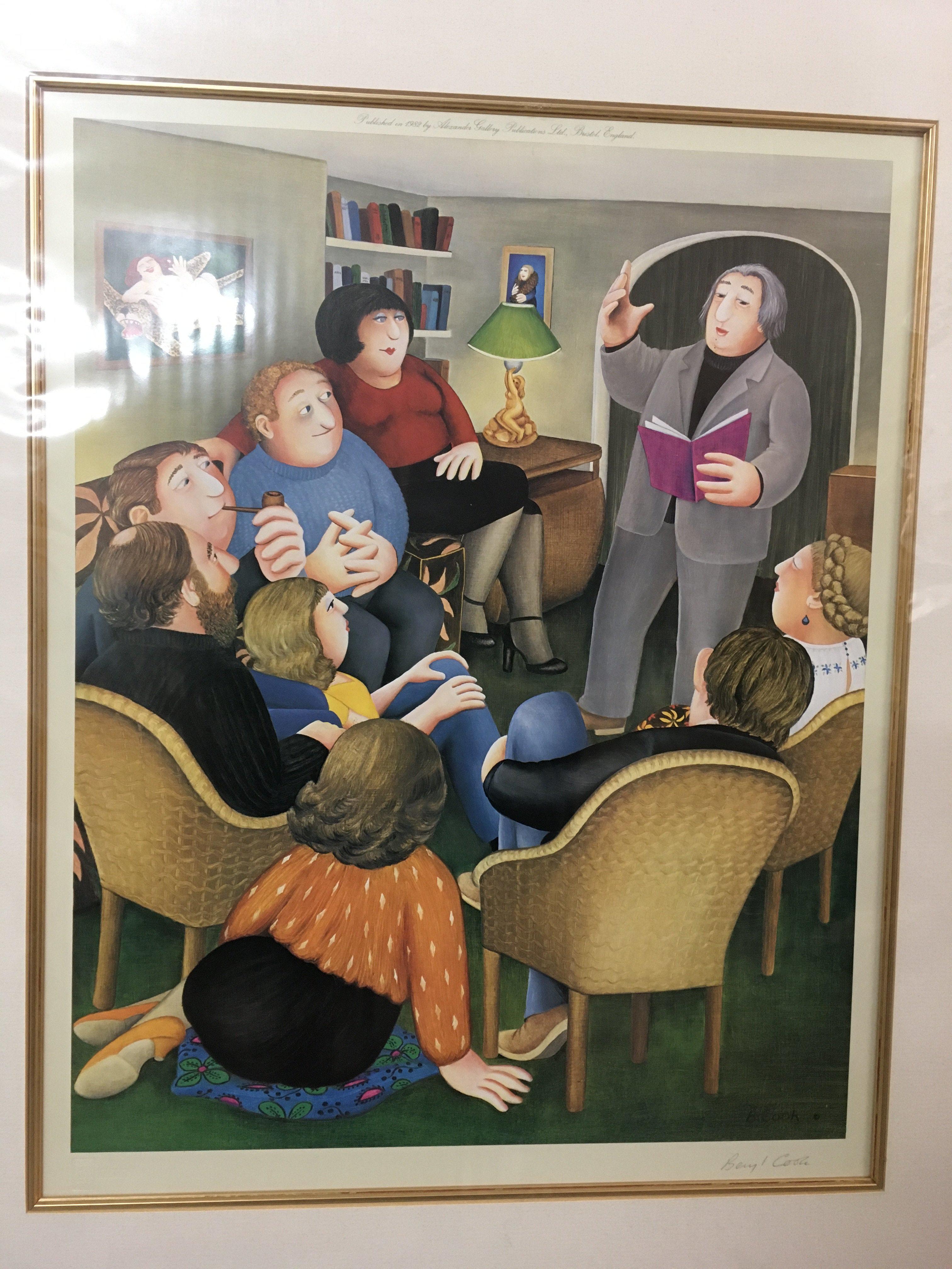 A signed limited edition Beryl Cook print " Peotry Reading"