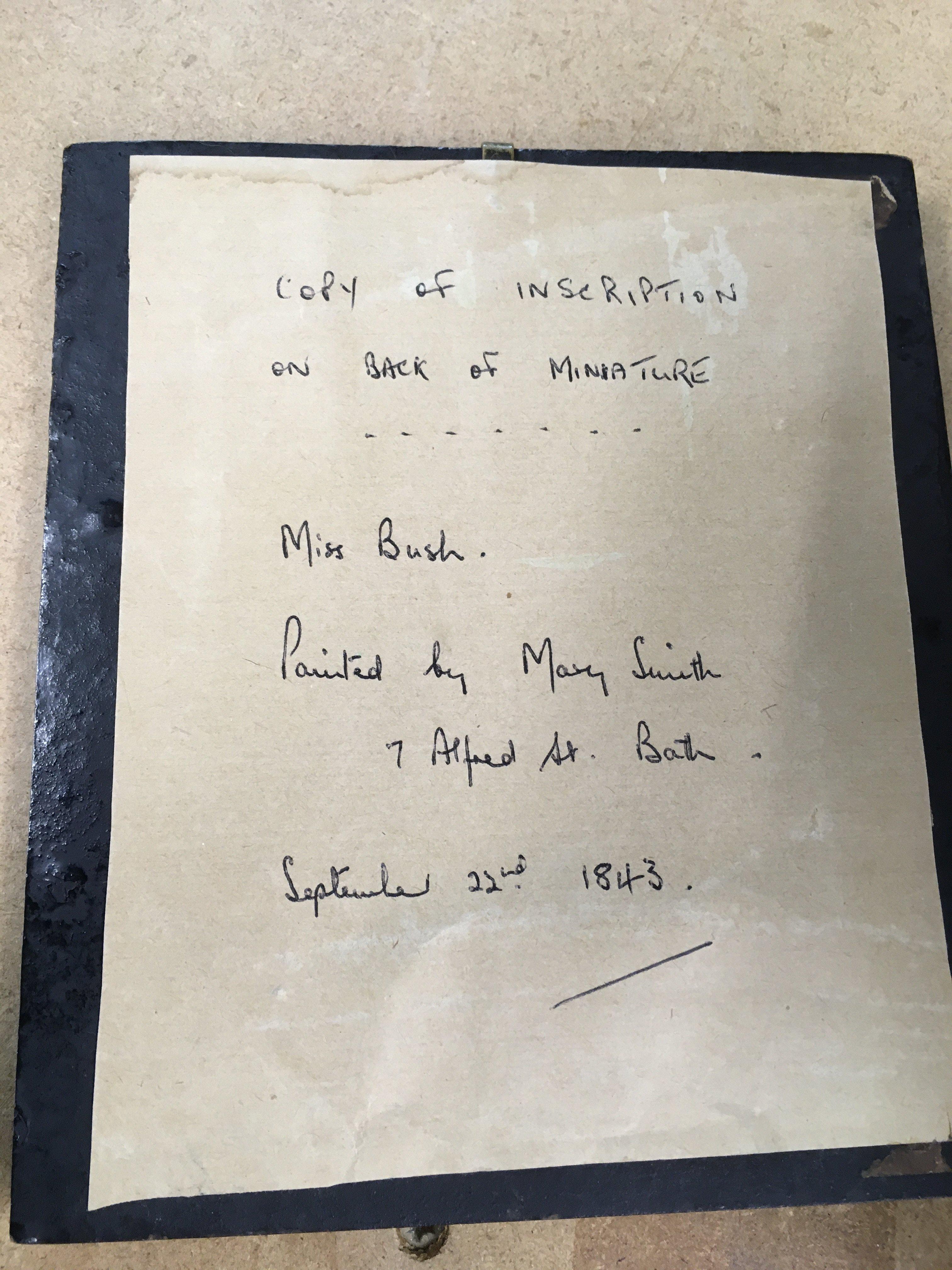 A 19th century miniature by Mary Smith depicting Miss Bush