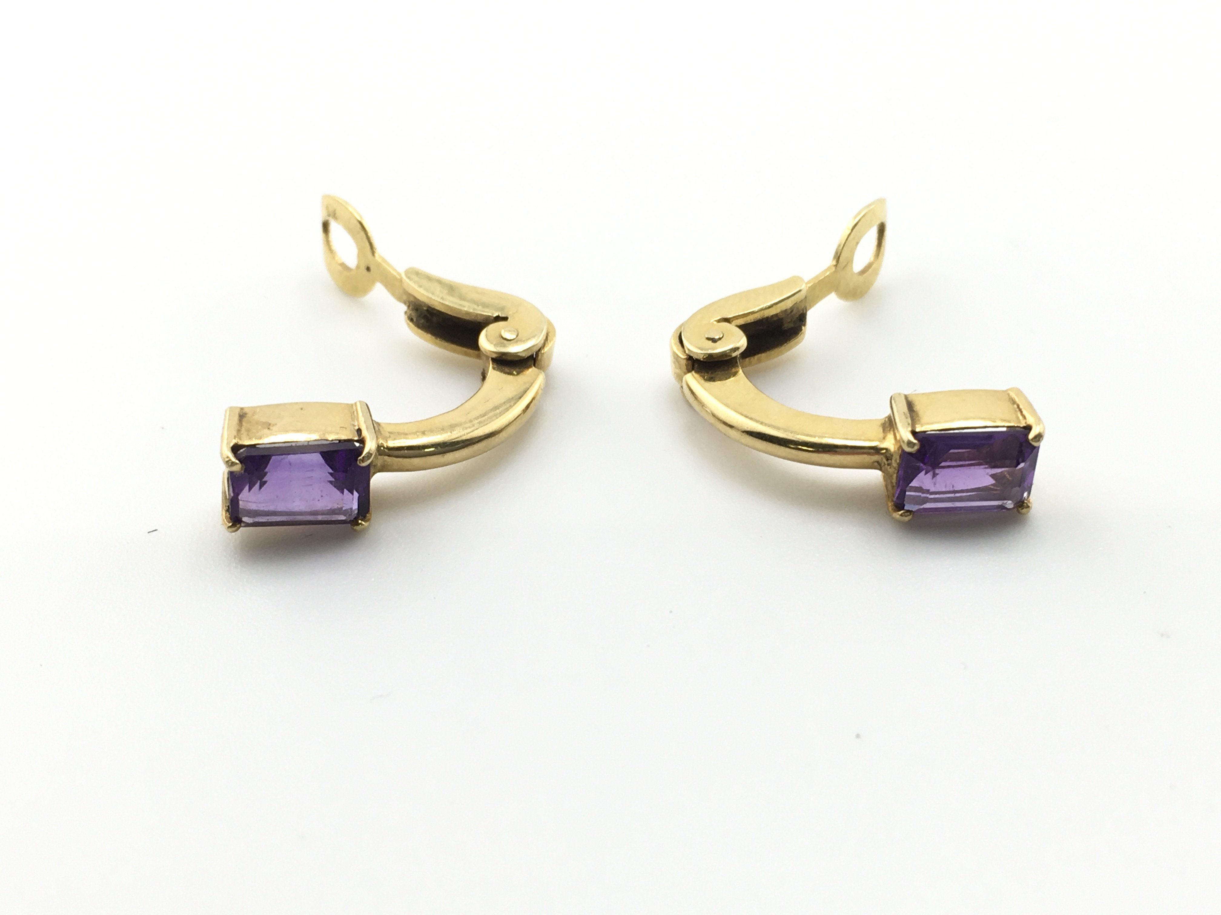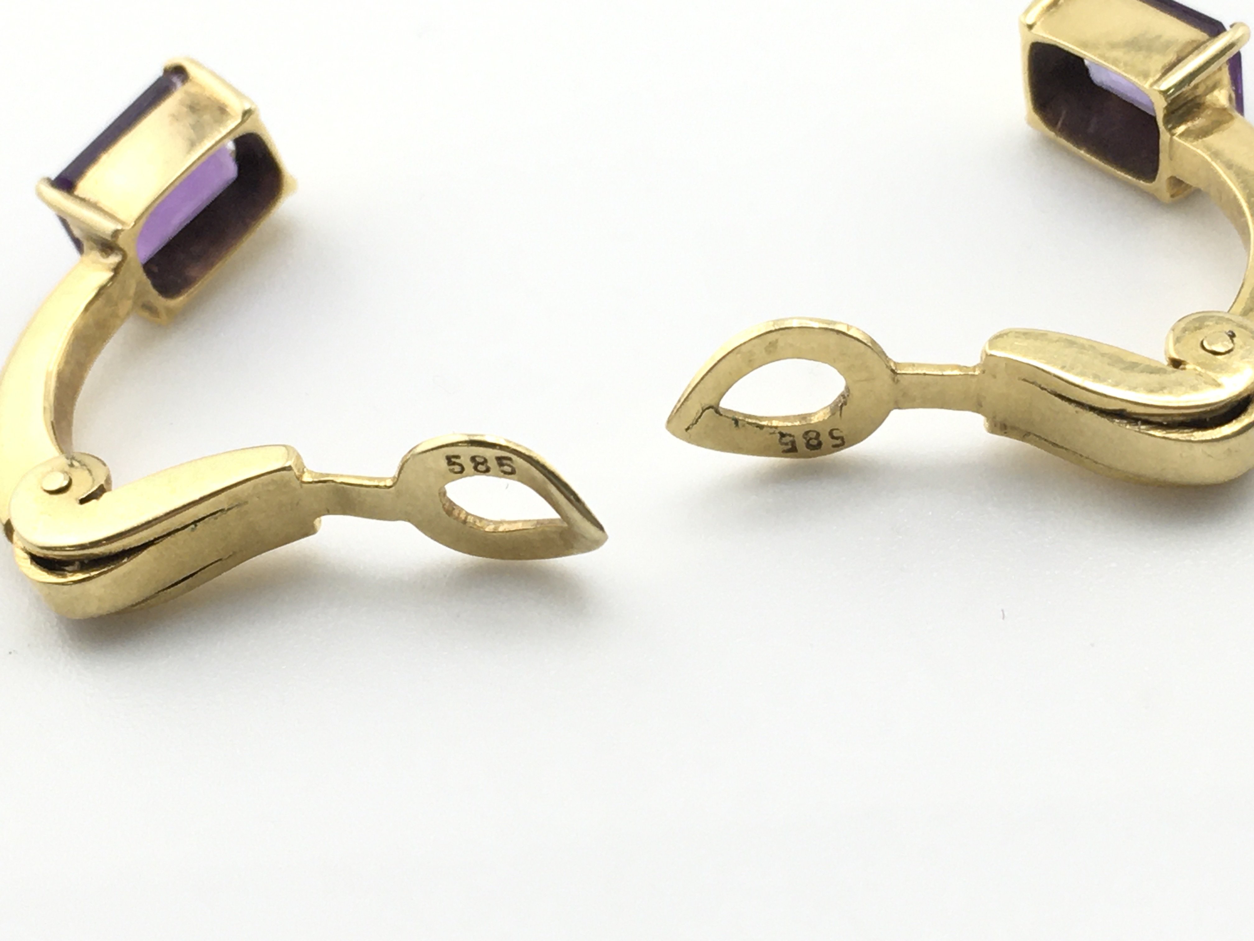 A pair of 14ct gold and amethyst clip on earrings. 4.64g Postage A