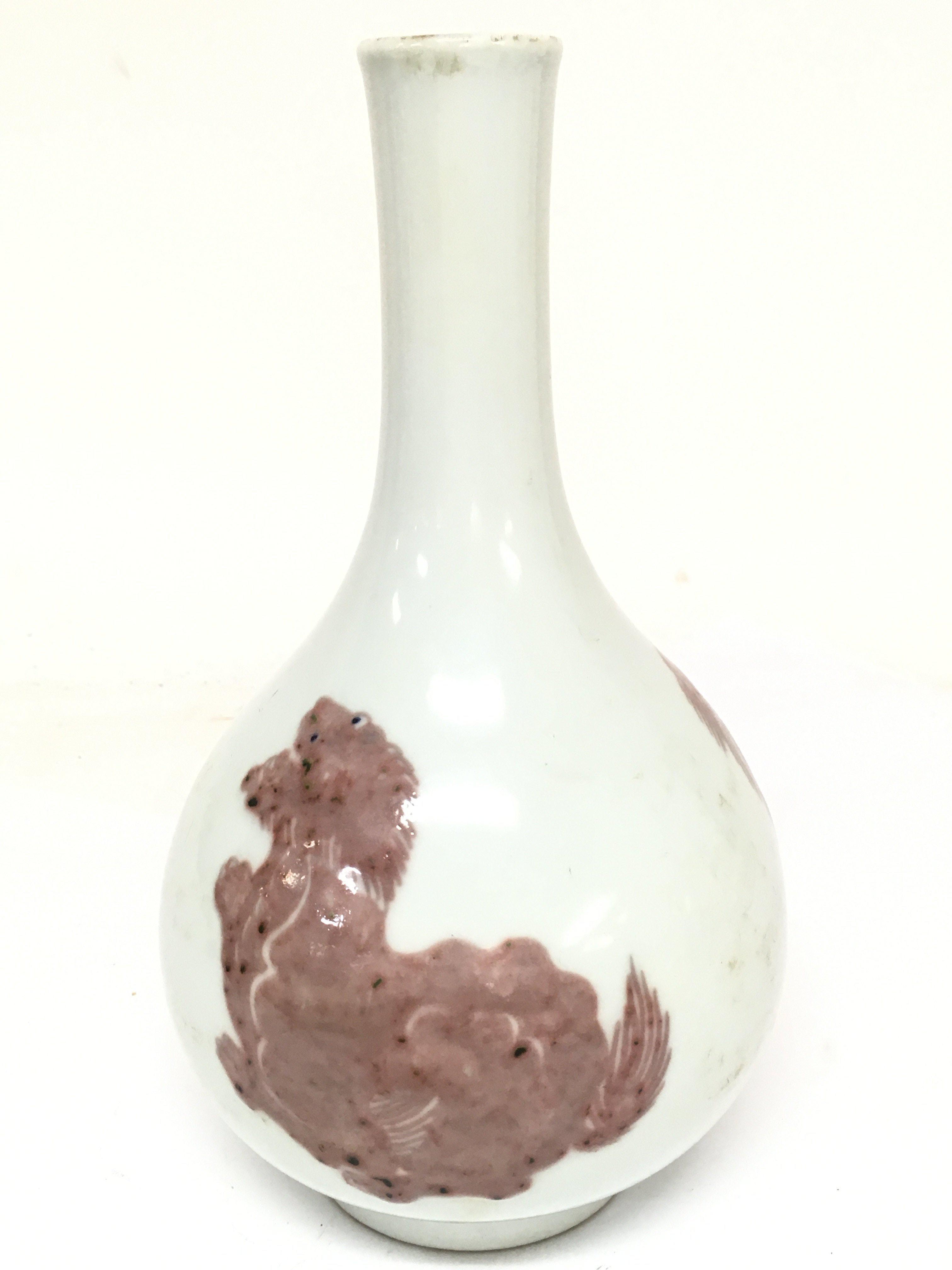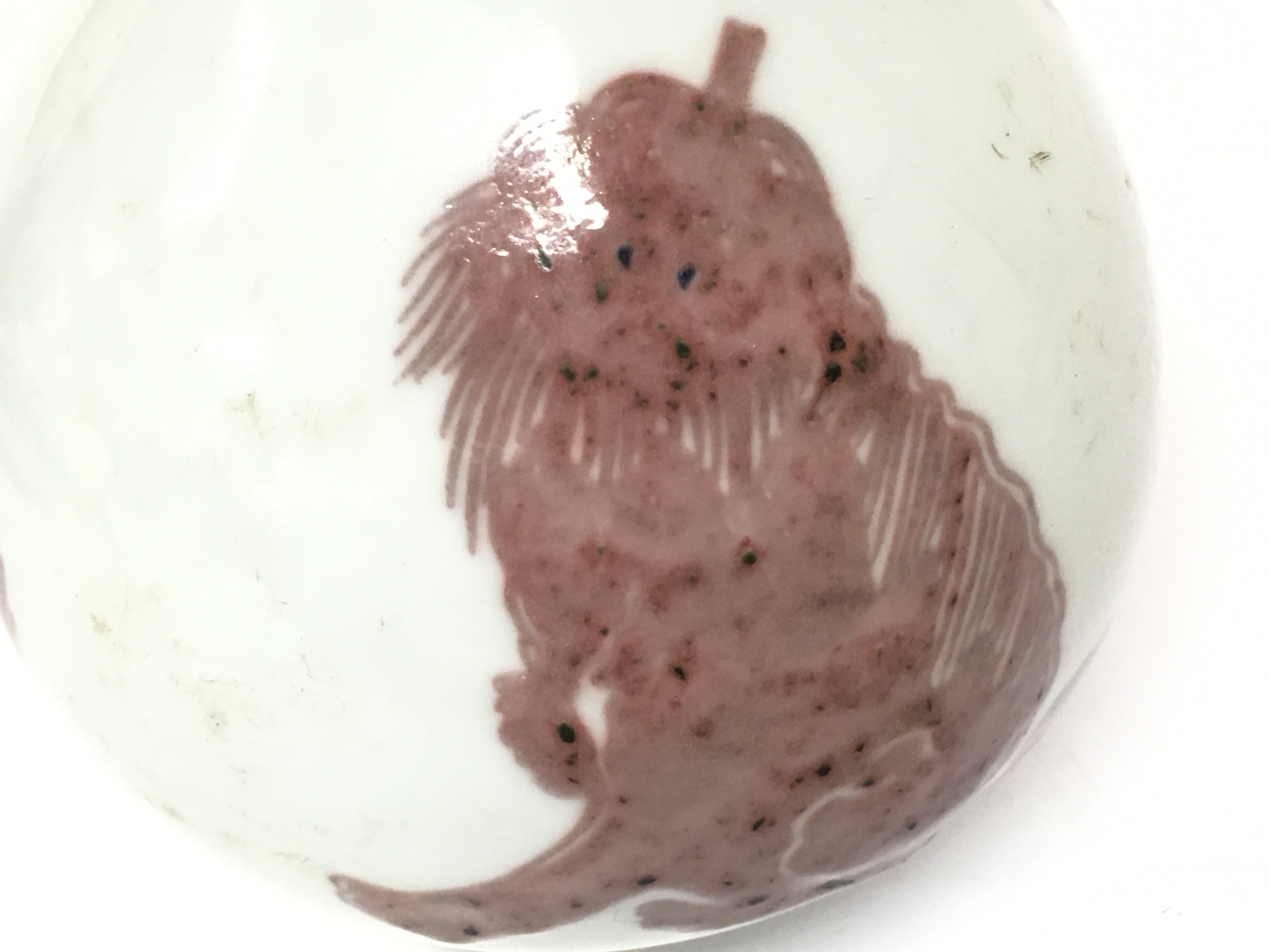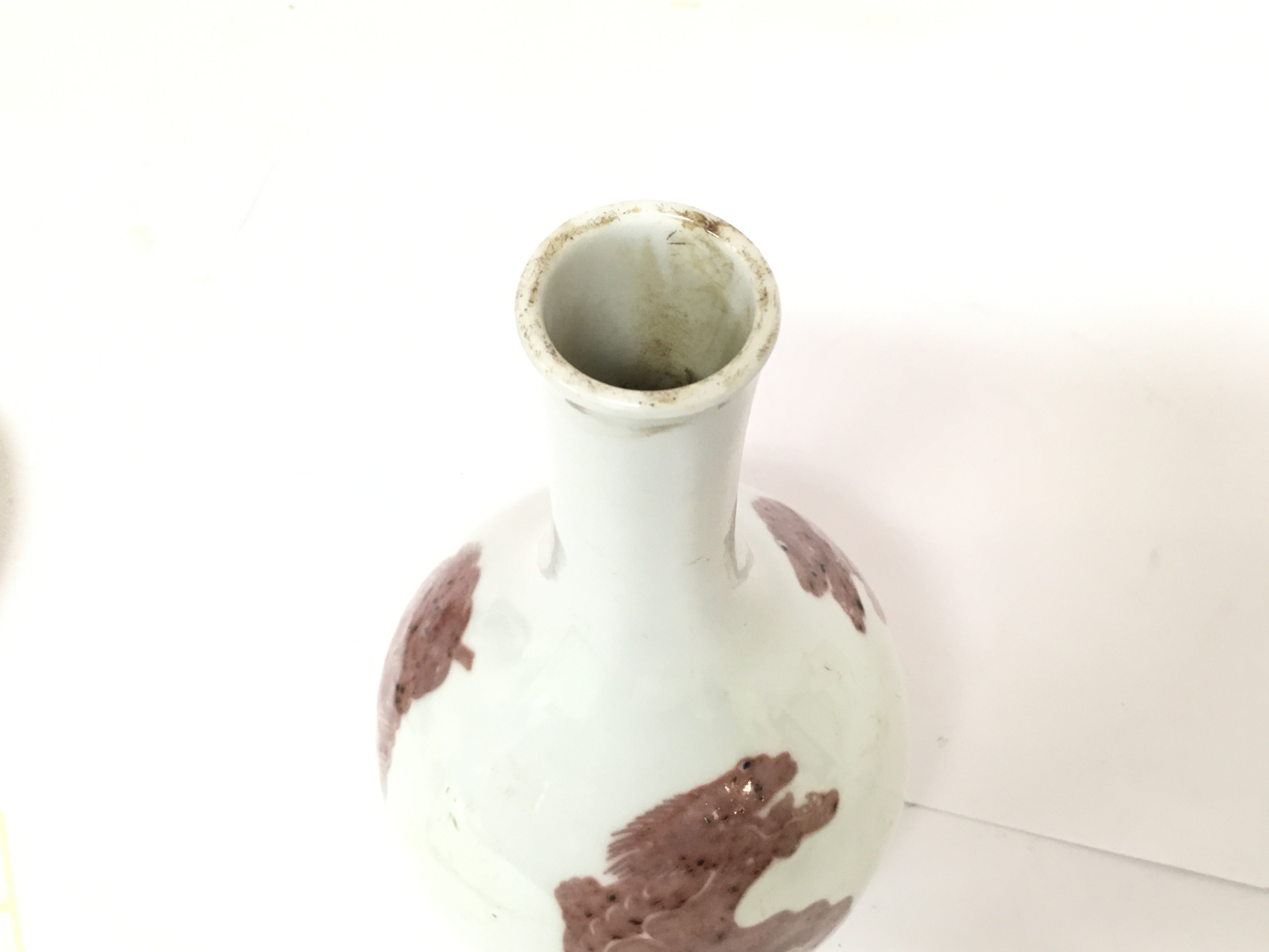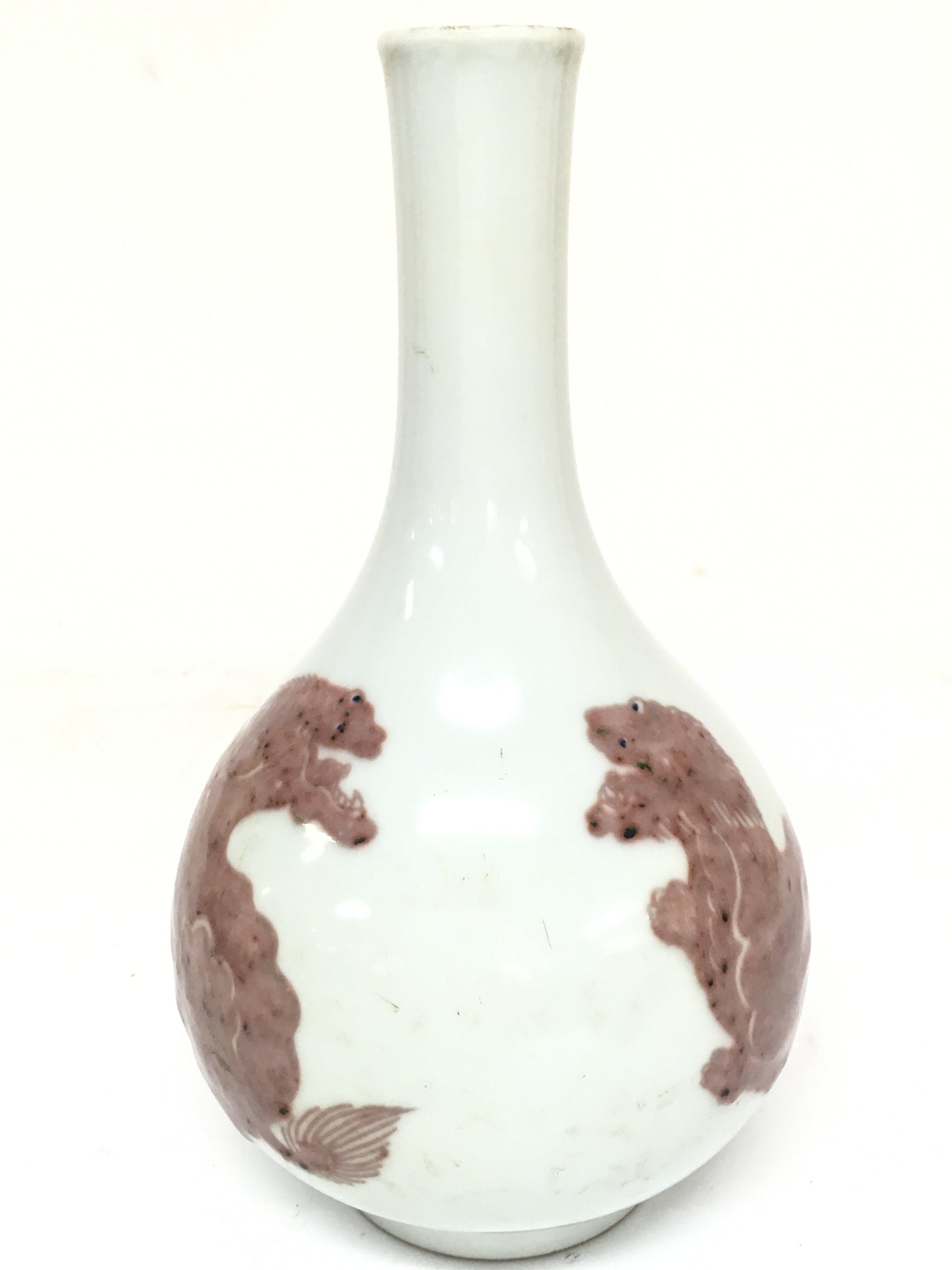 A Chinese Buddhist lions porcelain vase. 23.5cm tall approximately. No obvious large damage or restoration. This lot cannot be posted