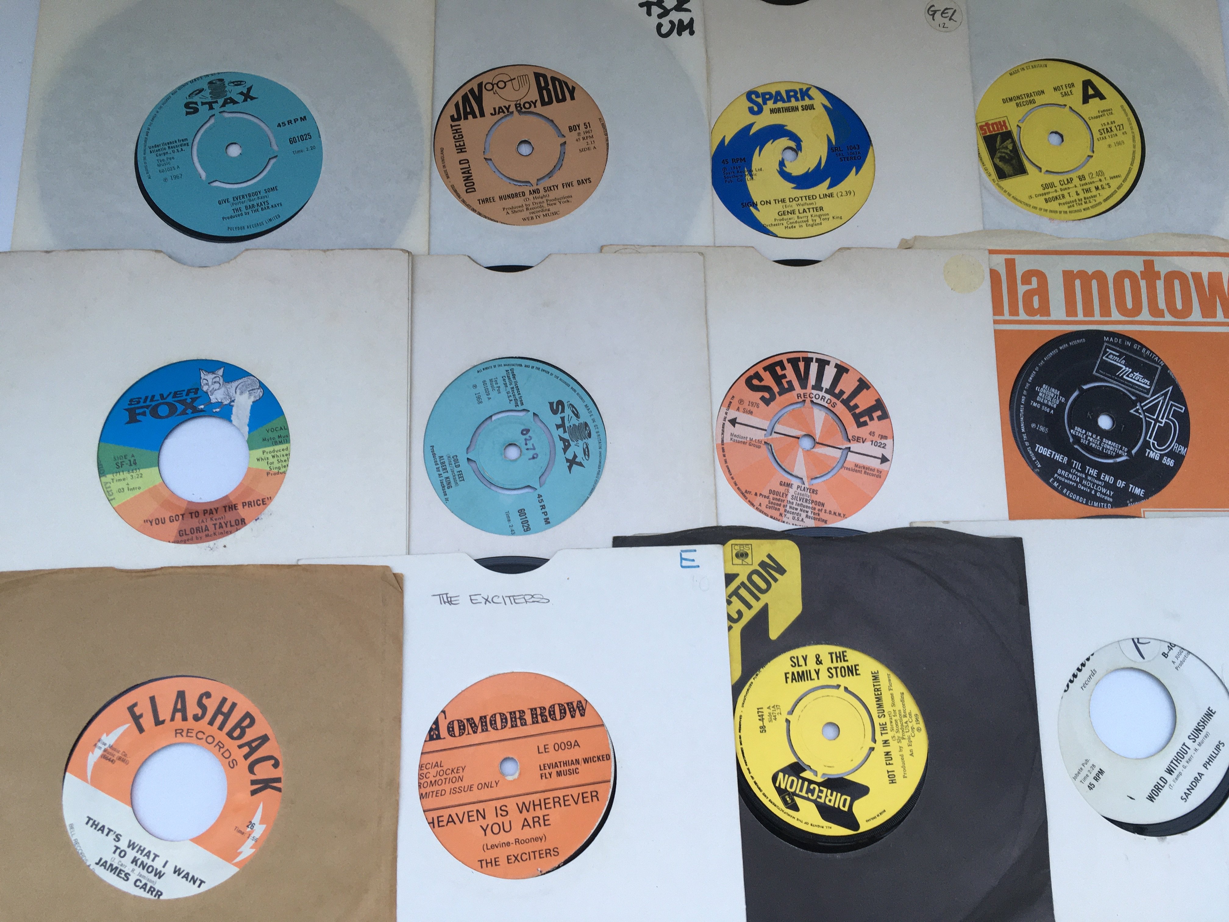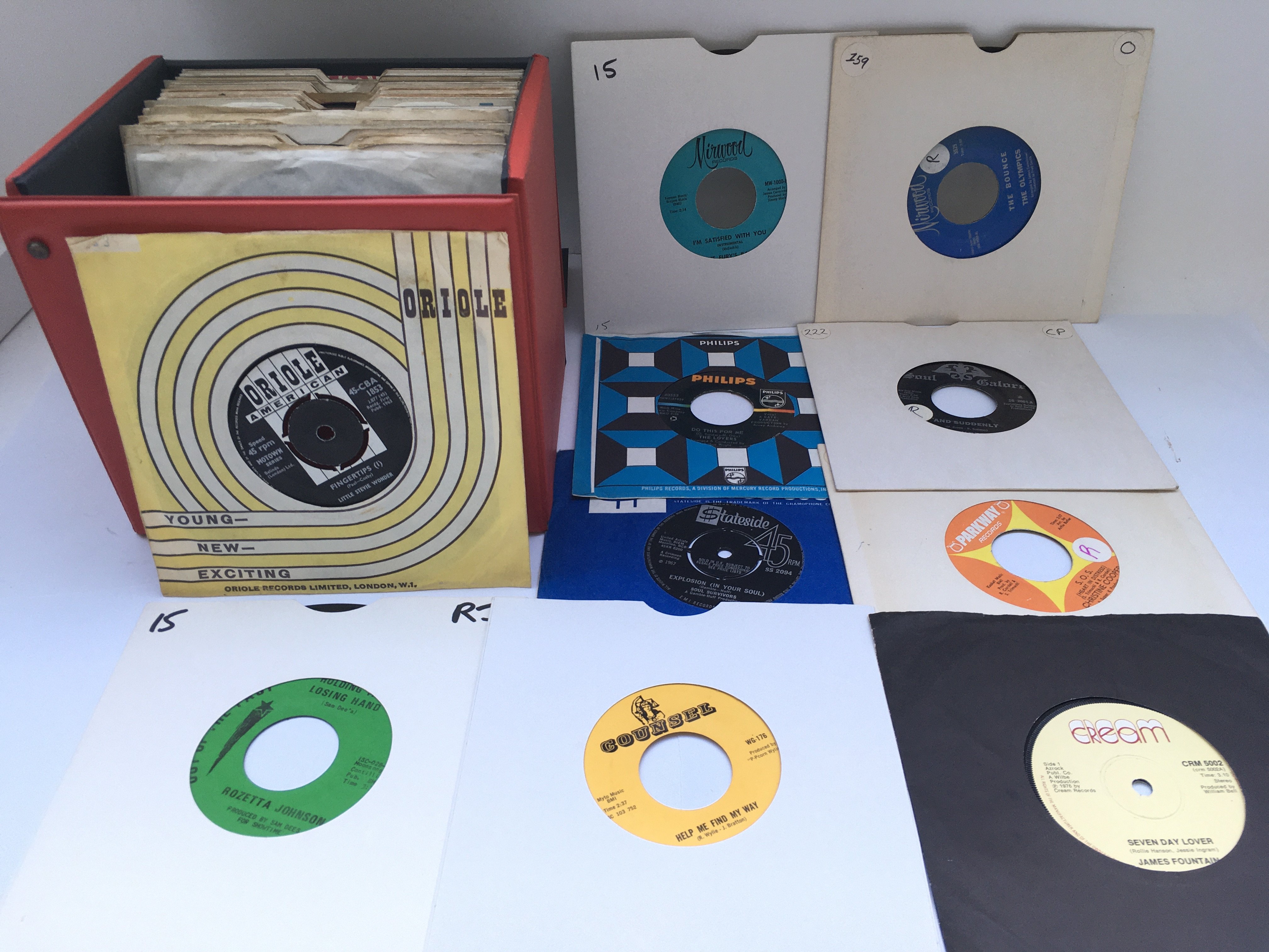 A record case of over 50 soul and Northern soul UK and US 7" singles by various artists including Little Stevie Wonder, Soul Survivors, Booker T & the MGs and others. Includes promotional discs.