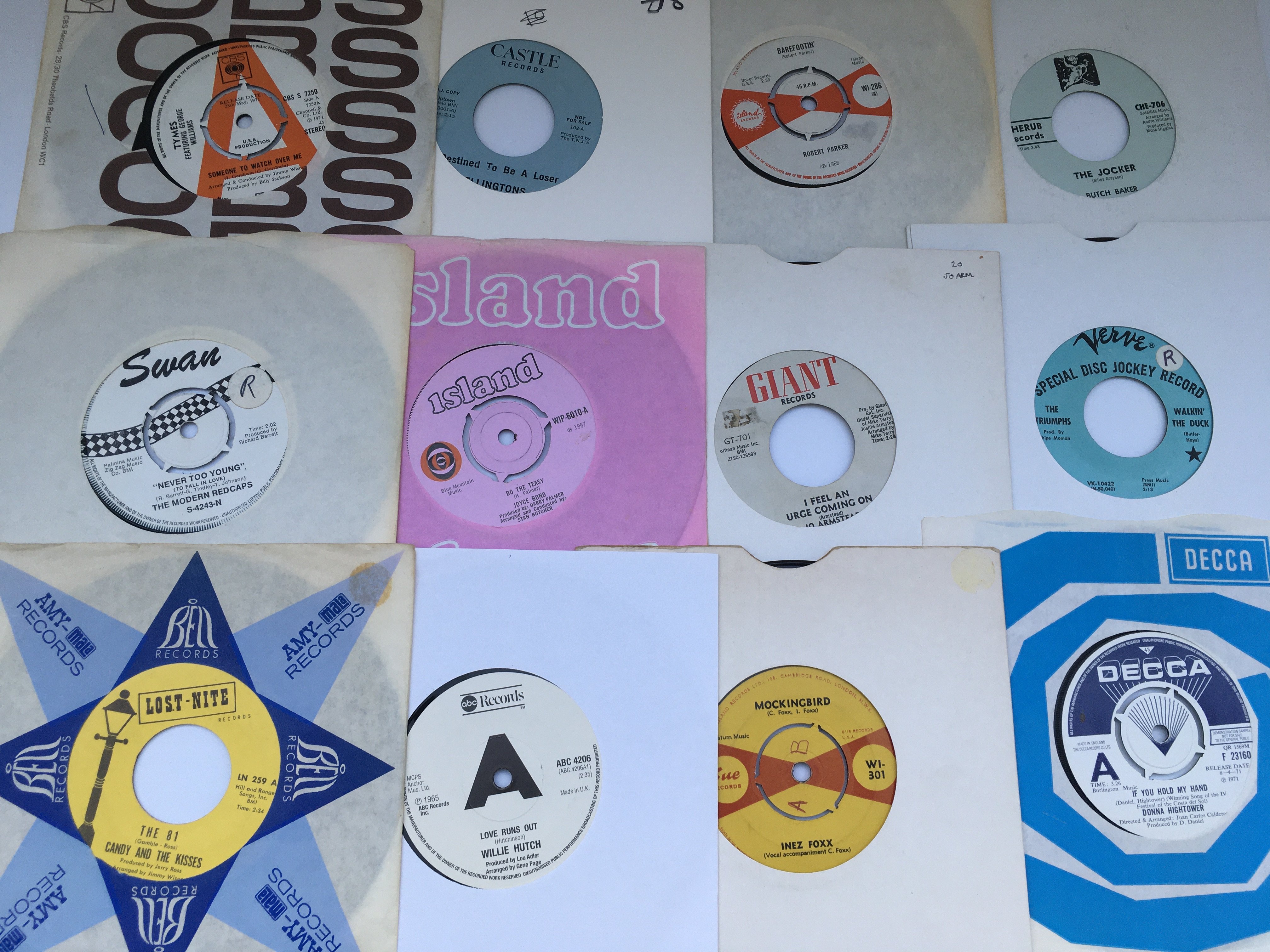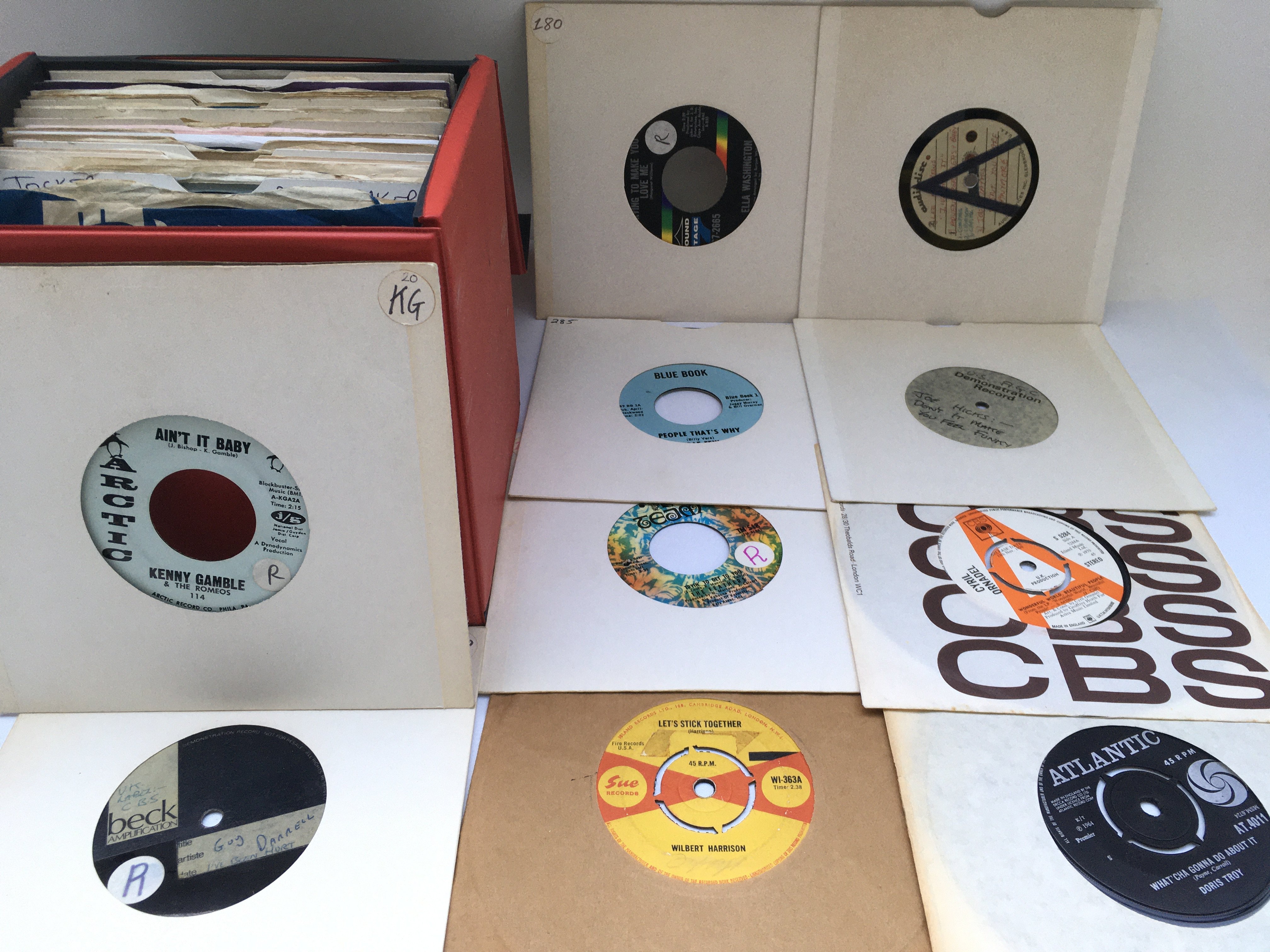 A record case of over 50 soul and Northern soul UK and US 7" singles by various artists including Rufus Thomas, Joyce Bond, The Mob and others. Includes acetates and promotional discs.