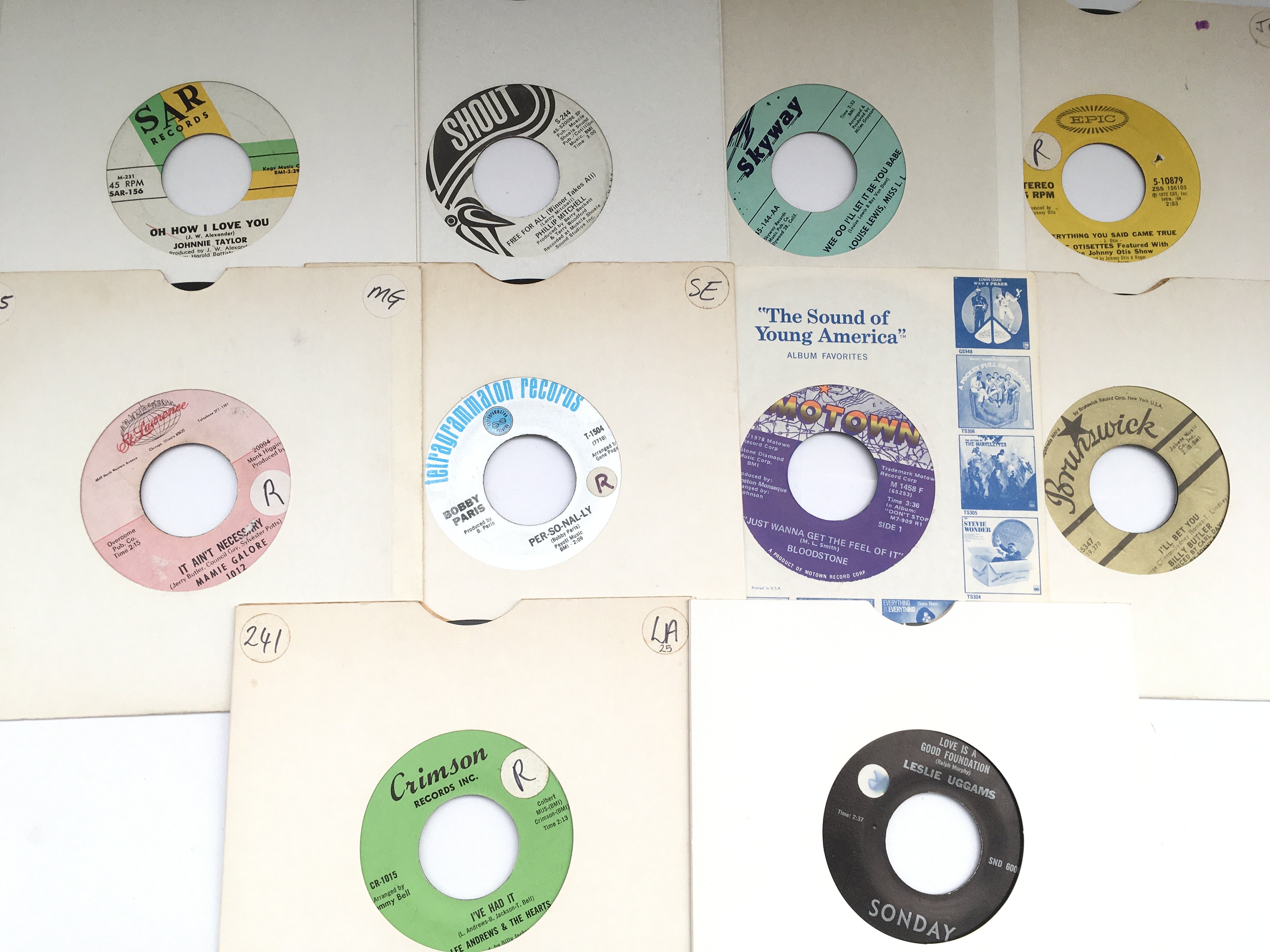 Ten rare US soul and Northern soul 7" singles by various artists including The Otisettes, Louise Lewis, Bobby Paris and others.