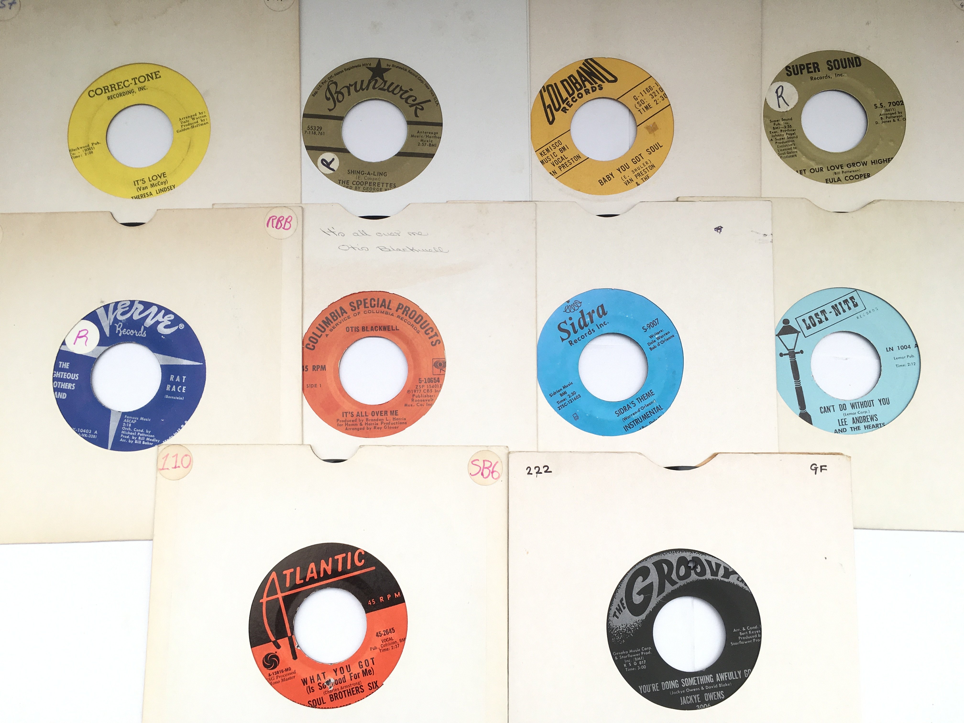 Ten rare US soul and Northern soul 7" singles by various artists including Eula Cooper, Van Preston, The Cooperettes and others.