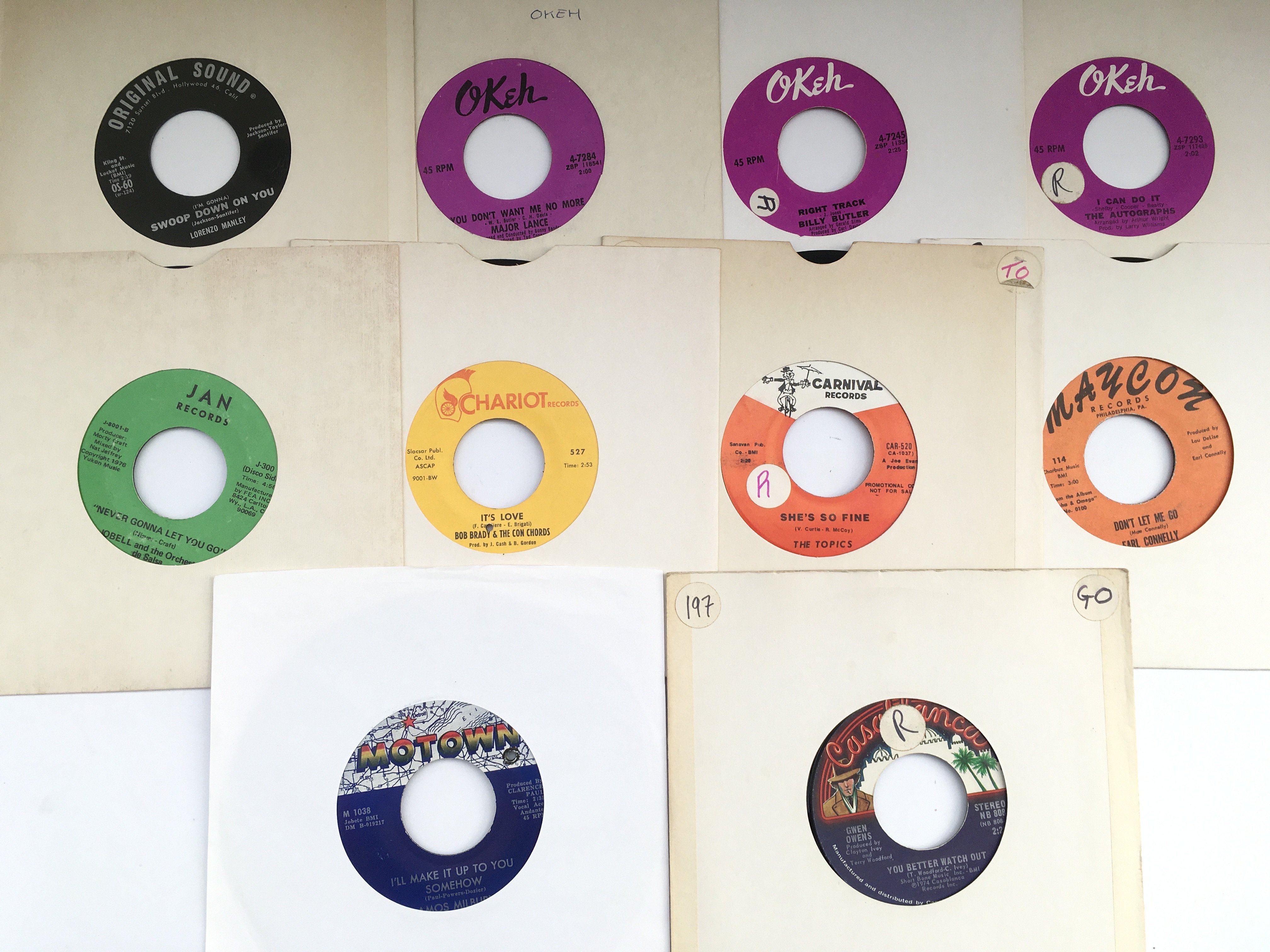 Ten rare soul and Northern soul 7" singles by various artists including Billy Butler, The Autographs, The Topics and others.