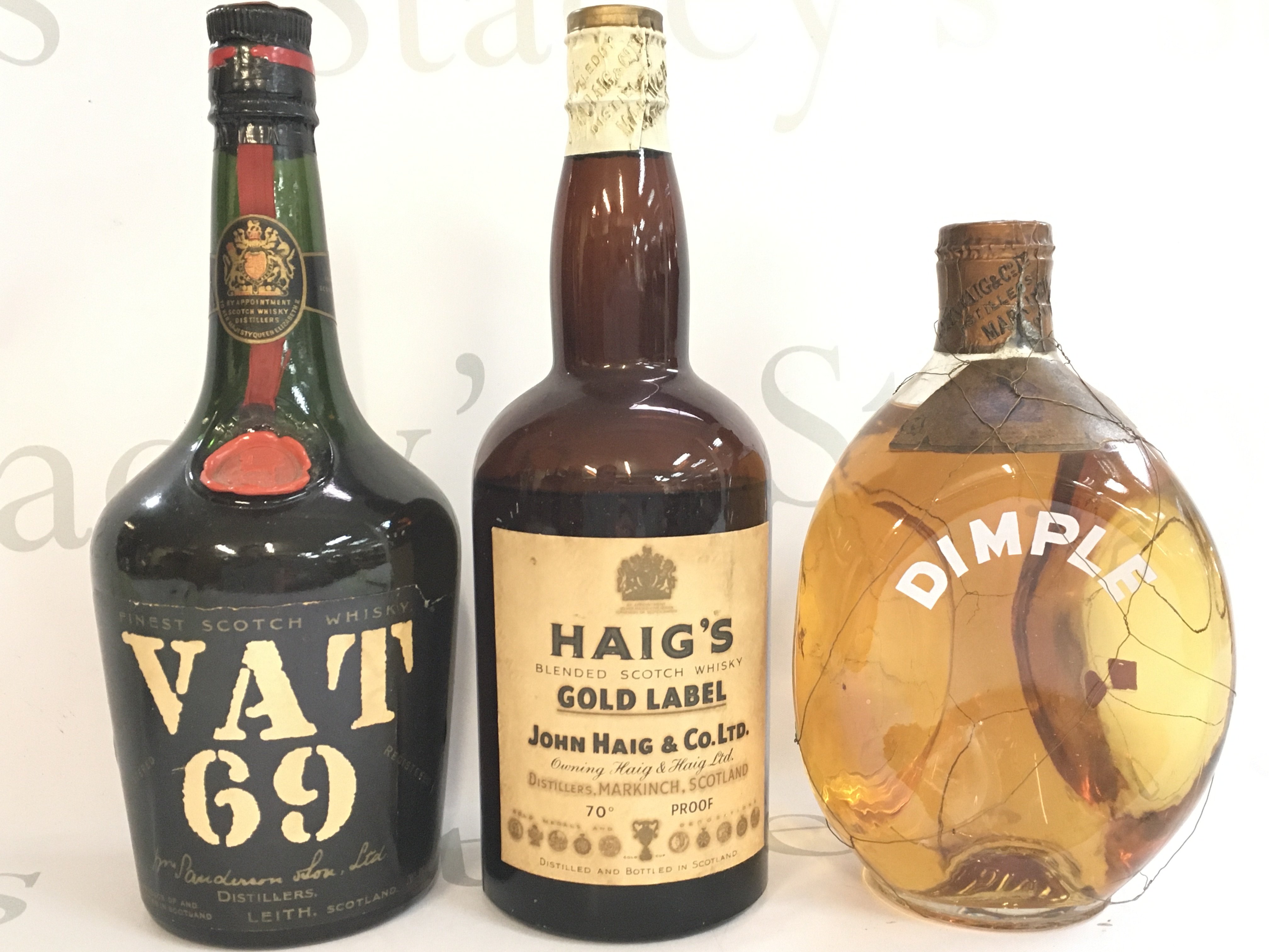 Whiskeys including Vat 69, Haigs blended scotch whiskey, Dimple. Variating levels. This lost cannot be posted