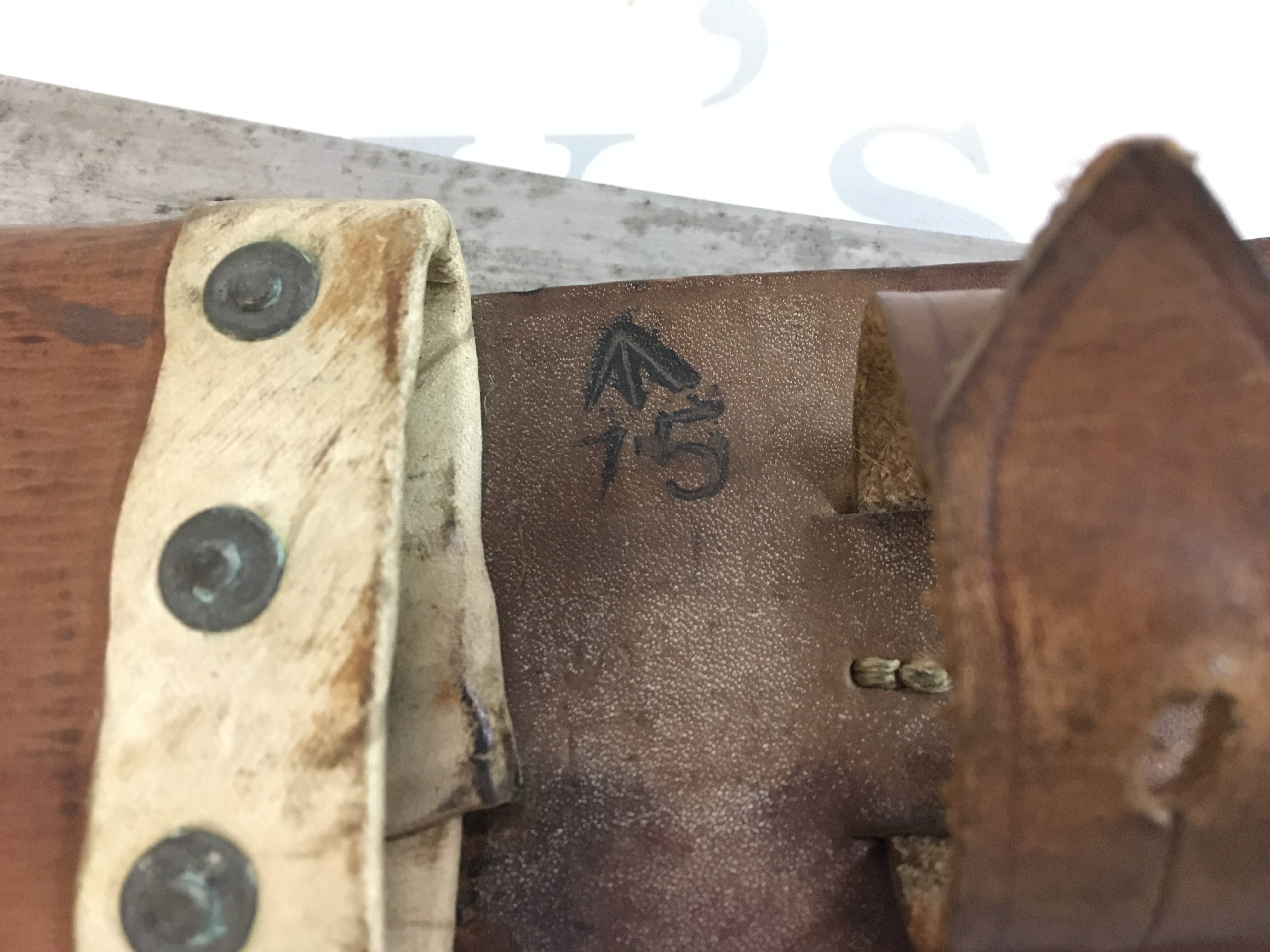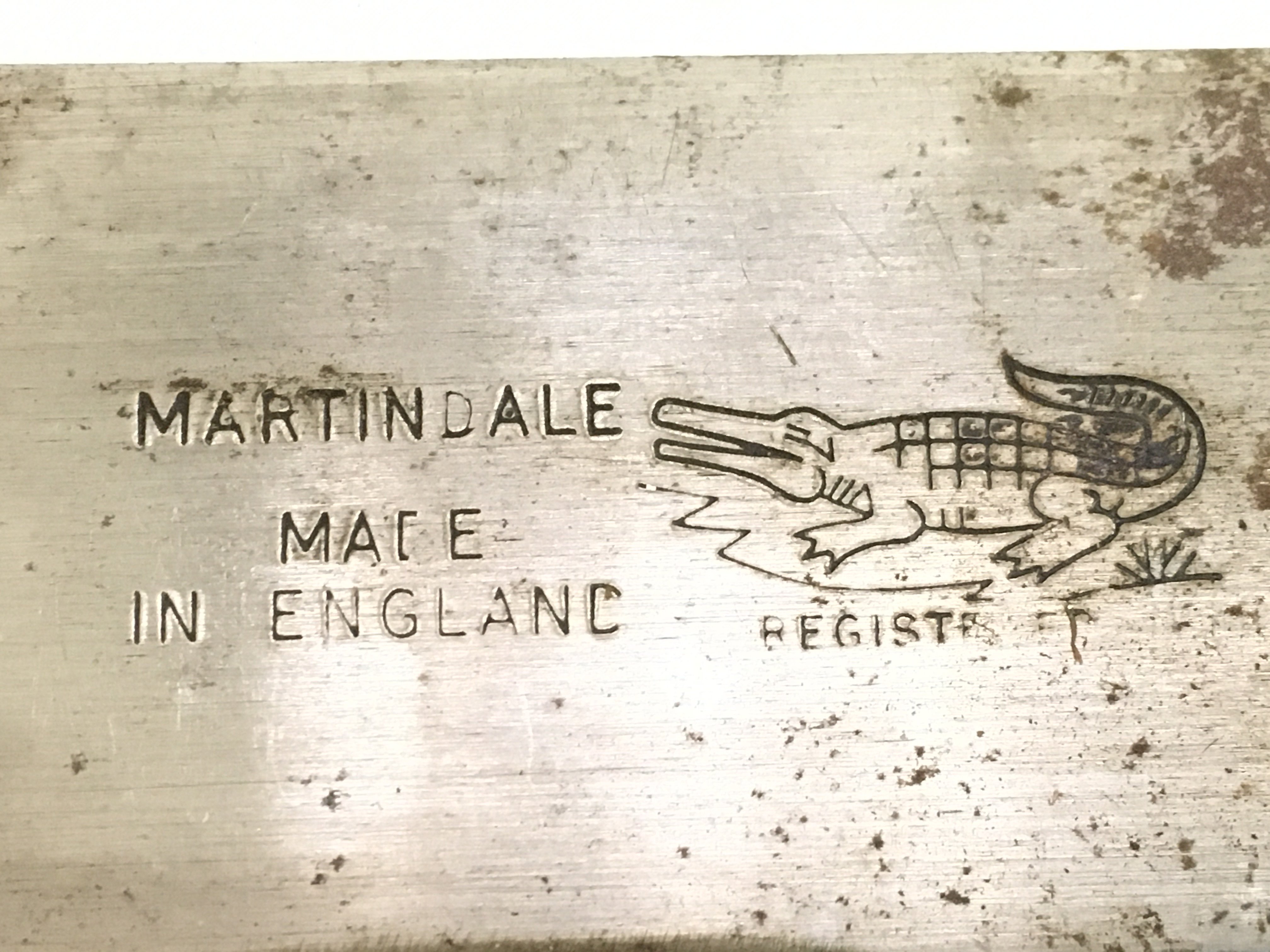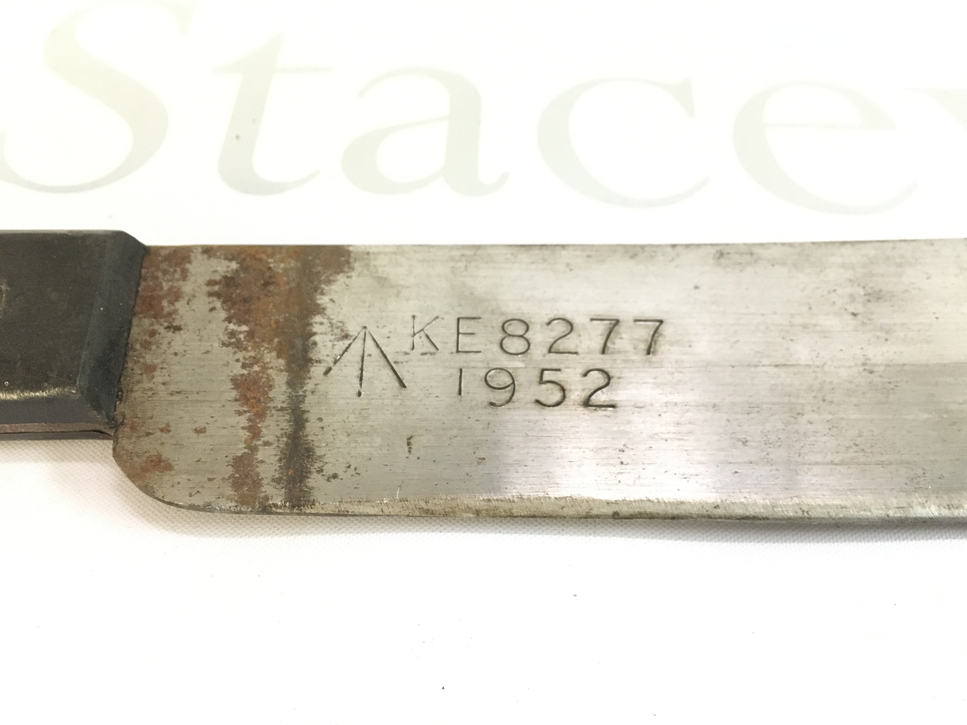 A British Army Martindale Crocodile machete with leather sheath, 52cm long. This lot cannot be posted