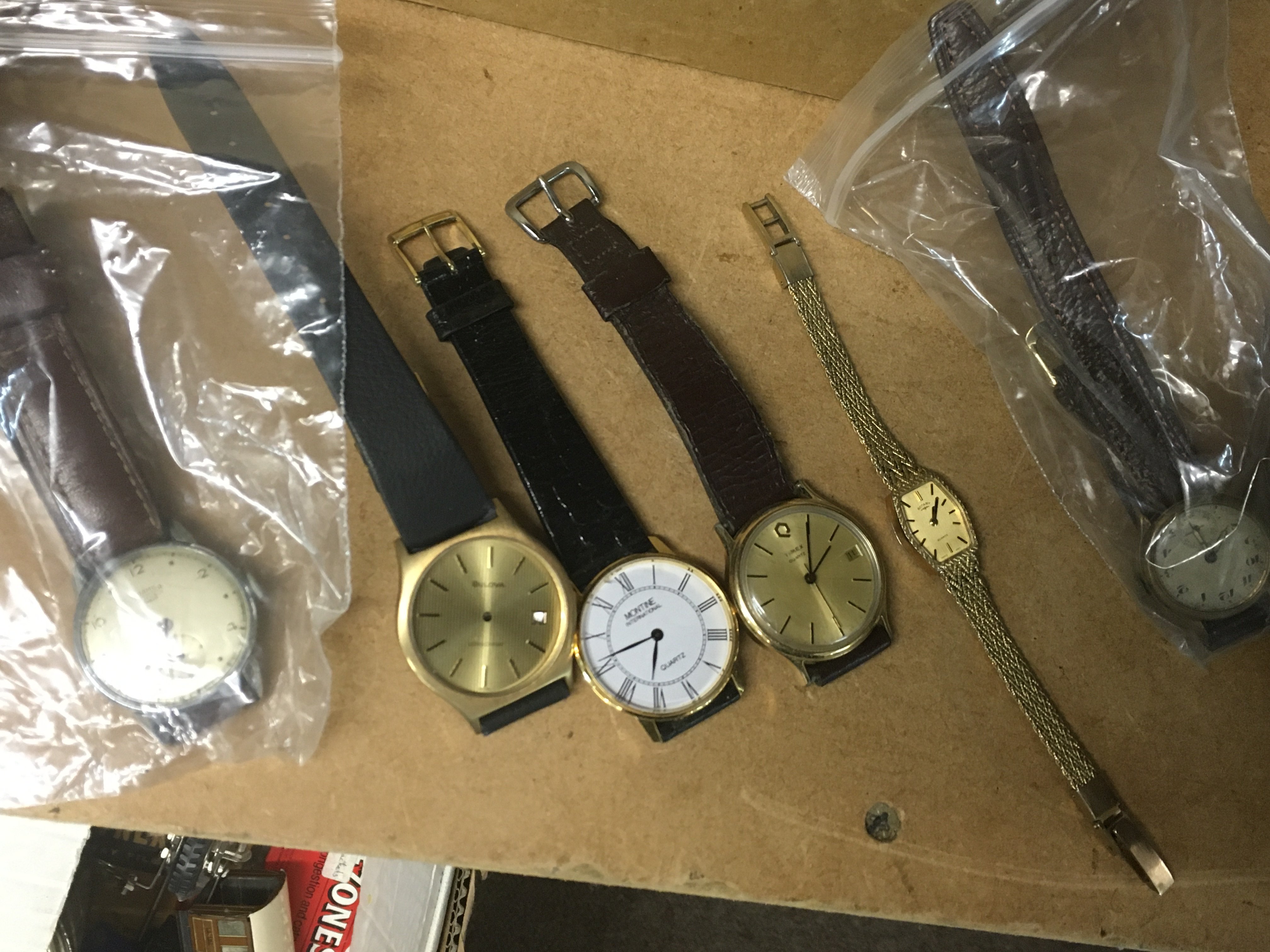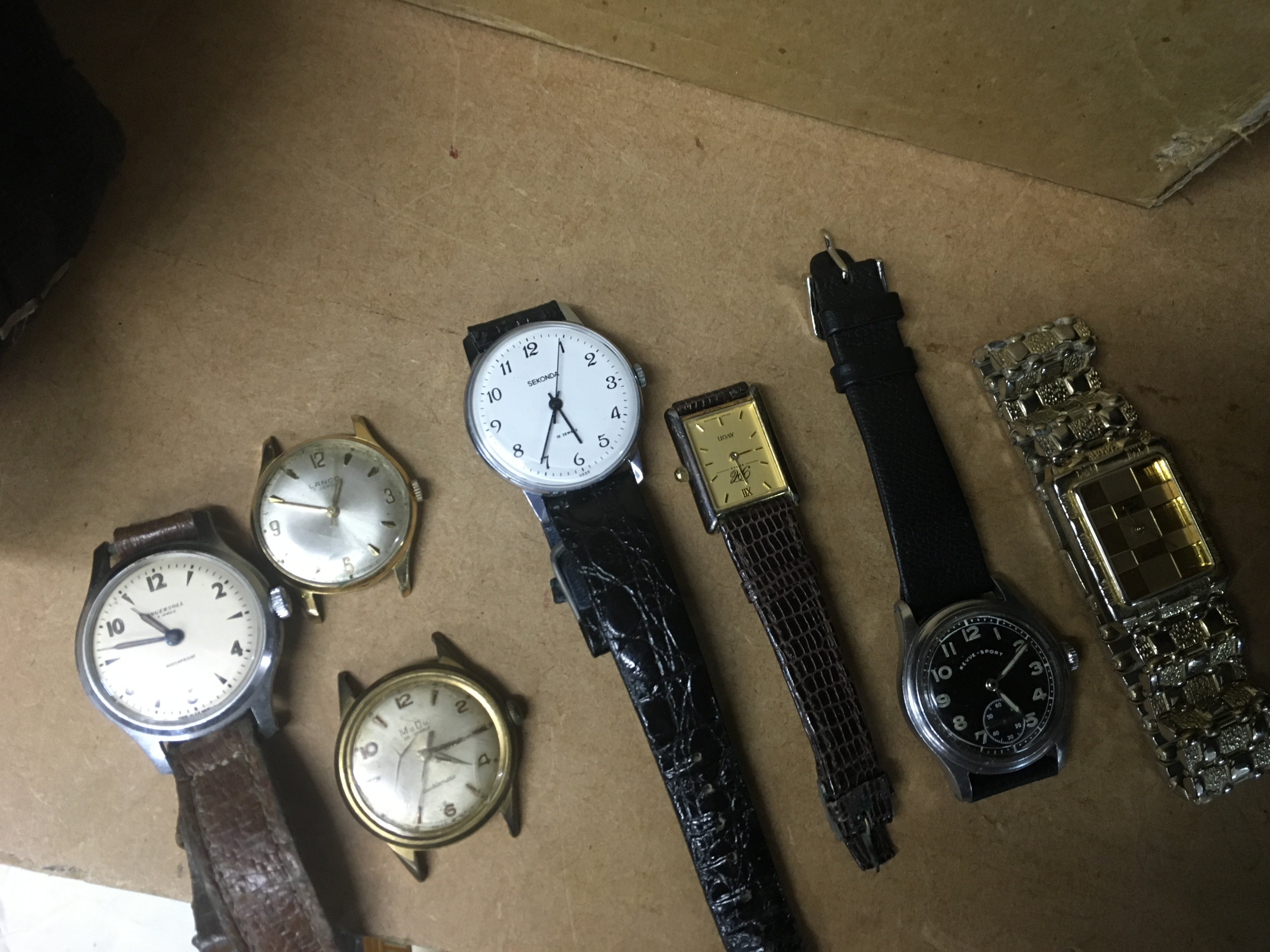 A collection of various vintage watches including Roamer, Bulova, Montine, Timex etc and various watch/pocket watch and clock parts