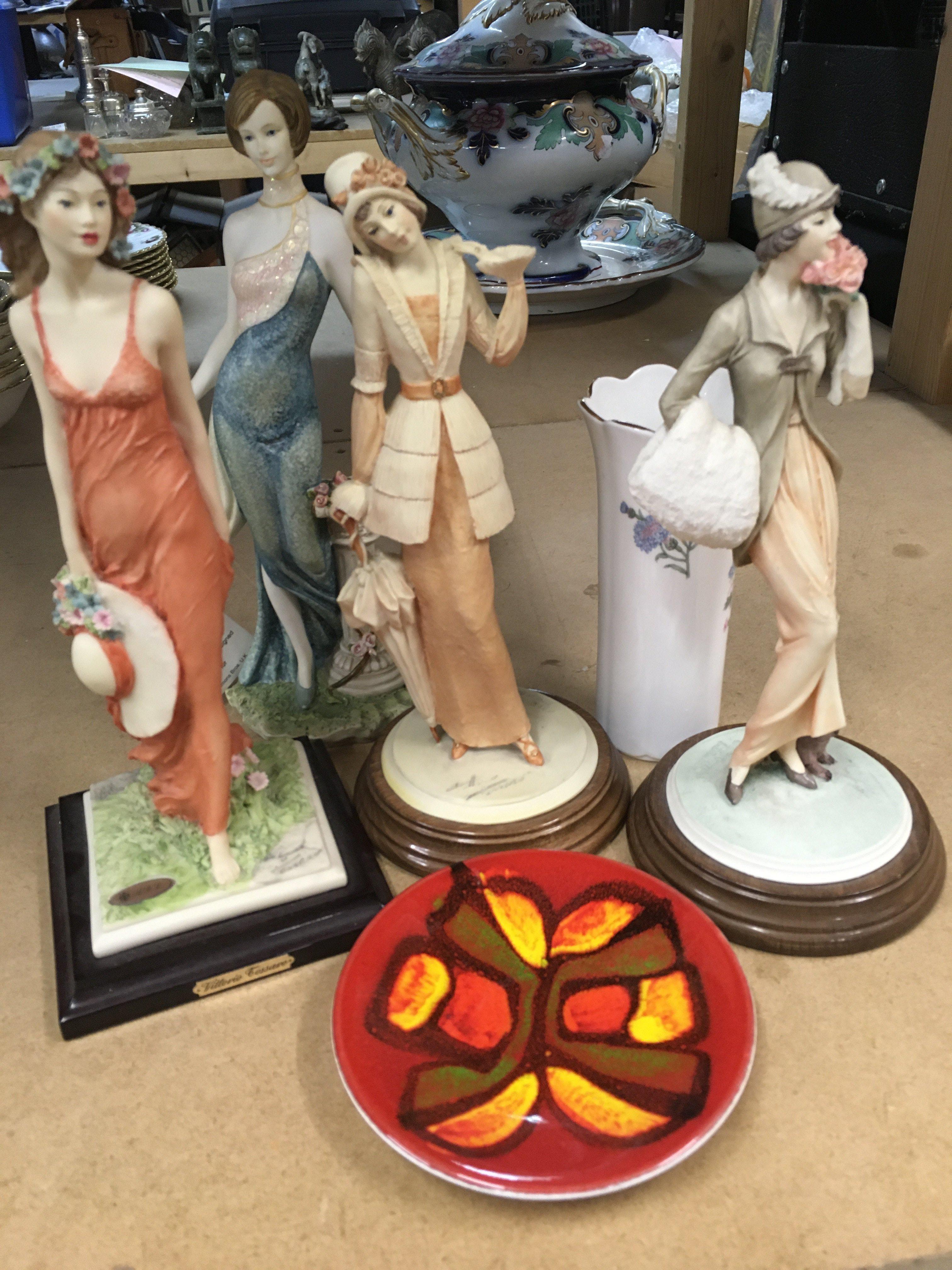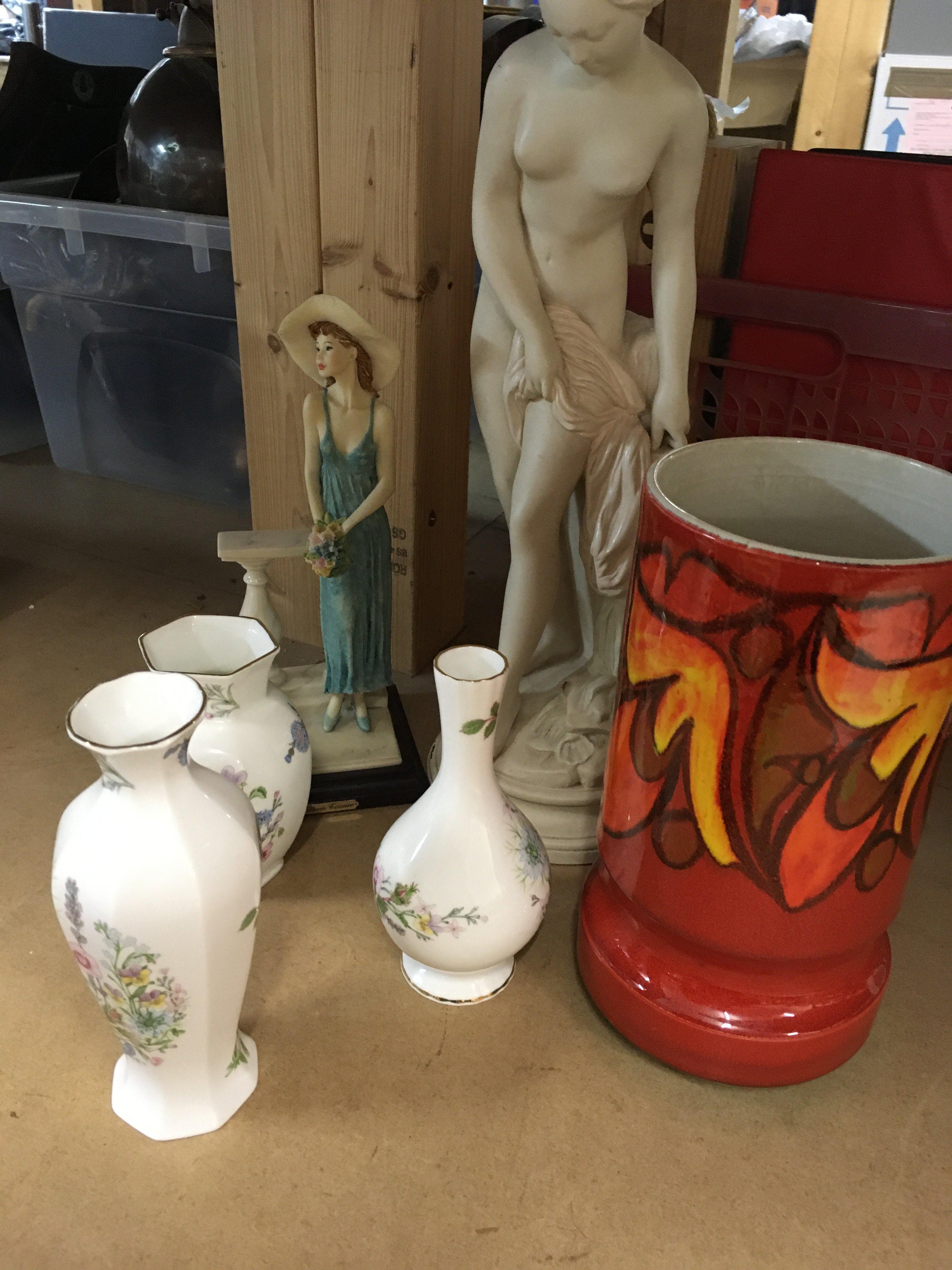A collection of ceramics including Poole and Aynsley together with art Deco style figures.
