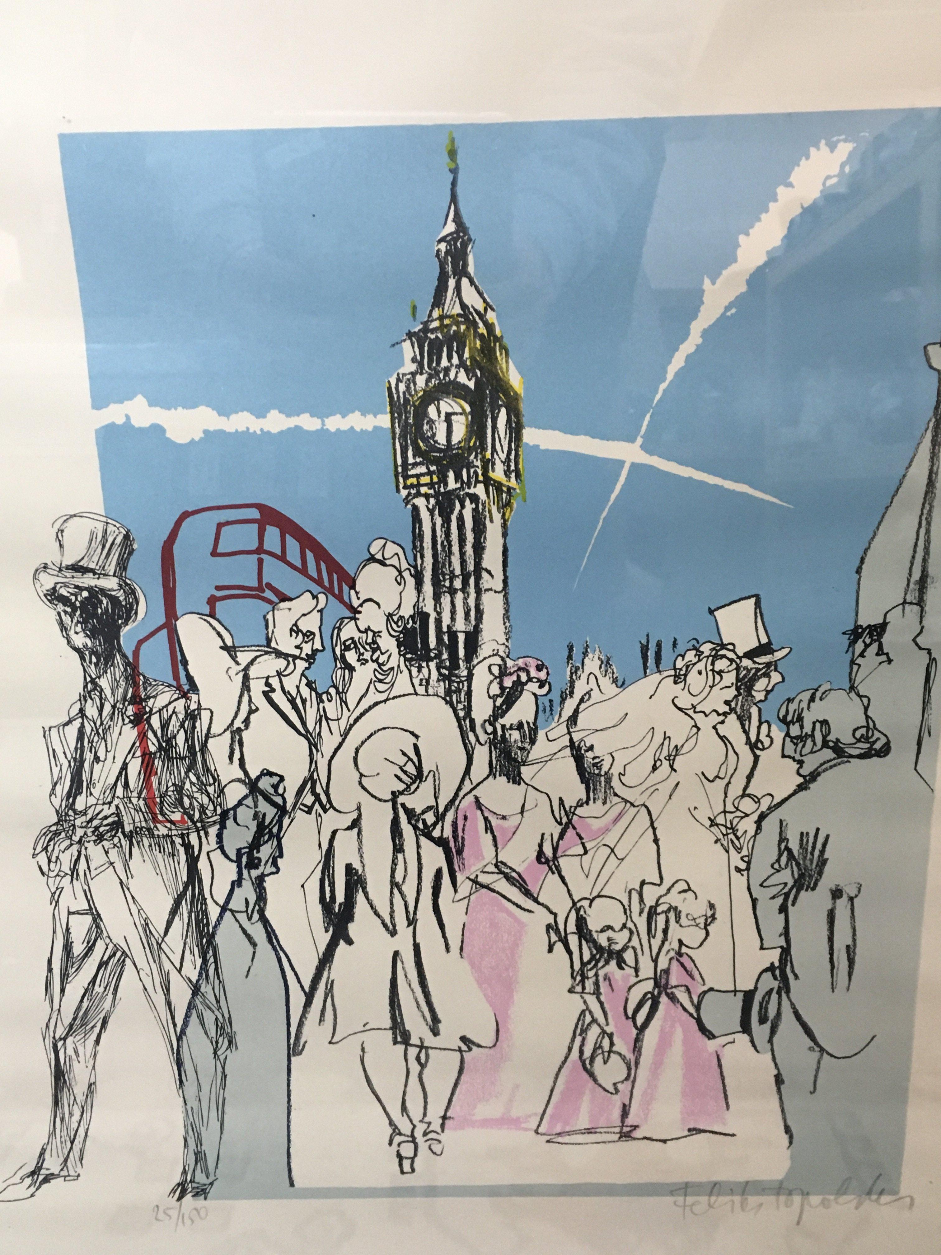 Six framed limited edition prints by Feliks Topolski (1907-1989). Frame dimensions 49x64cm. This lot cannot be posted.