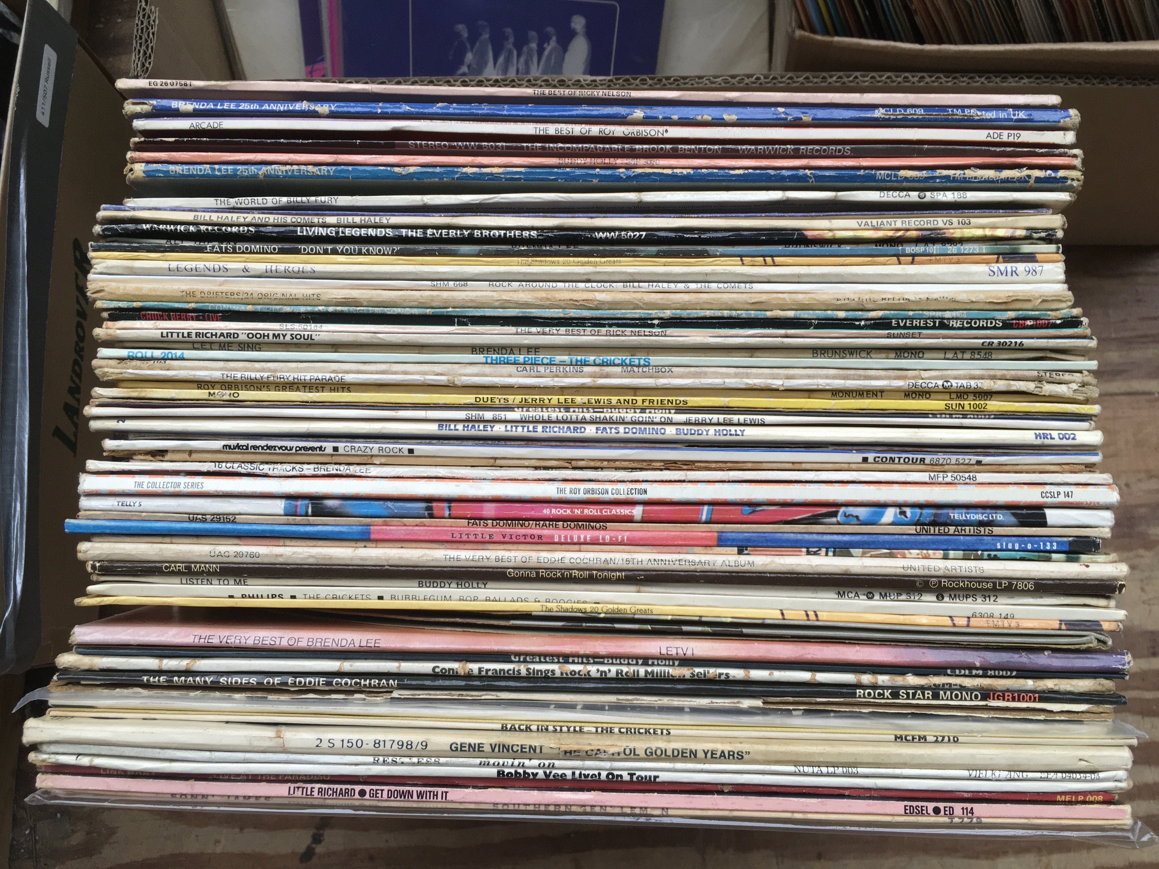 A box of mainly rock n roll and rockabilly LPs by various artists including Little Richard, Link Wray and others.
