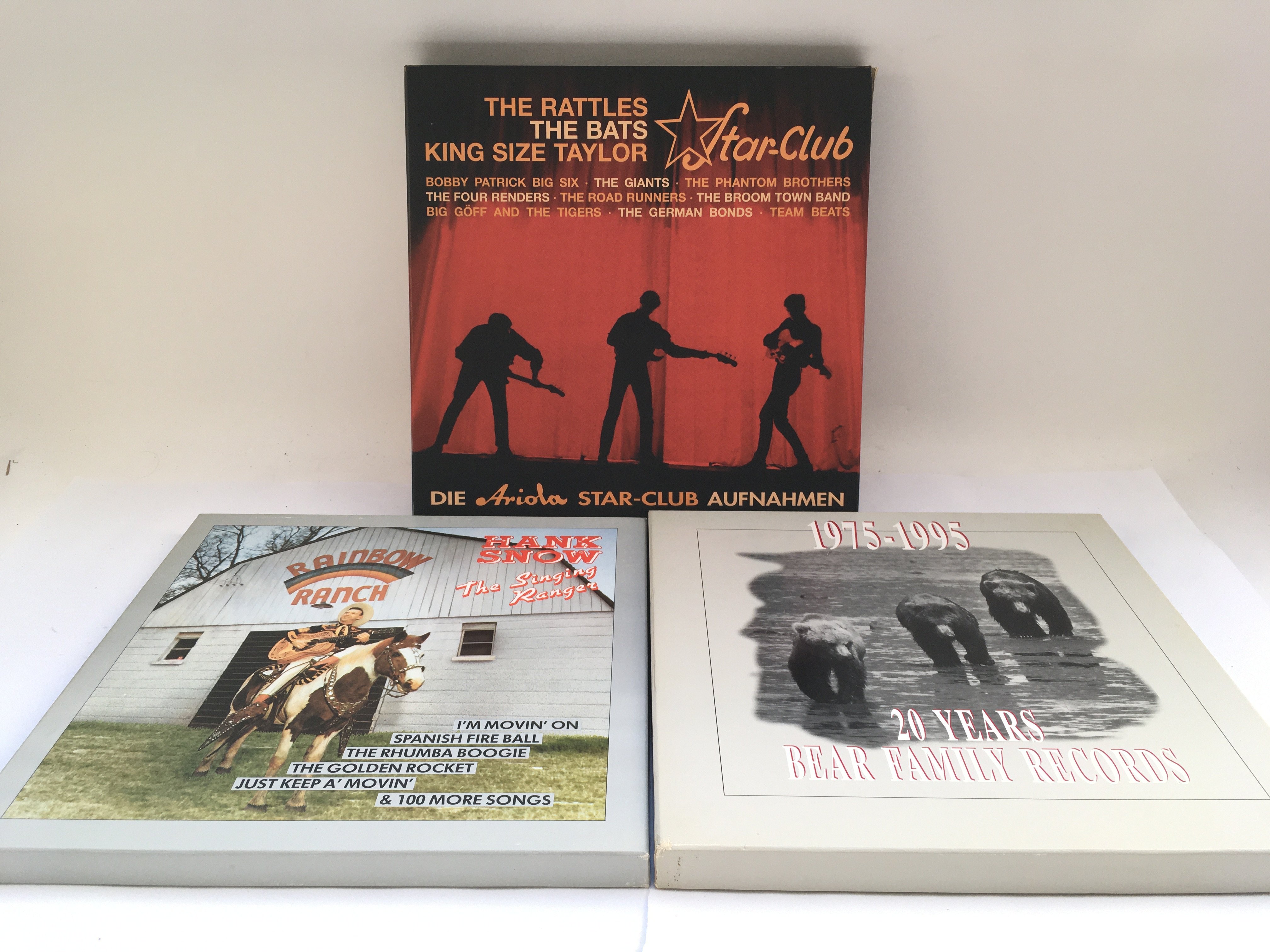 Three multi CD box sets comprising a Star Club, Hamburg retrospective, Hank Snow 'The Singing Ranger' and '20 Years Bear Family Records'.