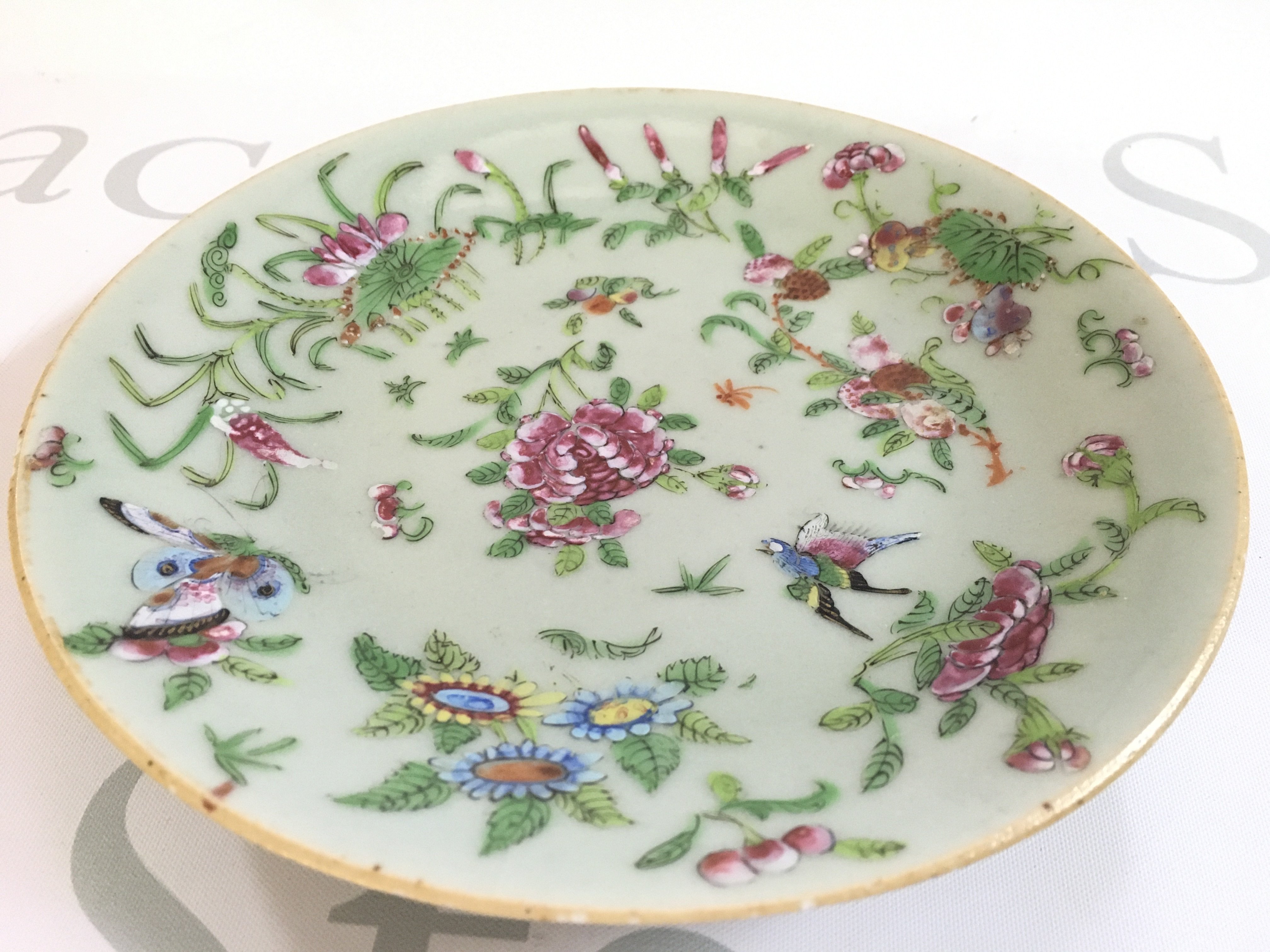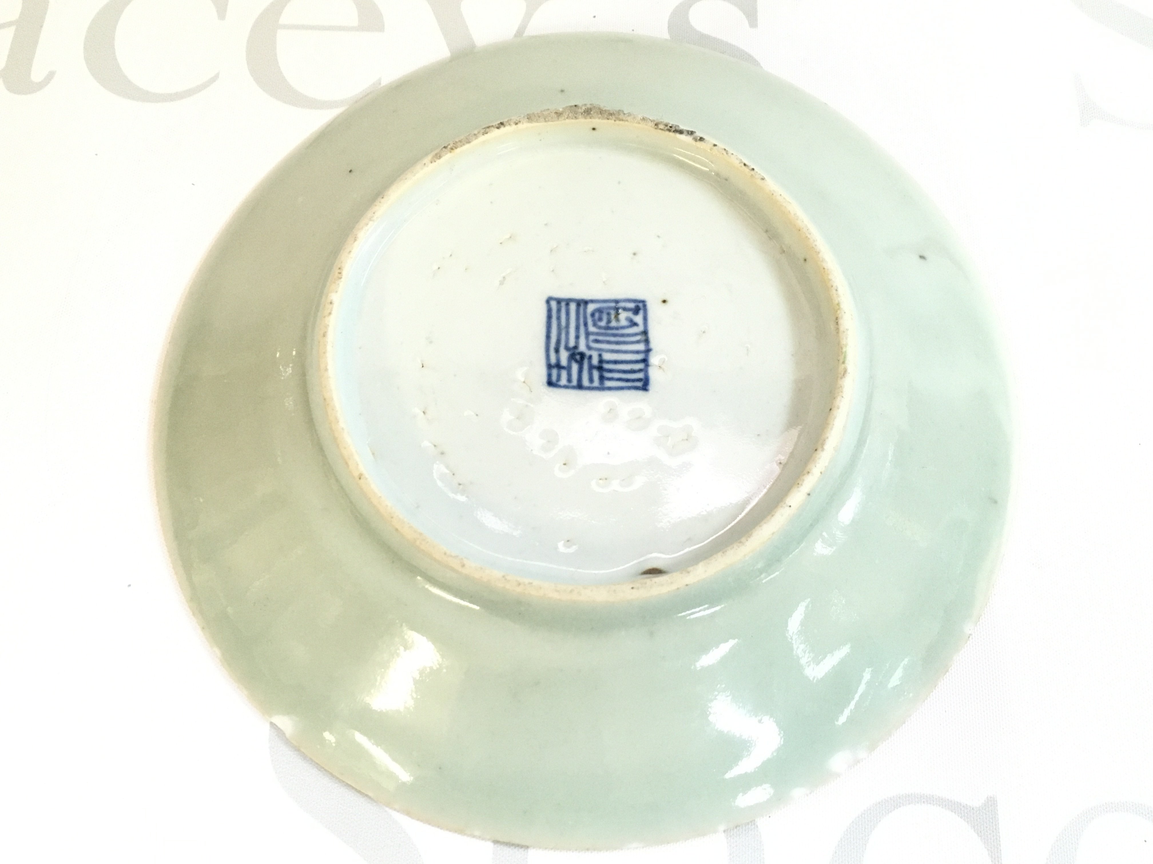 A Chinese Cantonese celadon dish , 19cm wide. Some small chips. This lot cannot be posted