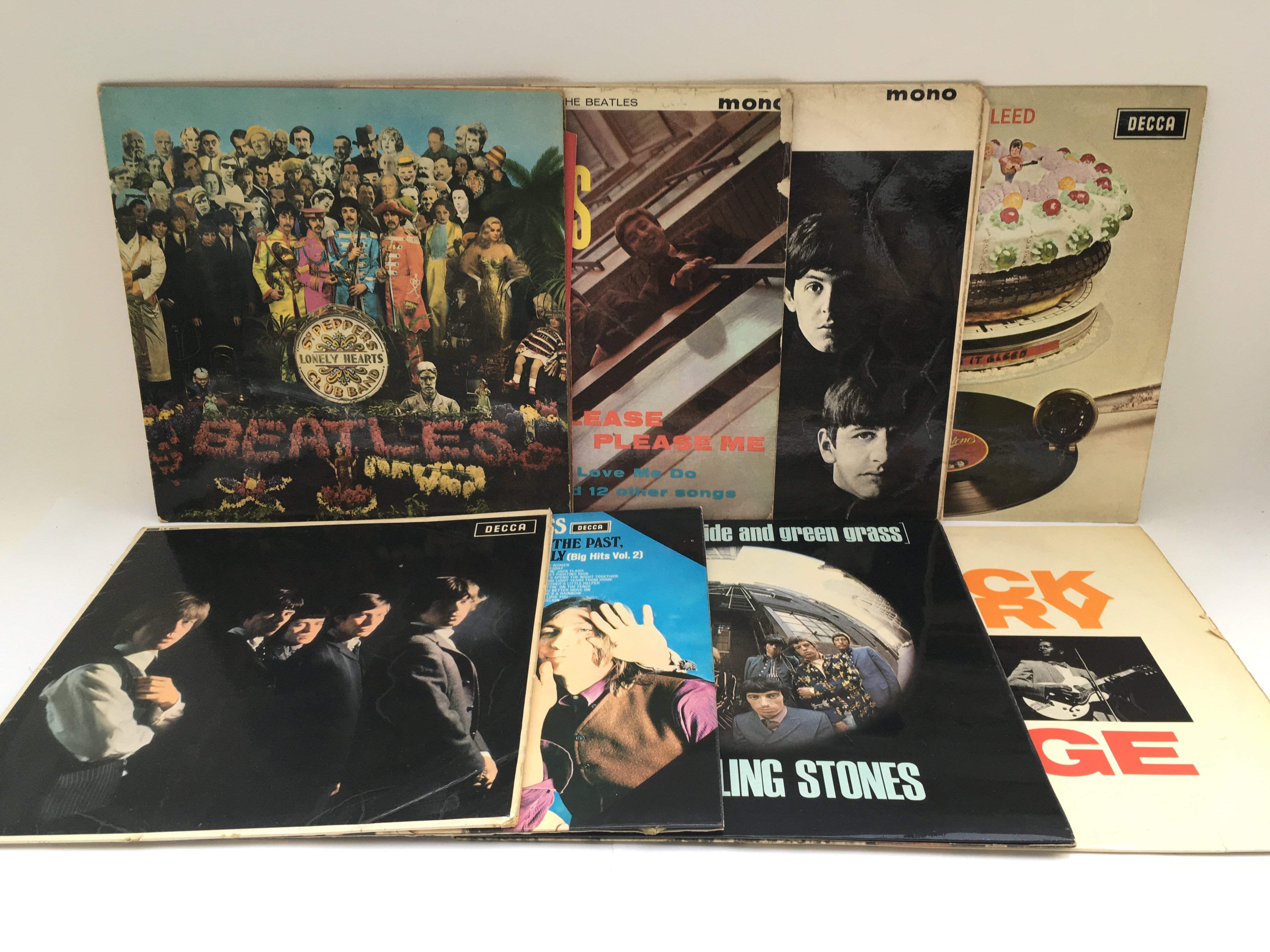 Sixteen LPs by The Beatles, The Rolling Stones and various rock n roll artists. Some condition issues.