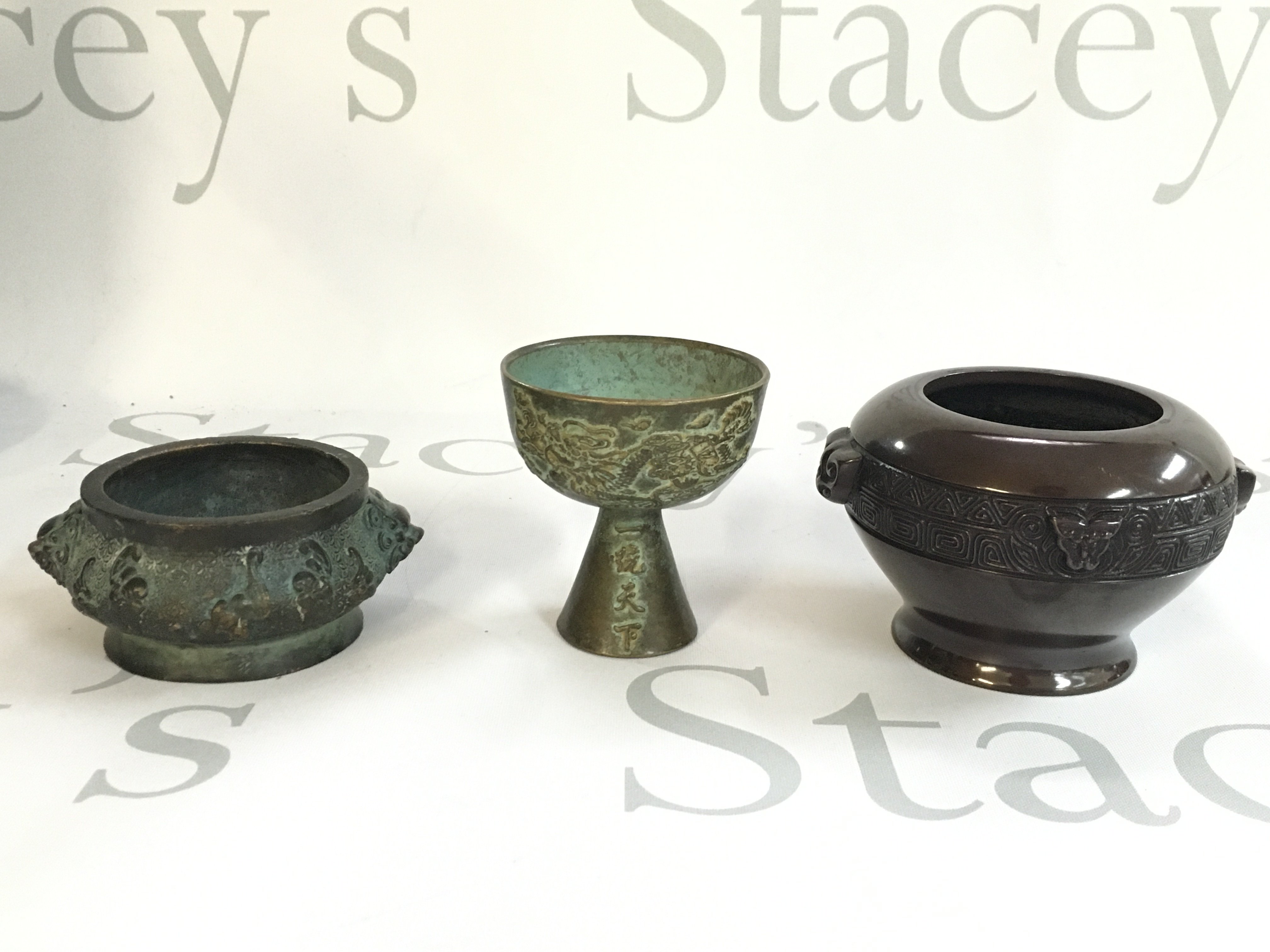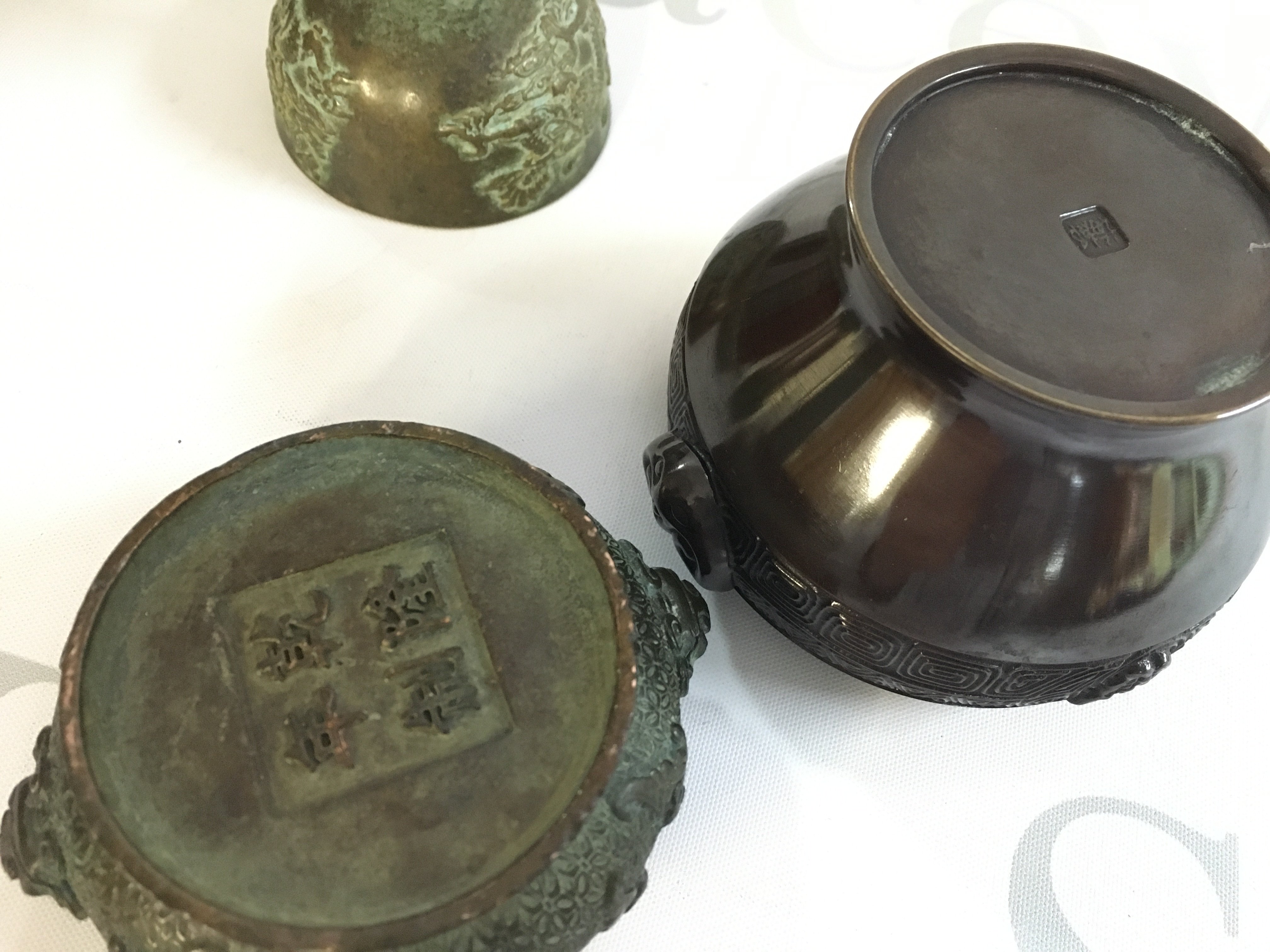 Three Chinese bronze censors ,4 to 6.5cm tall. Postage category B