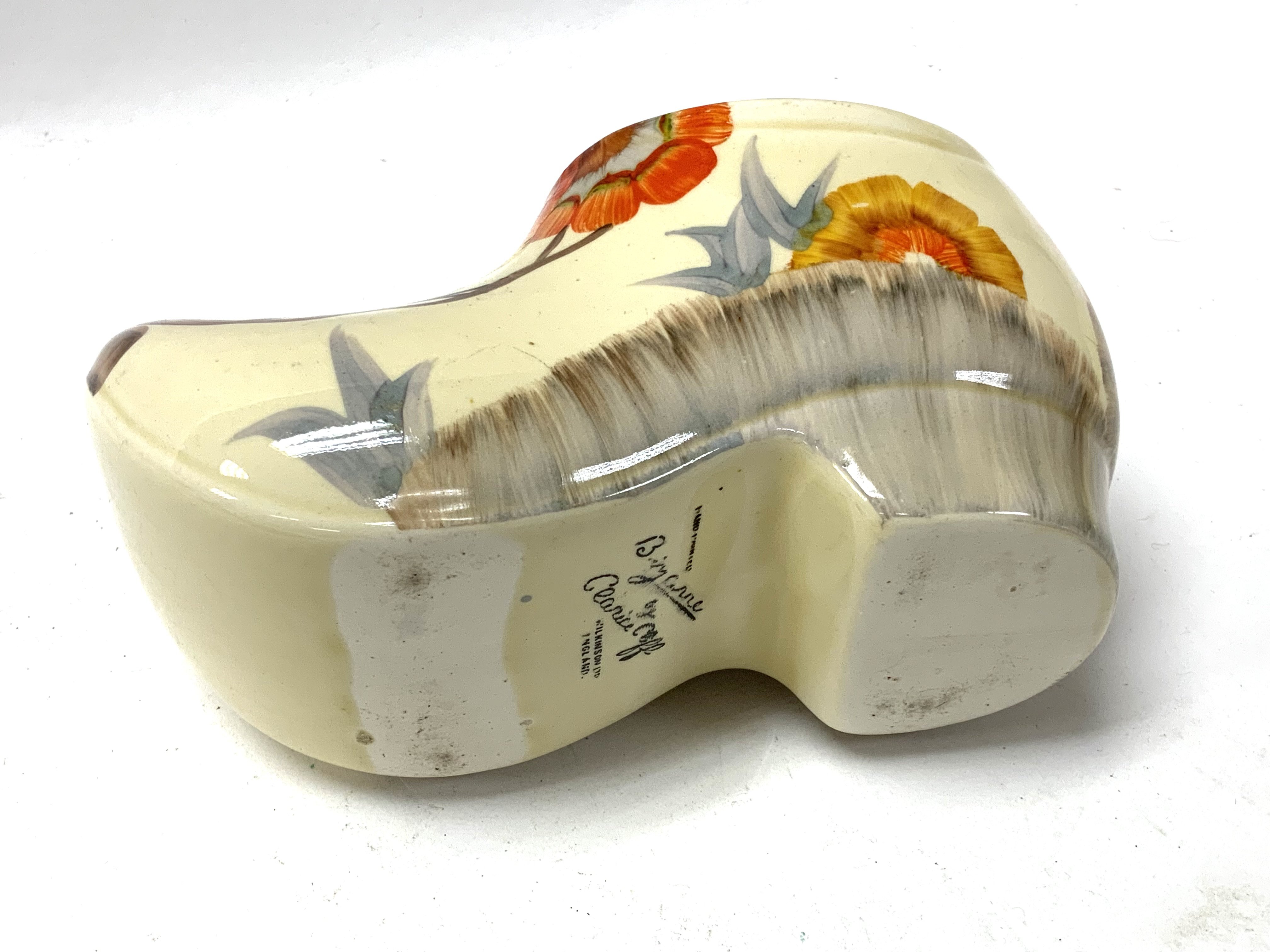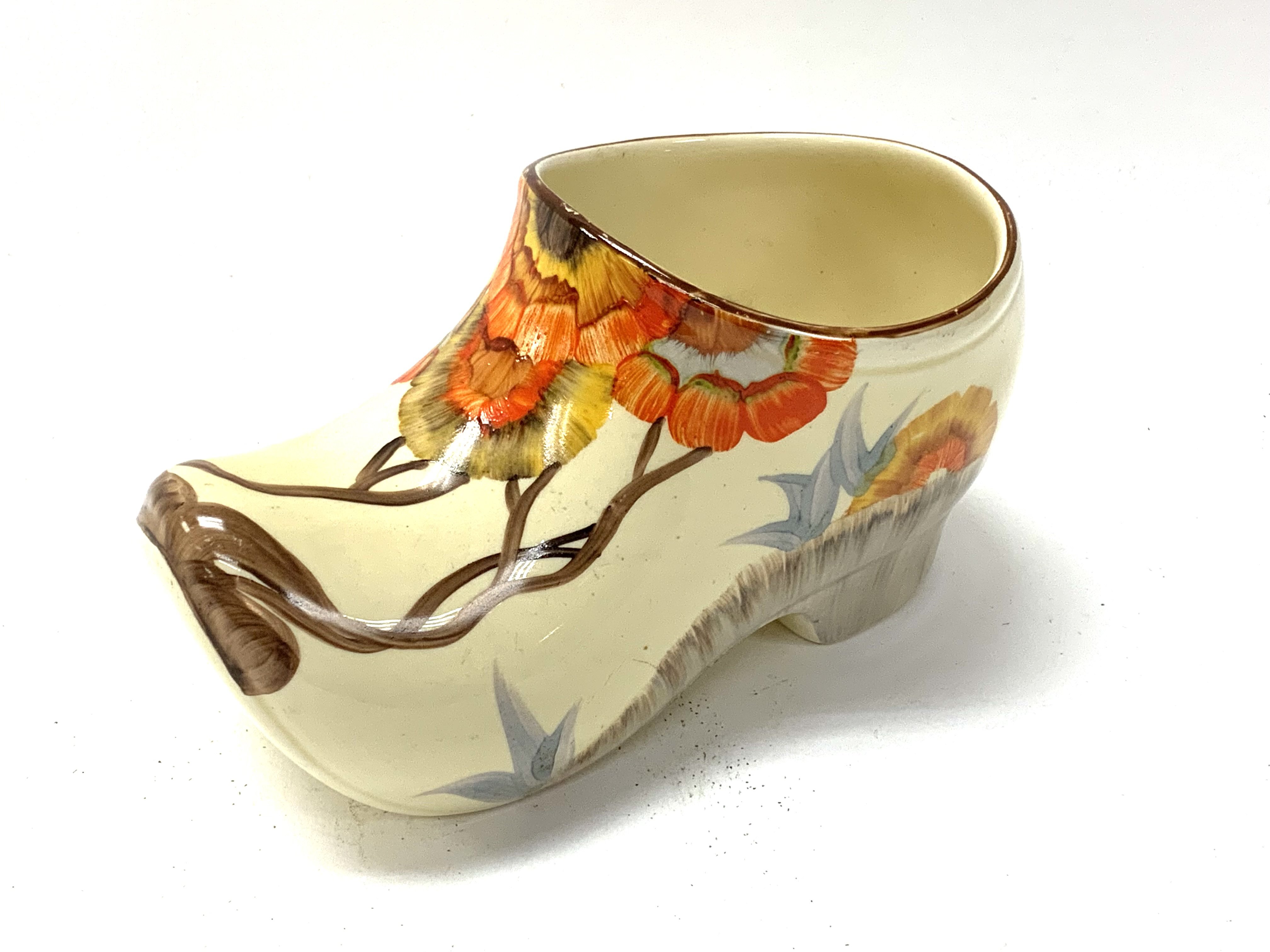 A Clarice Cliff Rodanth pattern clog. 14cm. (D) no viable damage or restoration.