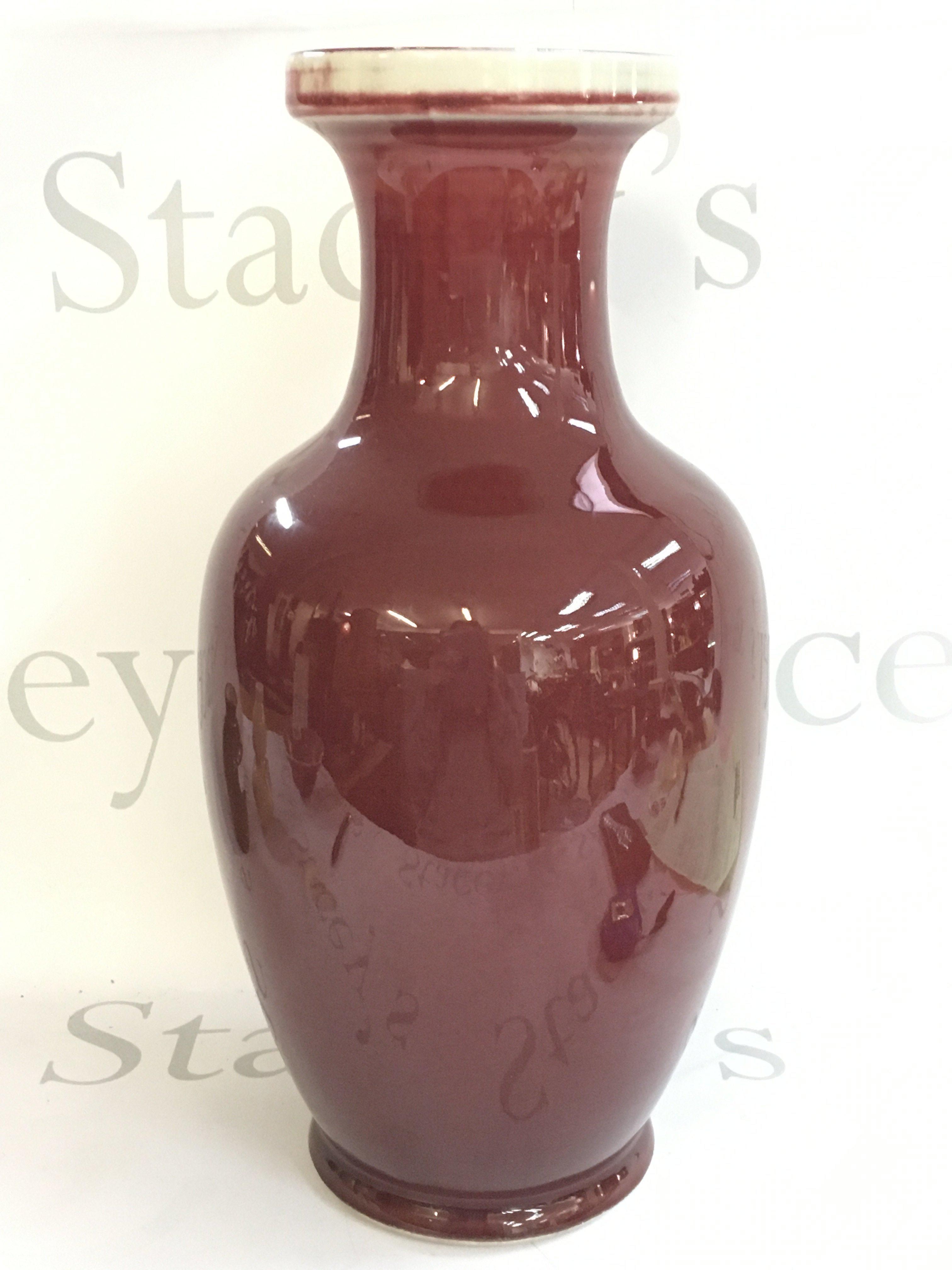 A Chinese Sang De Boeuf vase, 36.5cm tall. No obvious damage or restoration. This lot cannot be posted