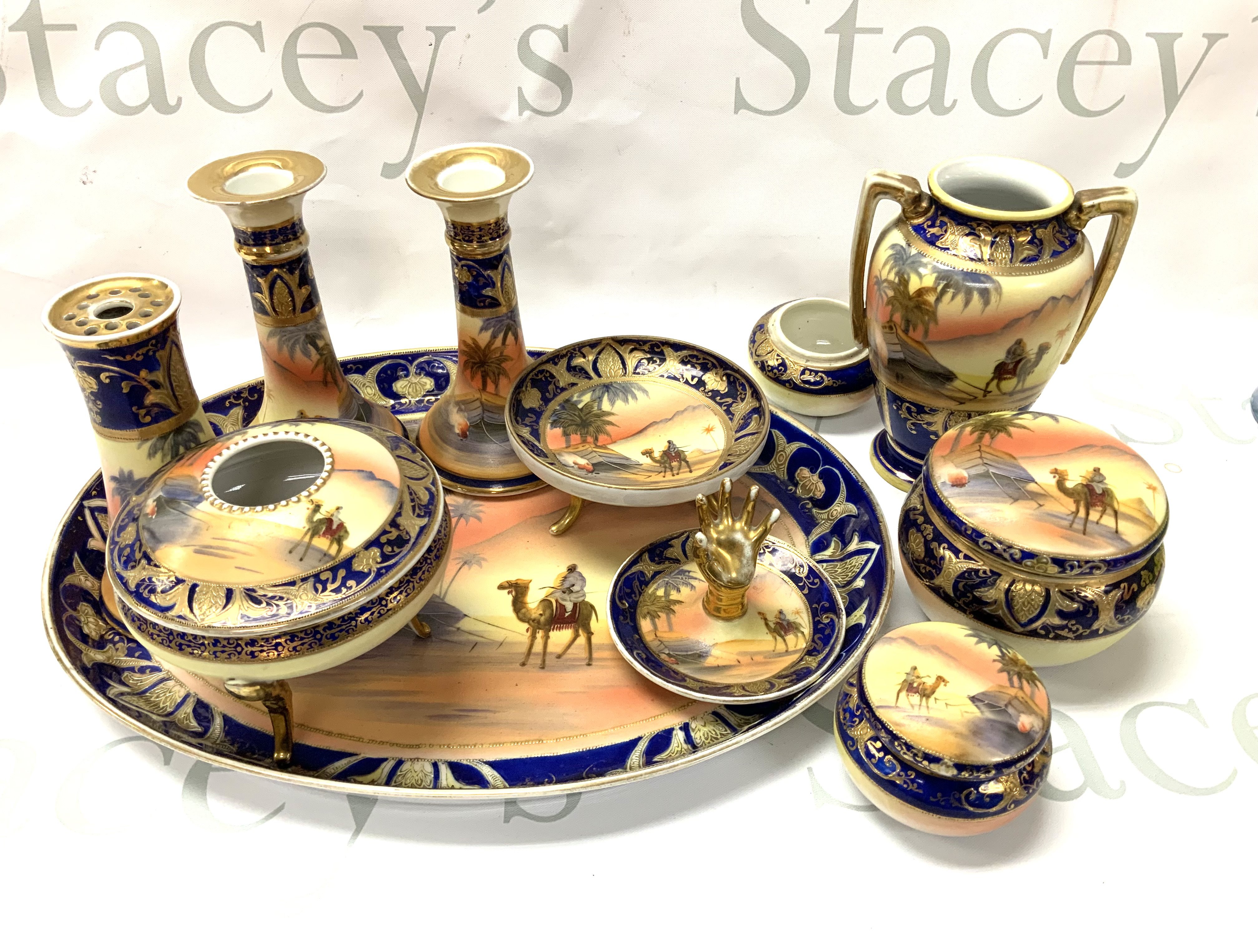 A Noritake porcelain dressing table set with camel and desert scene. (D)