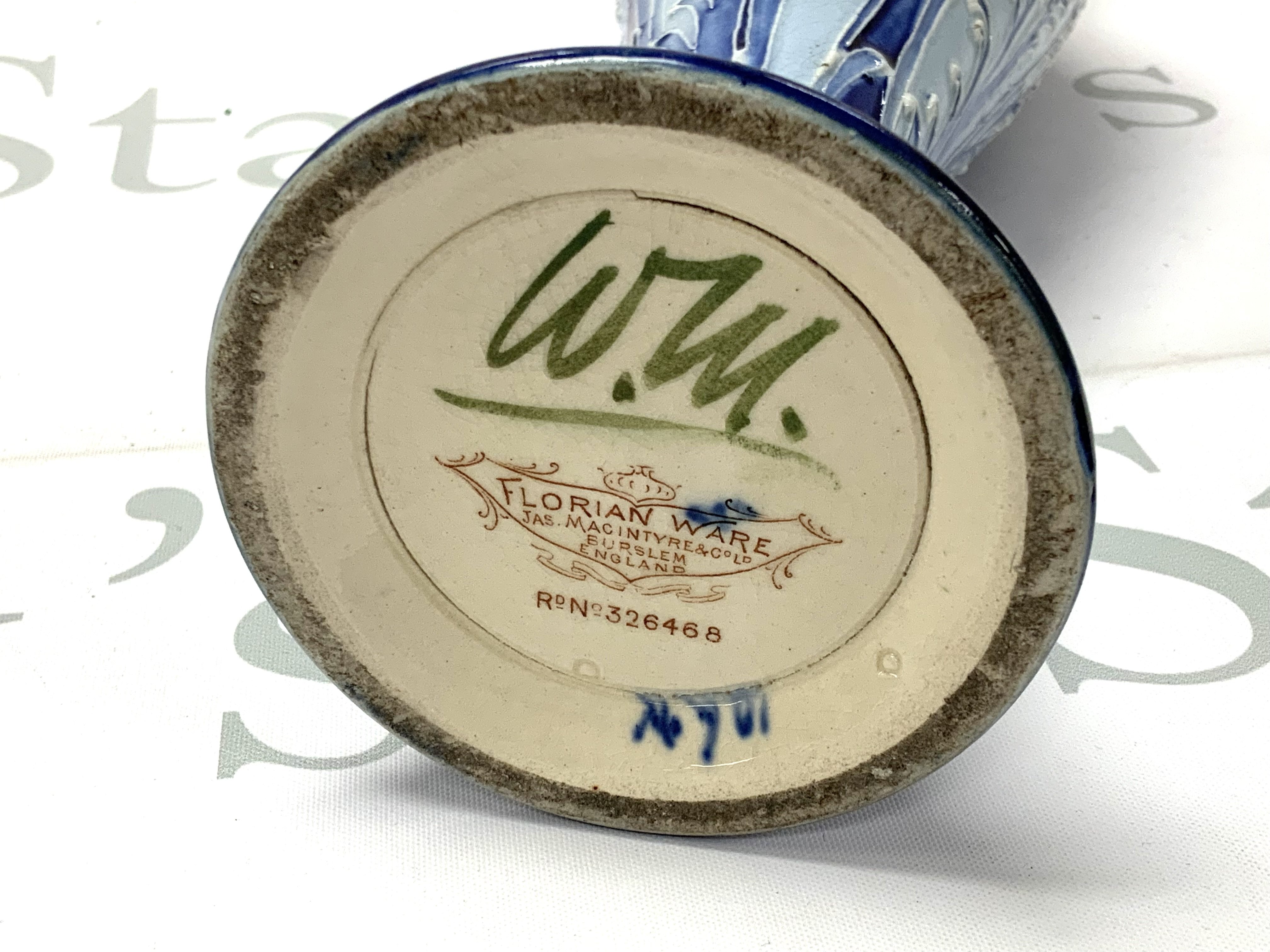 A Macintyre Florian Ware vase. 30cm (D) Slight restoration to rim.