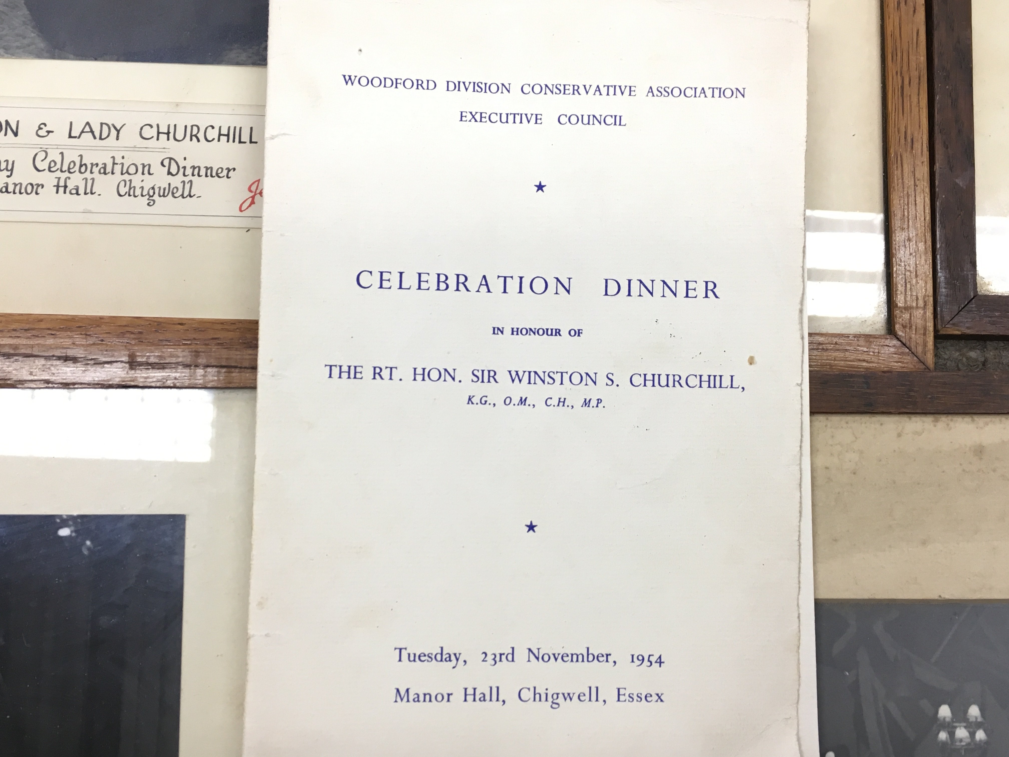 Original Winston Churchill 80th birthday celebration dinner photos at Manor Hall Chigwell, some framed. Also including the menu. This lot cannot be posted