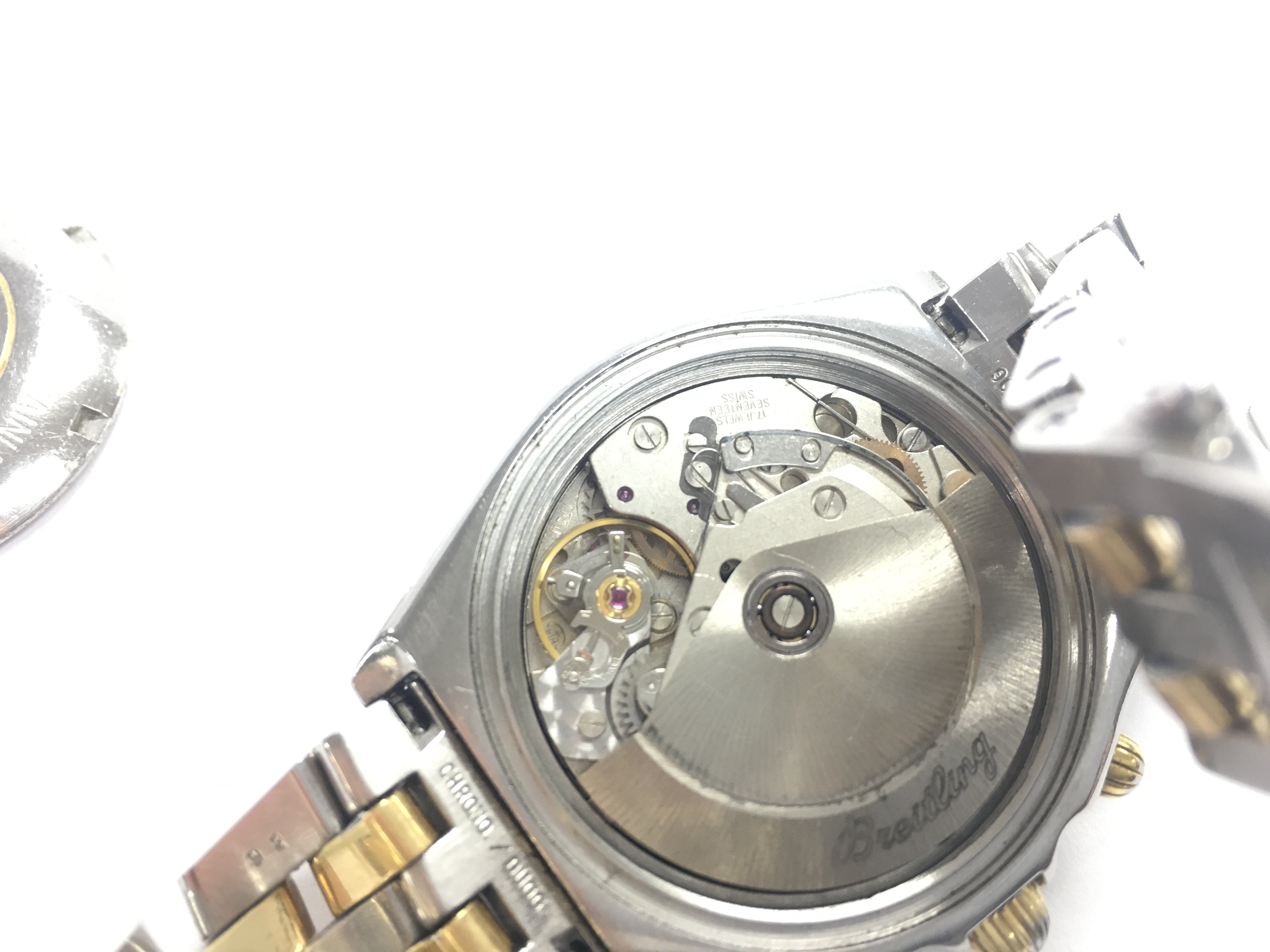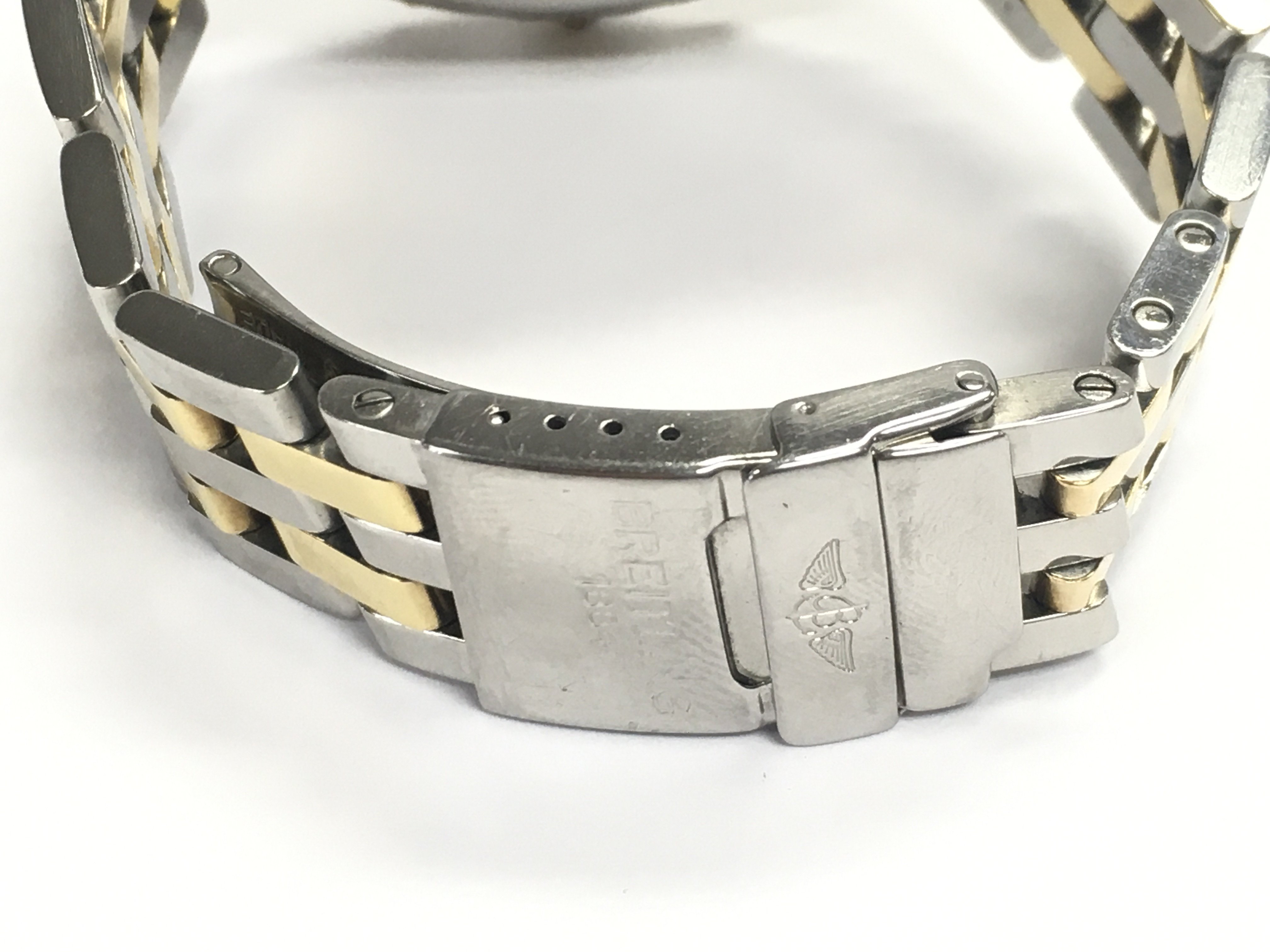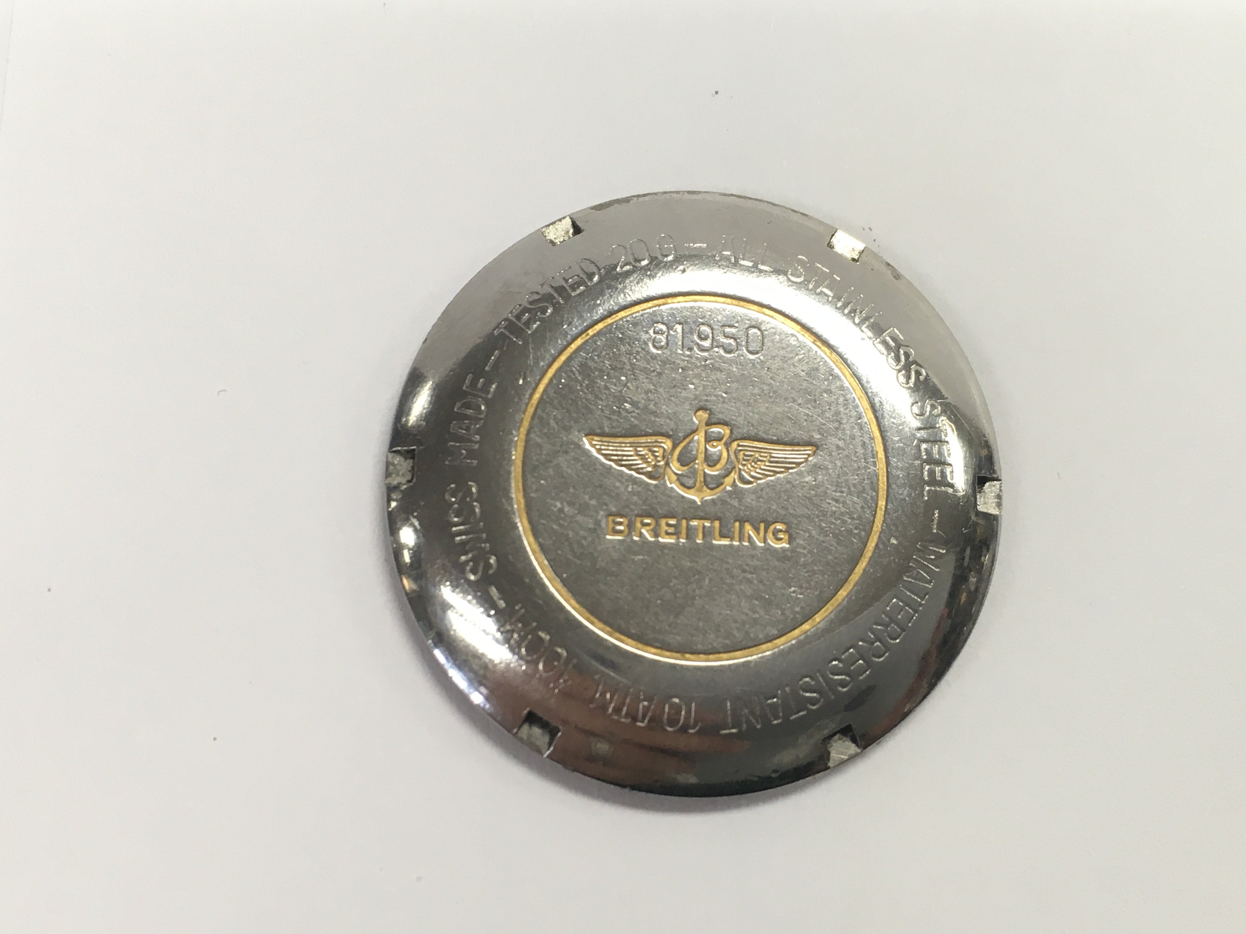 A Breitling chronomat wrist watch with green dial. Case is approximately 40mm excluding crown. Seen running.