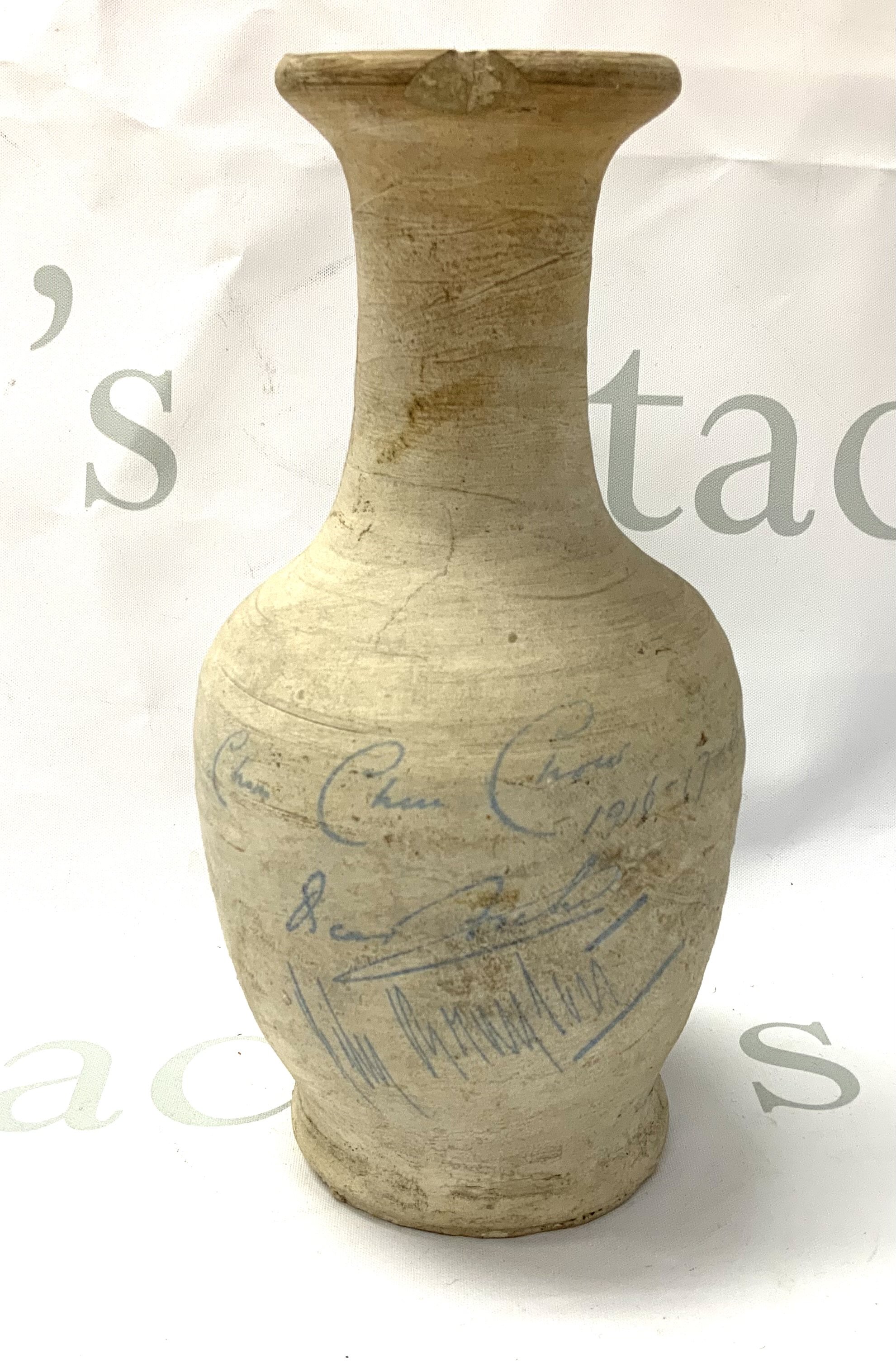 An unusual earthenware pot, A Souvenir turned on stage during a performance of the musical “Chu Chin Chow” between 1916-21 and signed by Oscar Asche and Lily Barton.