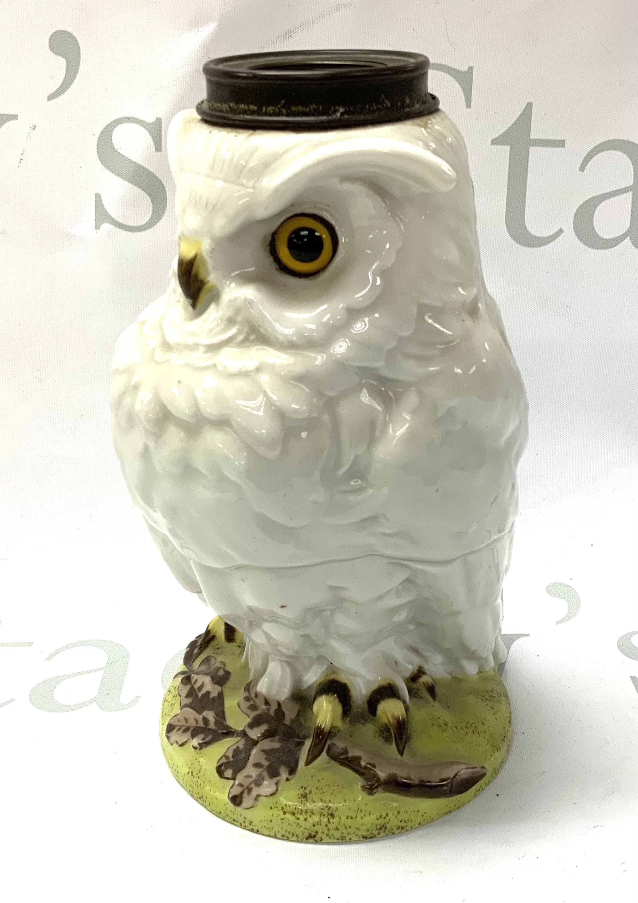 A William Whitley ceramic oil lamp with glass eyes. 18.5cm. (Top section missing).