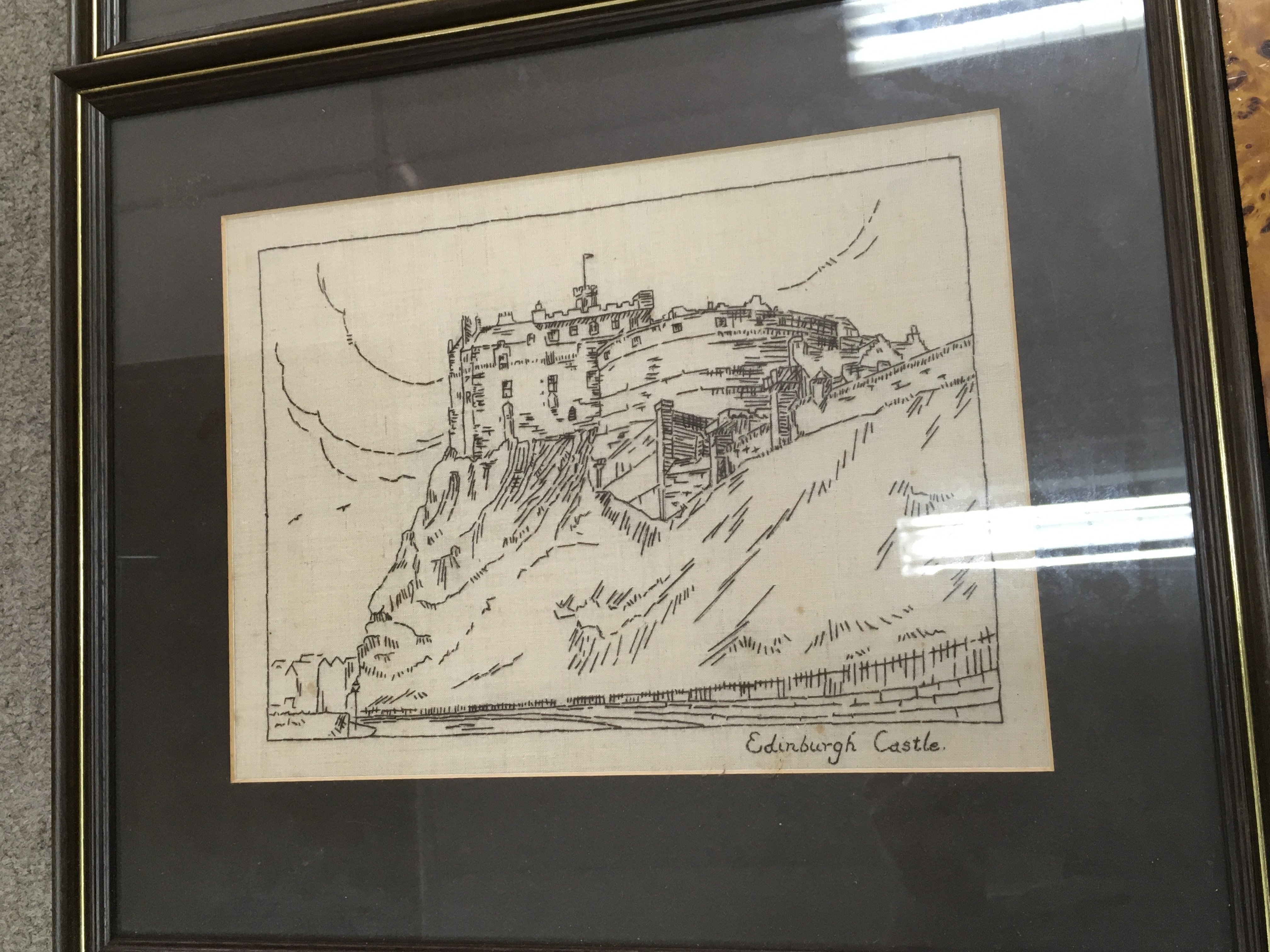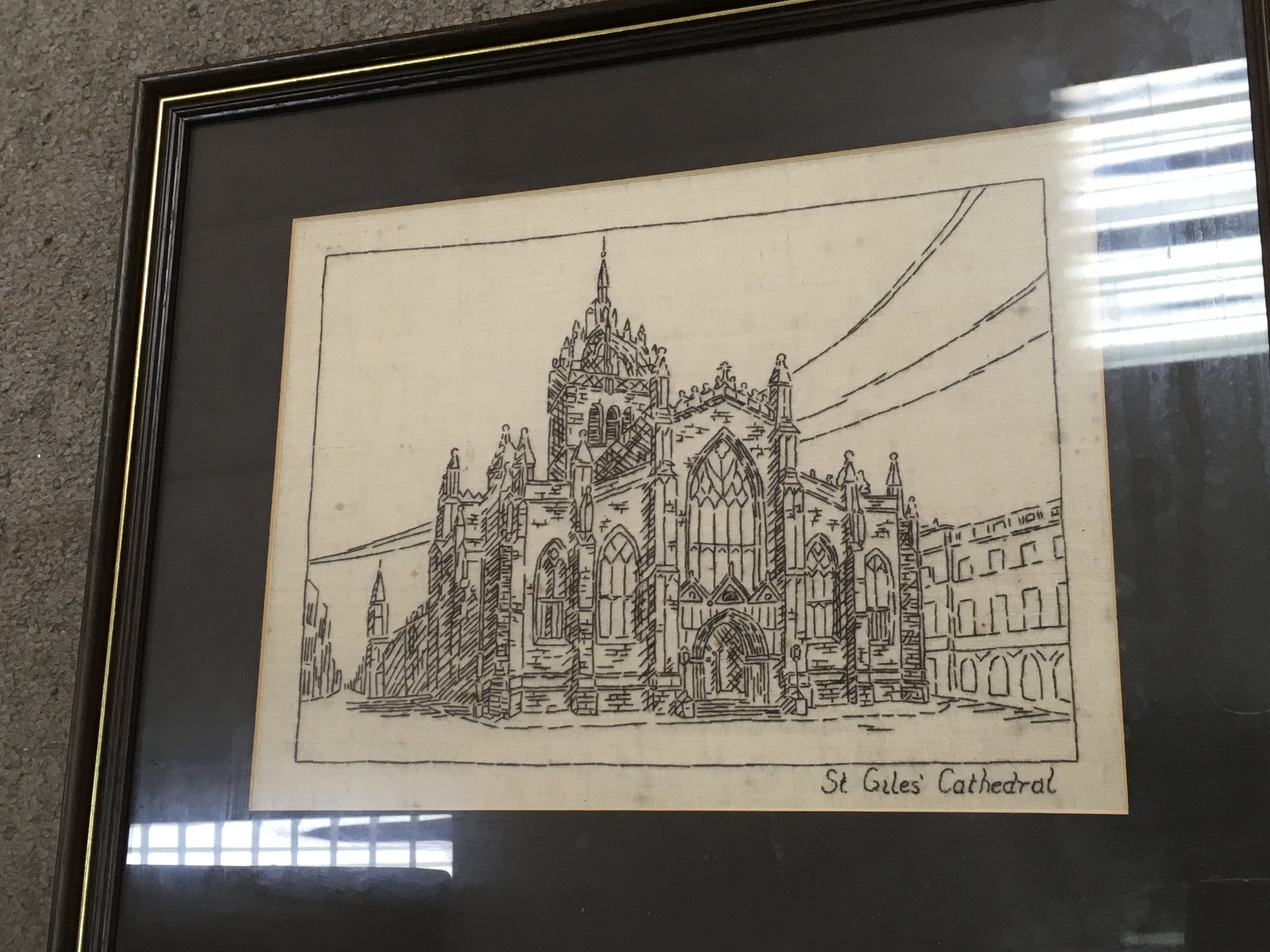 Collection of four framed pictures including Edinburgh castle and st Giles cathedral.