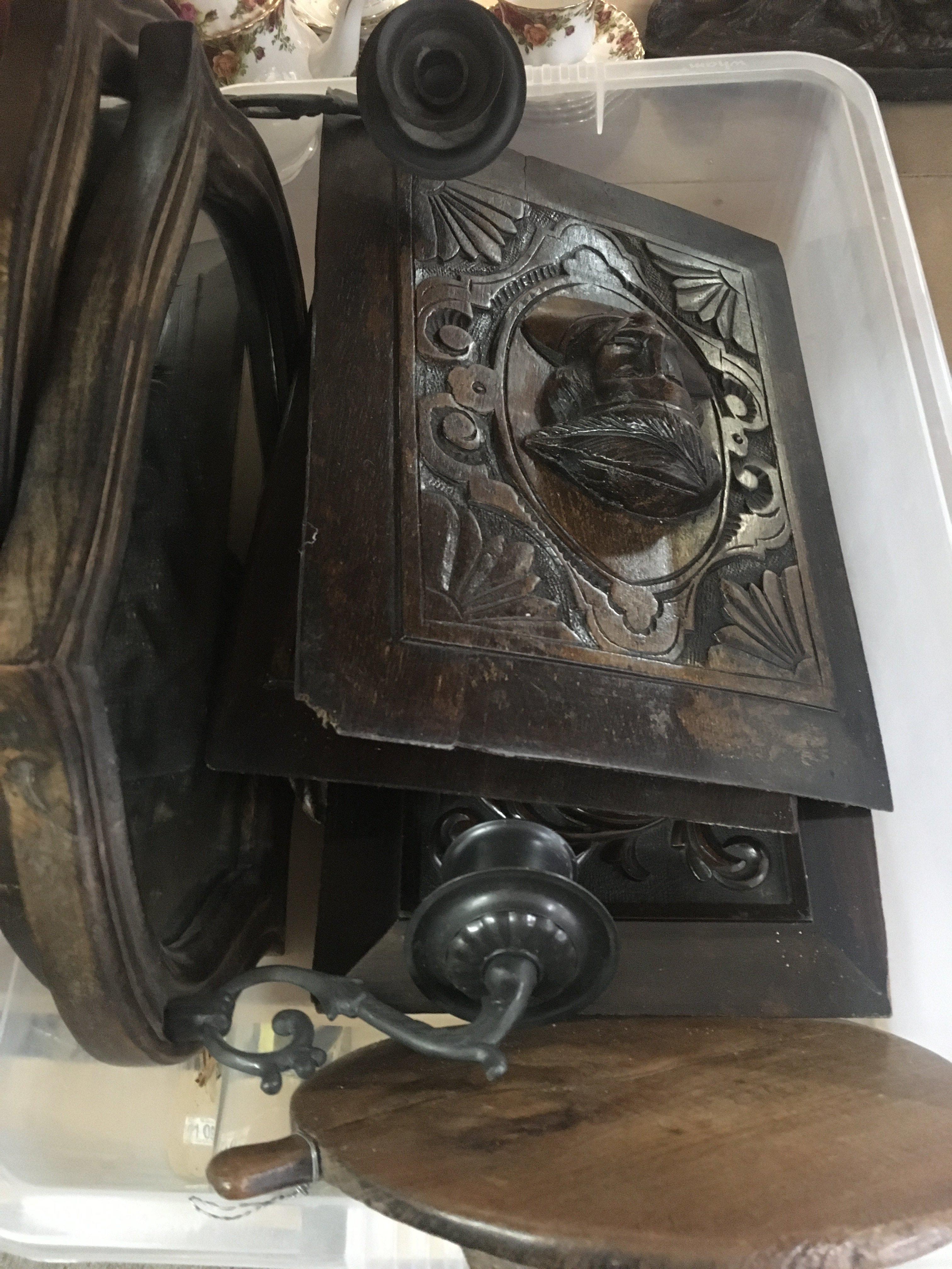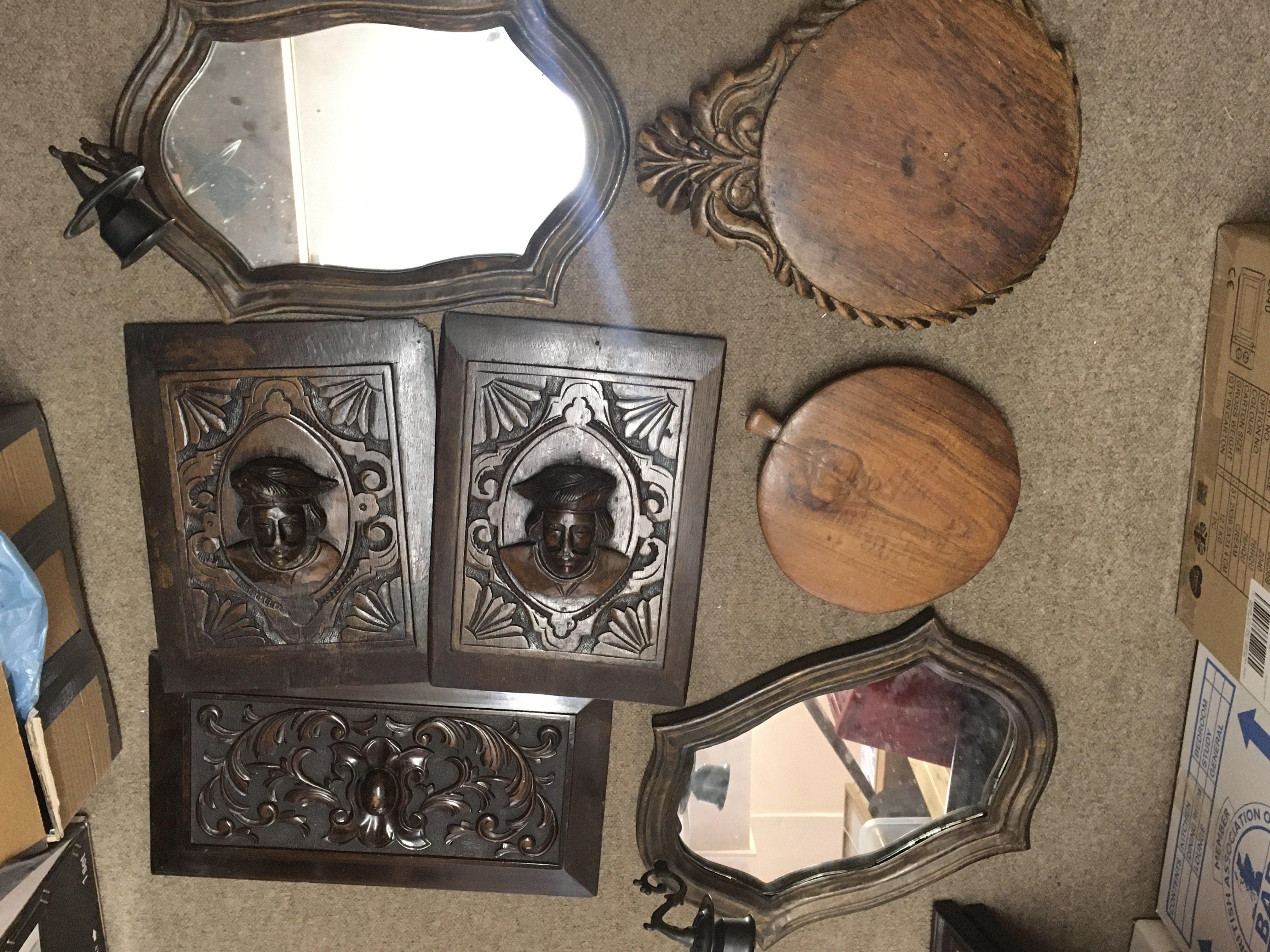 Carved wooden panels, sconces etc. this lot cannot be posted