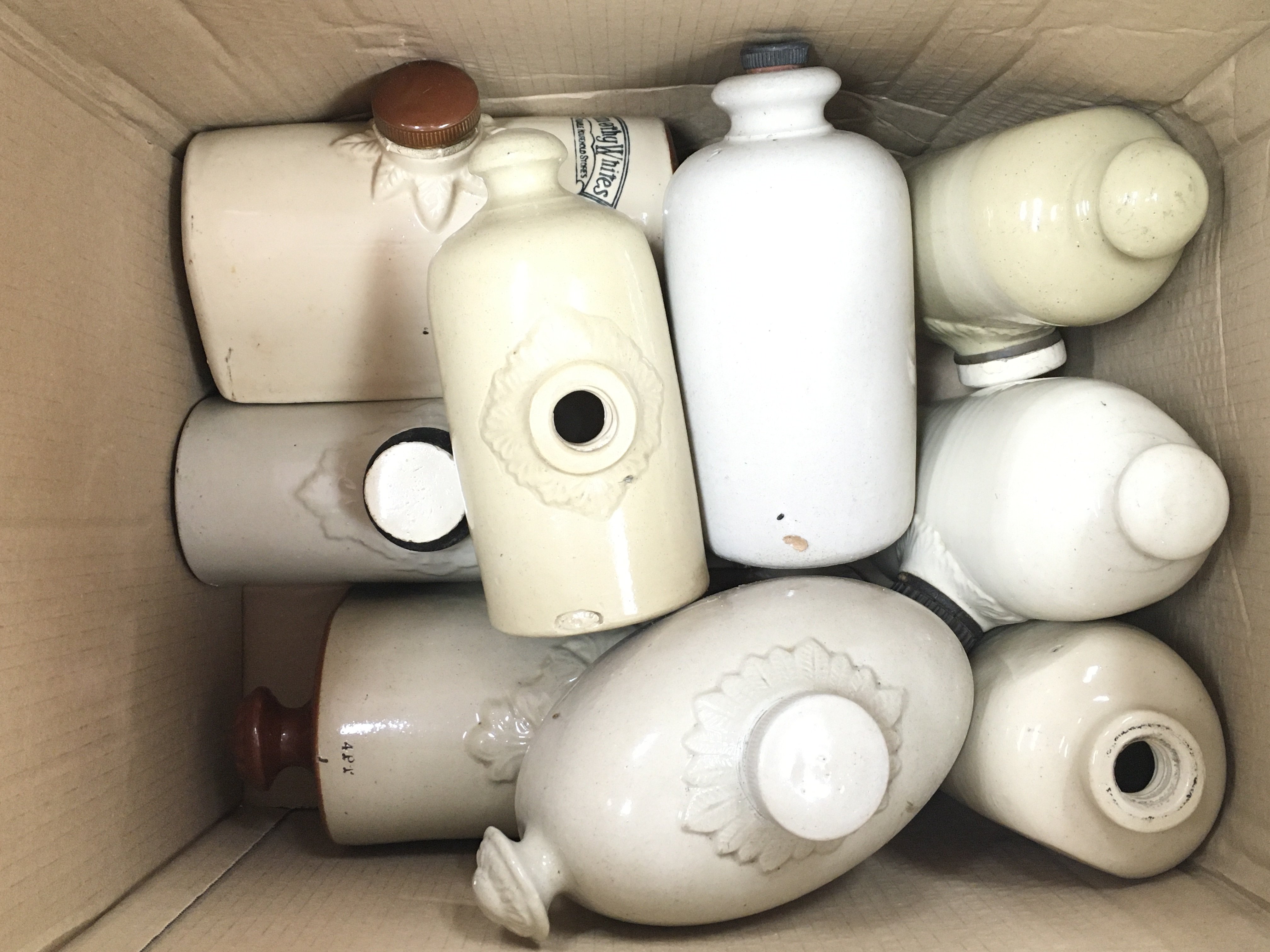 A collection of stoneware bed warmers. Postage D
