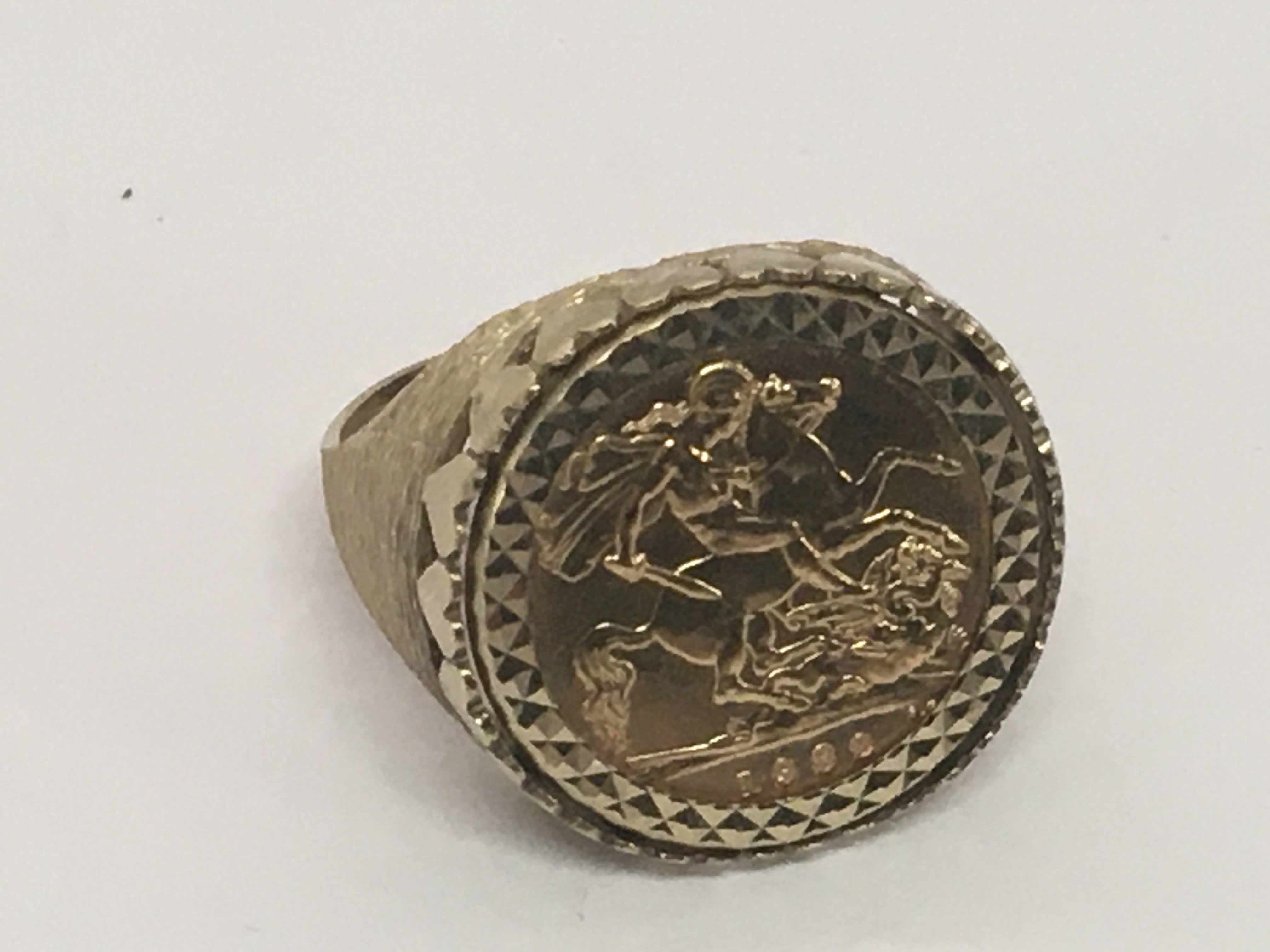 A 1982 gold half sovereign set in a 9carat gold ring total weight 9.5g