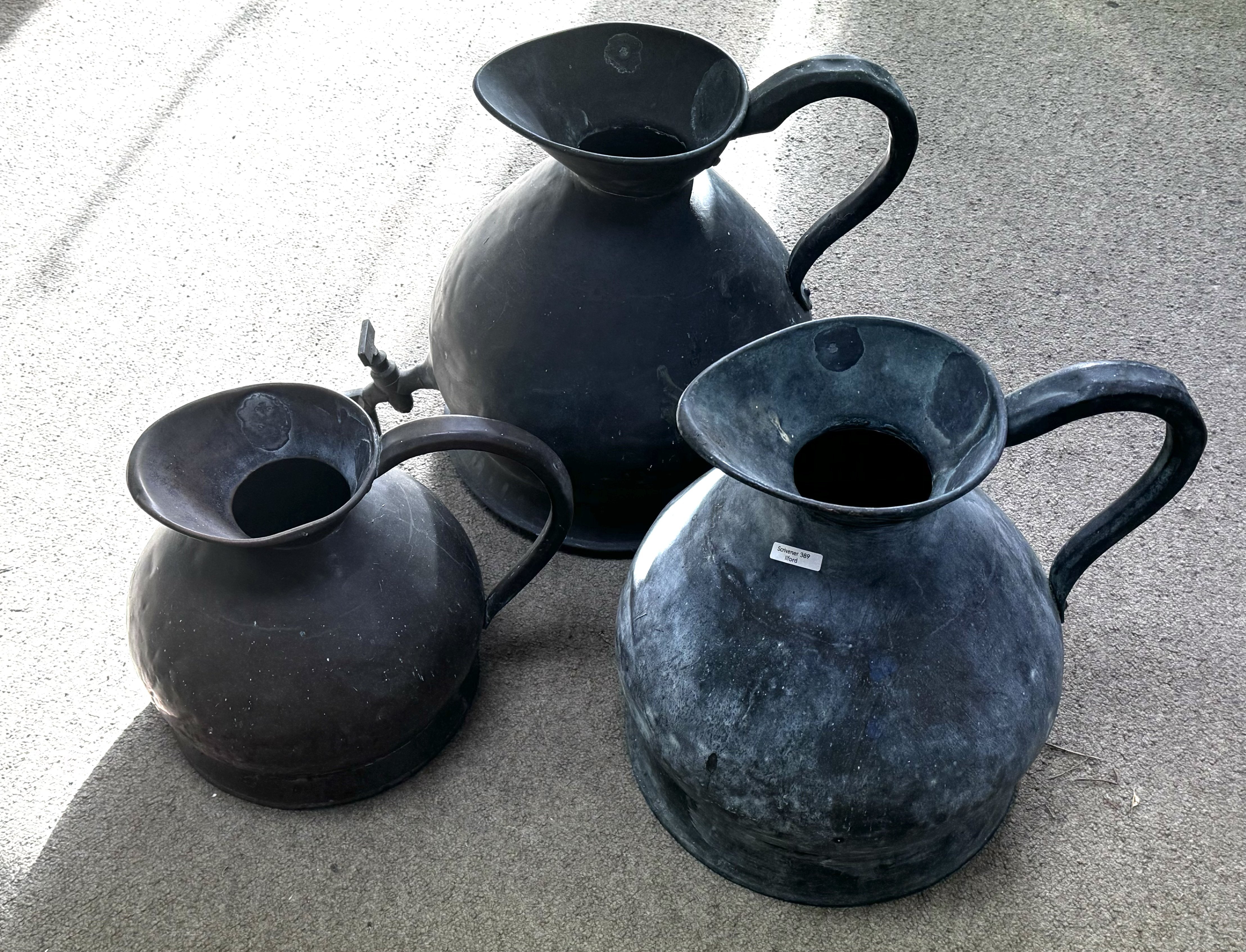 2 Large Victorian 2 Gallon water jugs (1 with tap) together with a 1 gallon jug. (D)