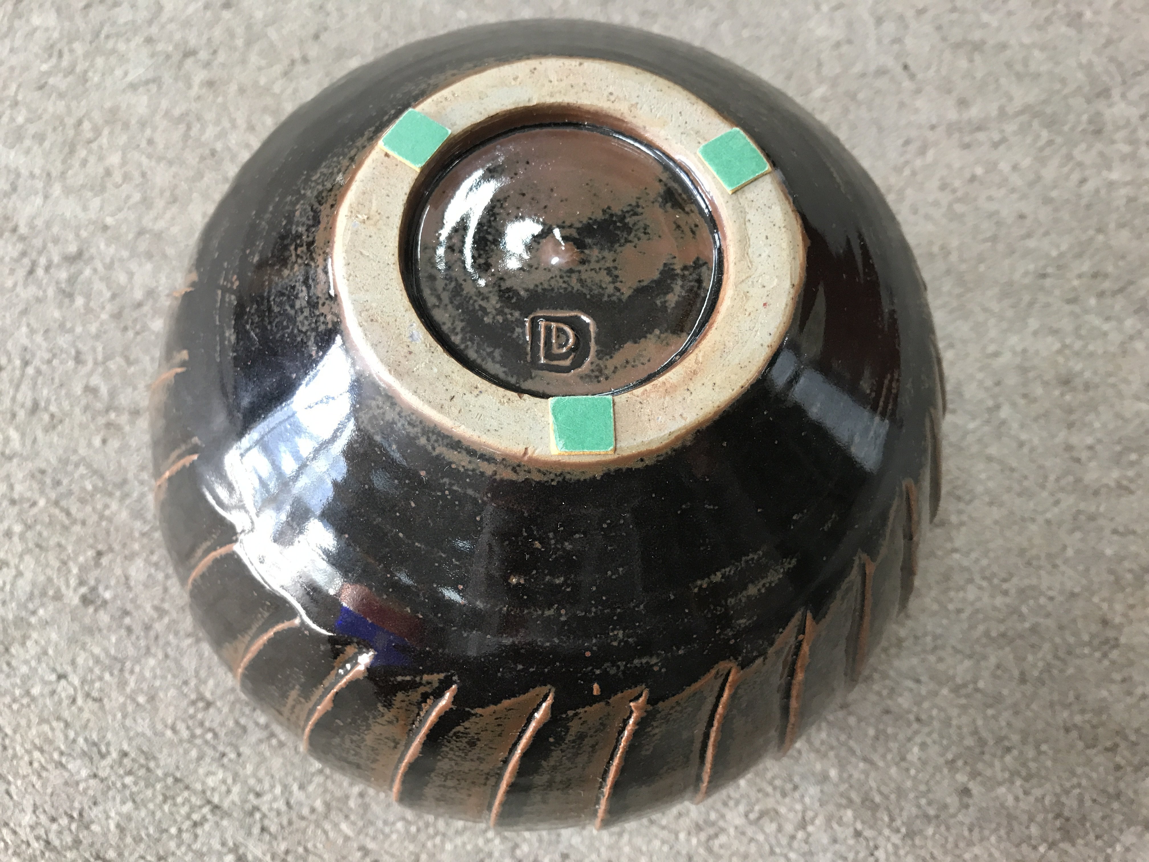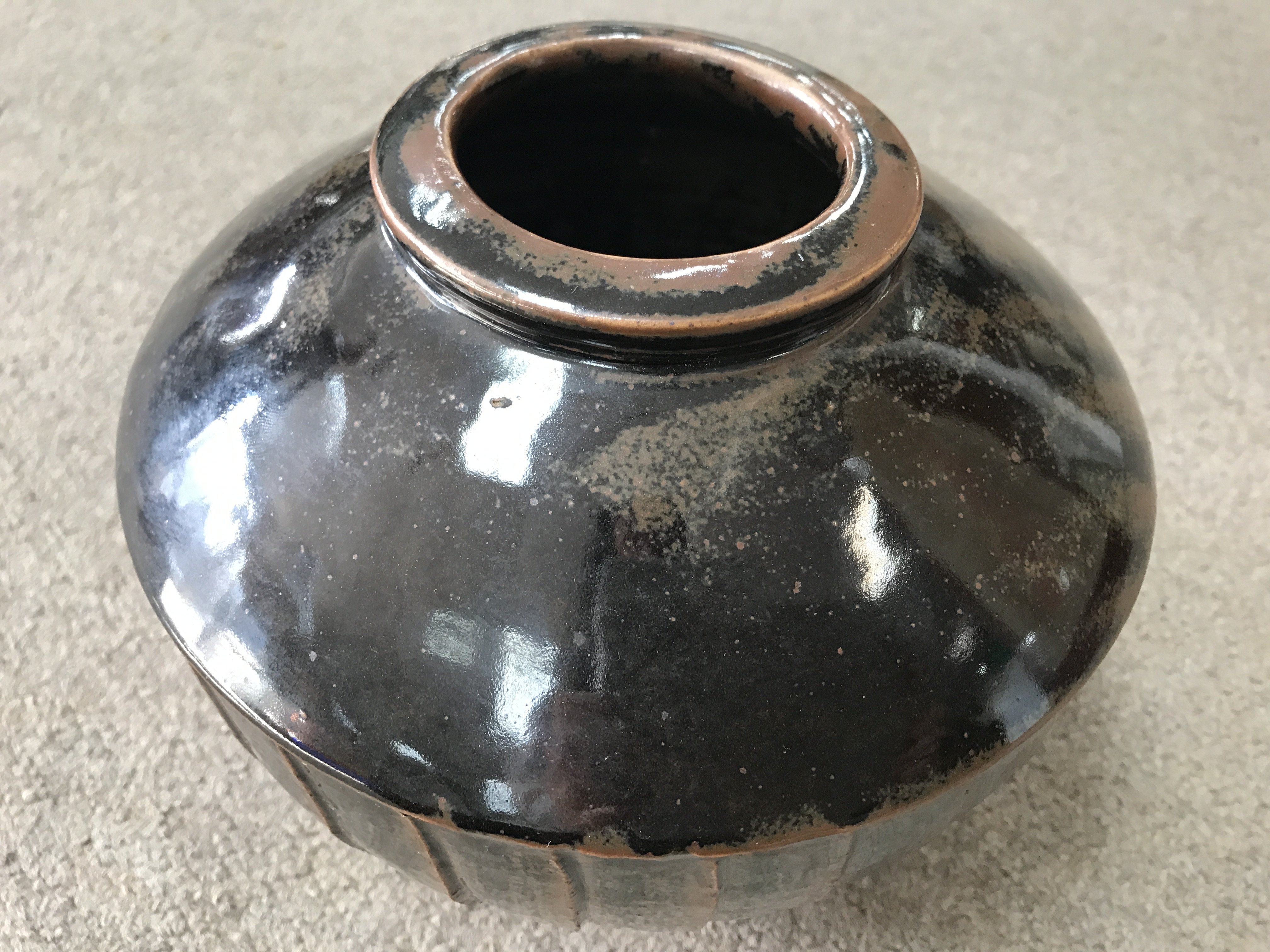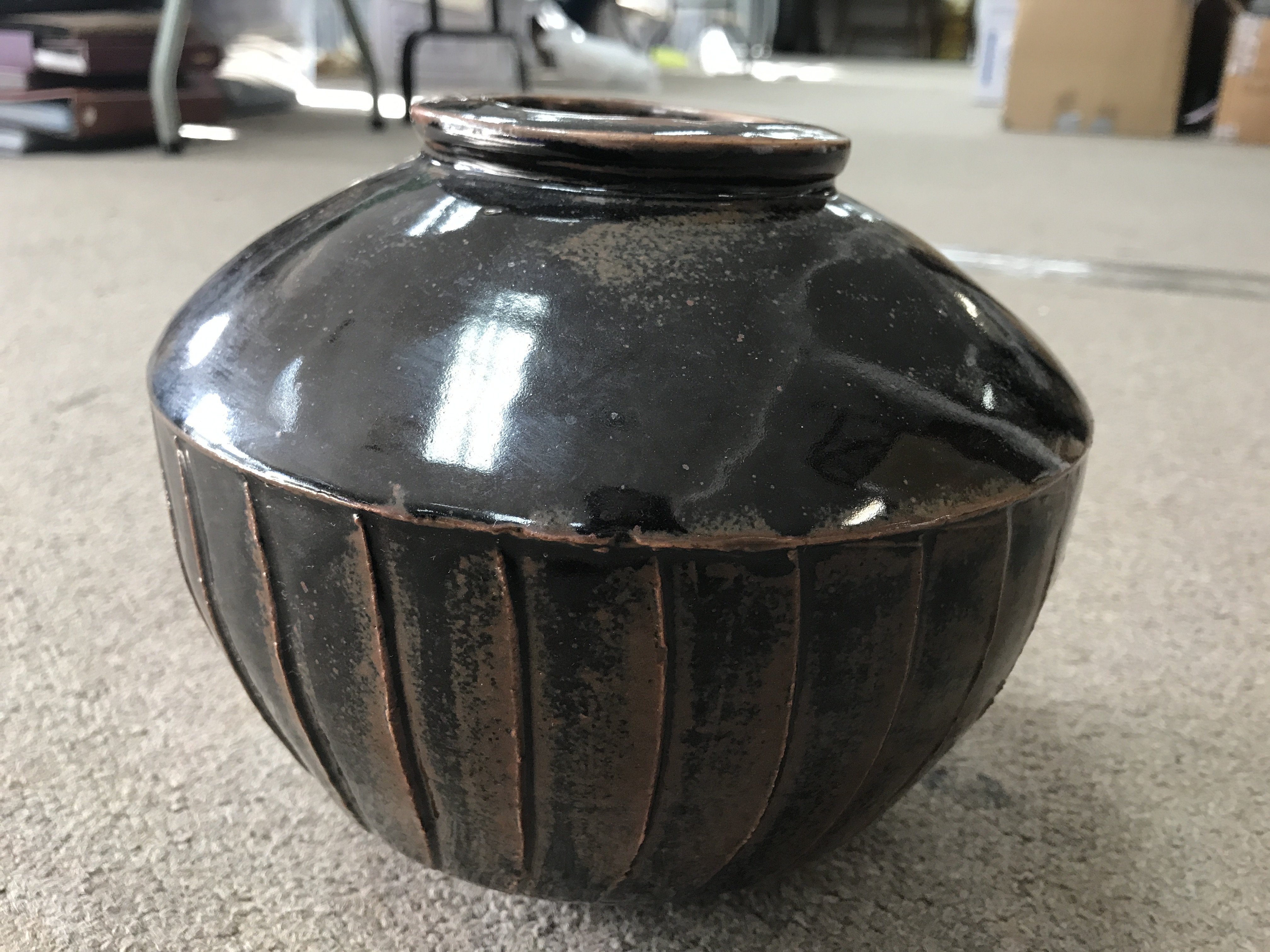 A David Leach stoneware vase with brown glaze and incised decoration. 18cm