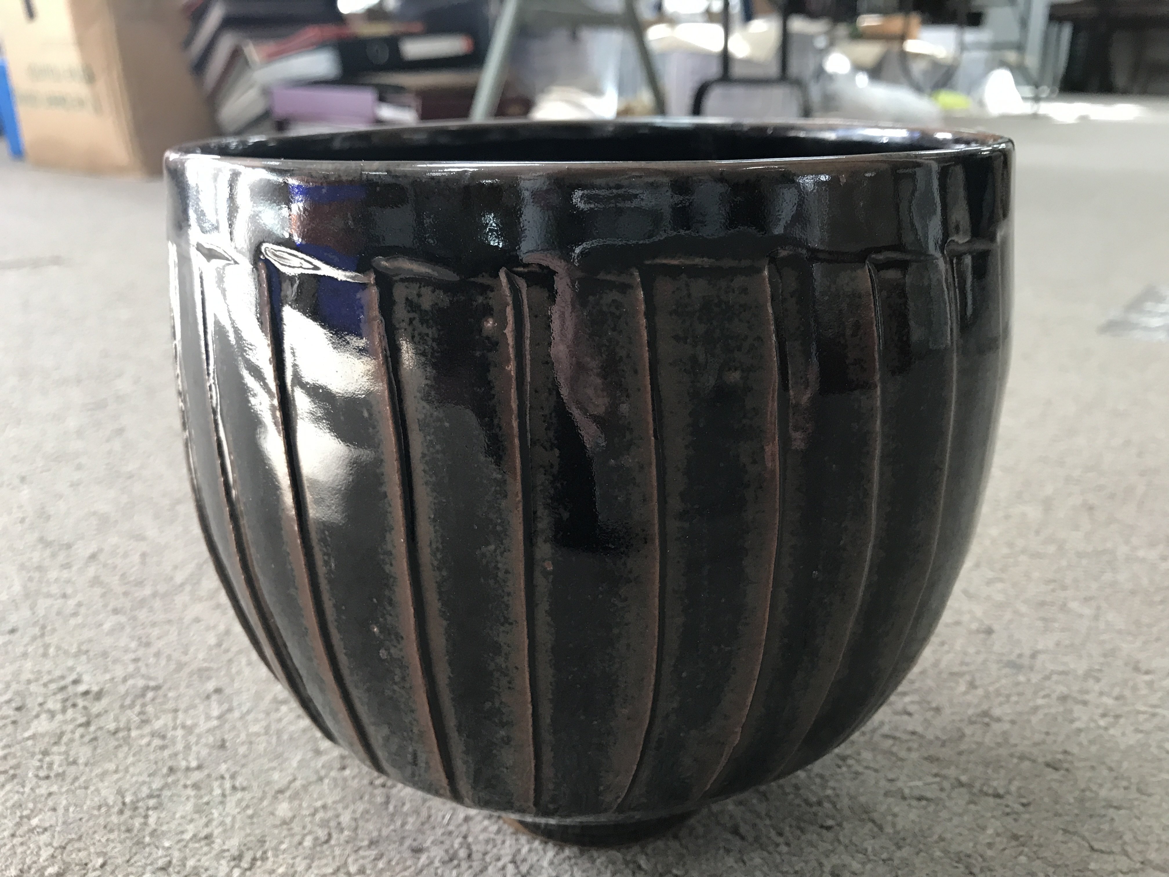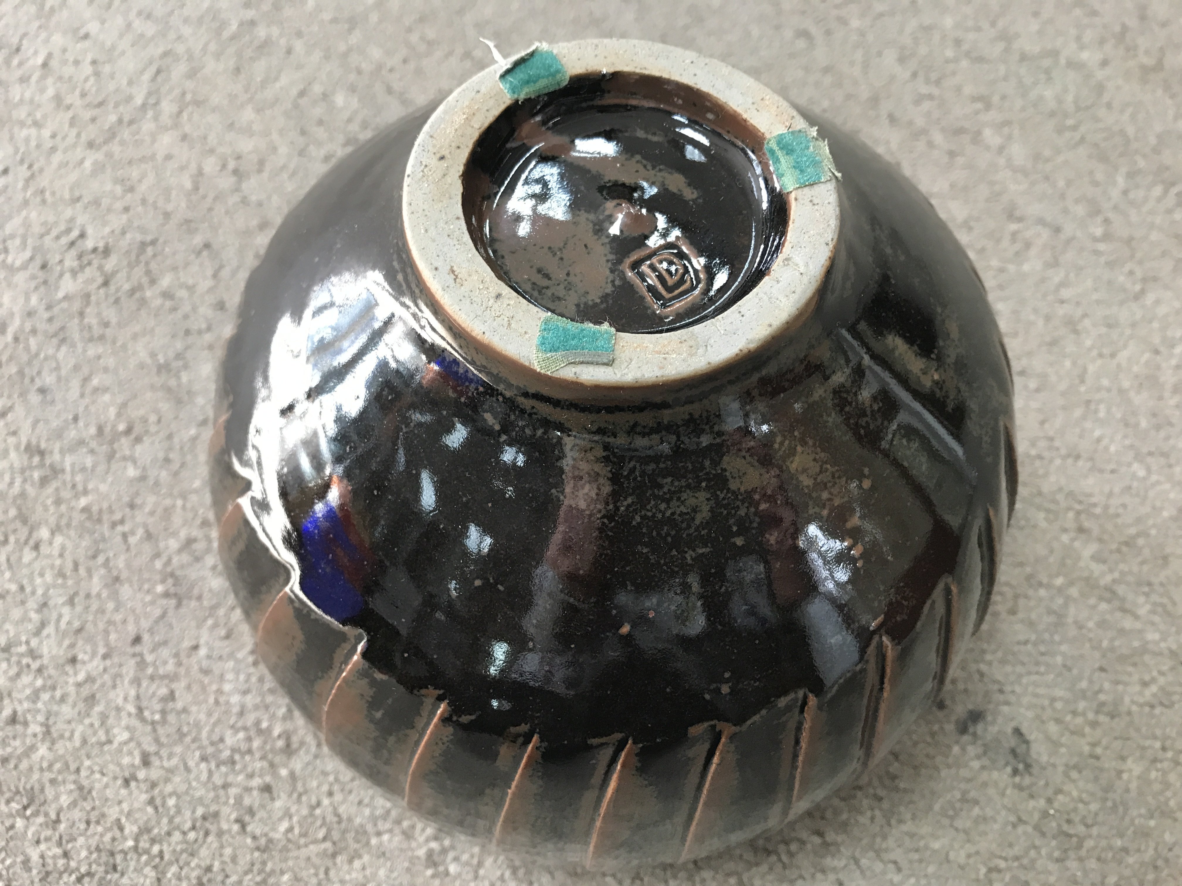 A David Leach stoneware bowl with brown glaze and incised decoration. 18cm