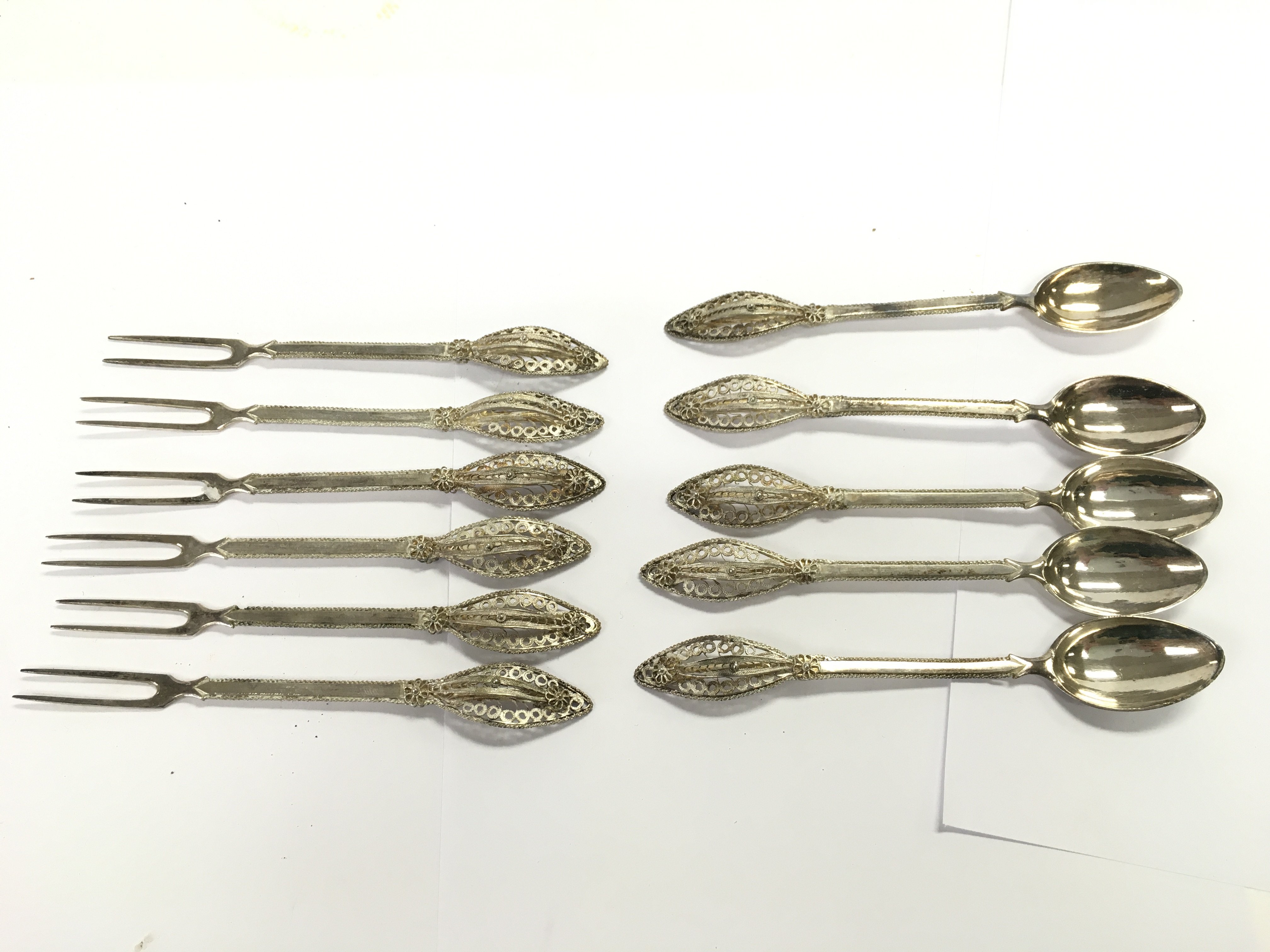 Ornate silver filigree forks and spoons. 800 silver approximately 200g total. Postage B