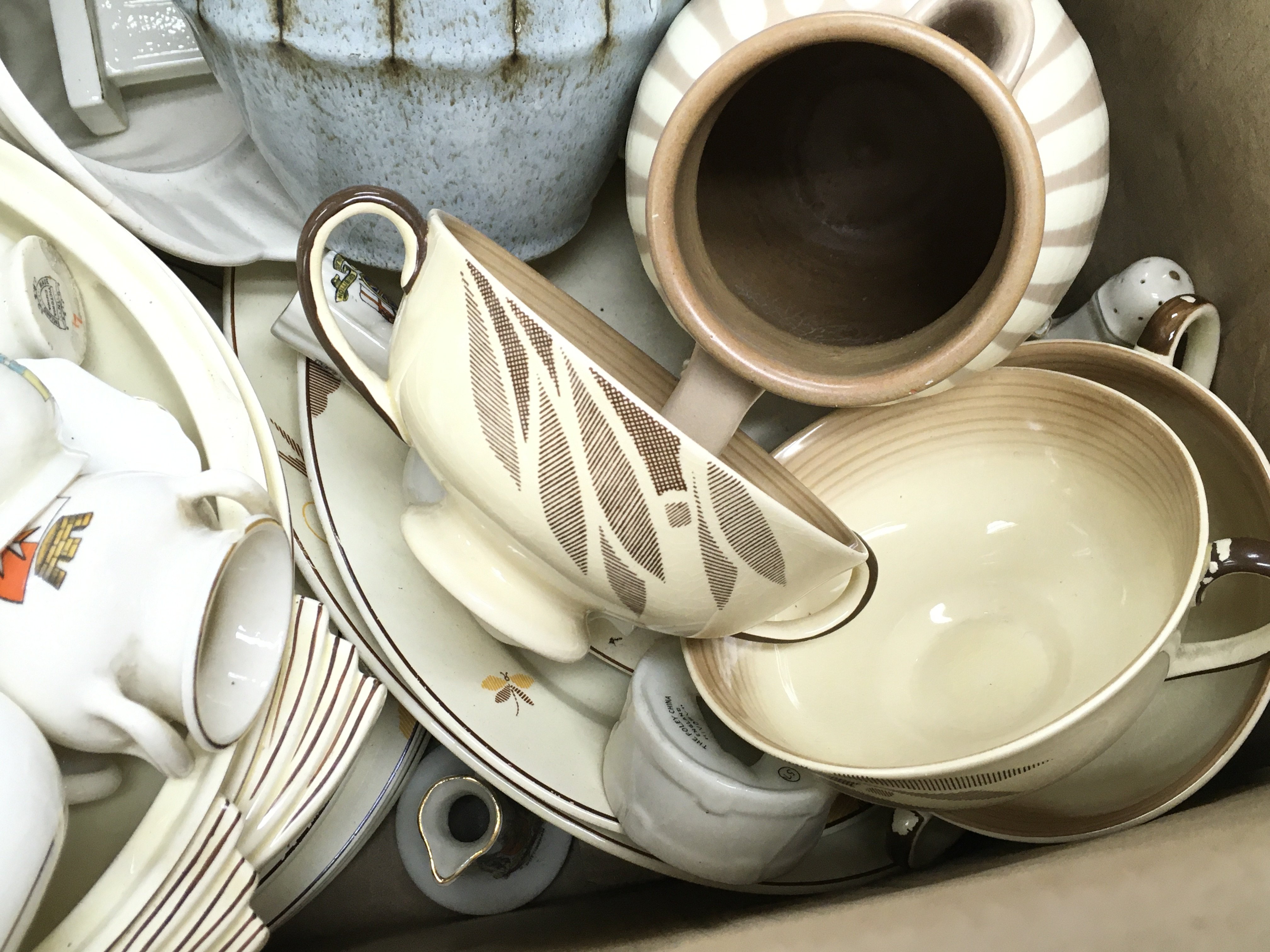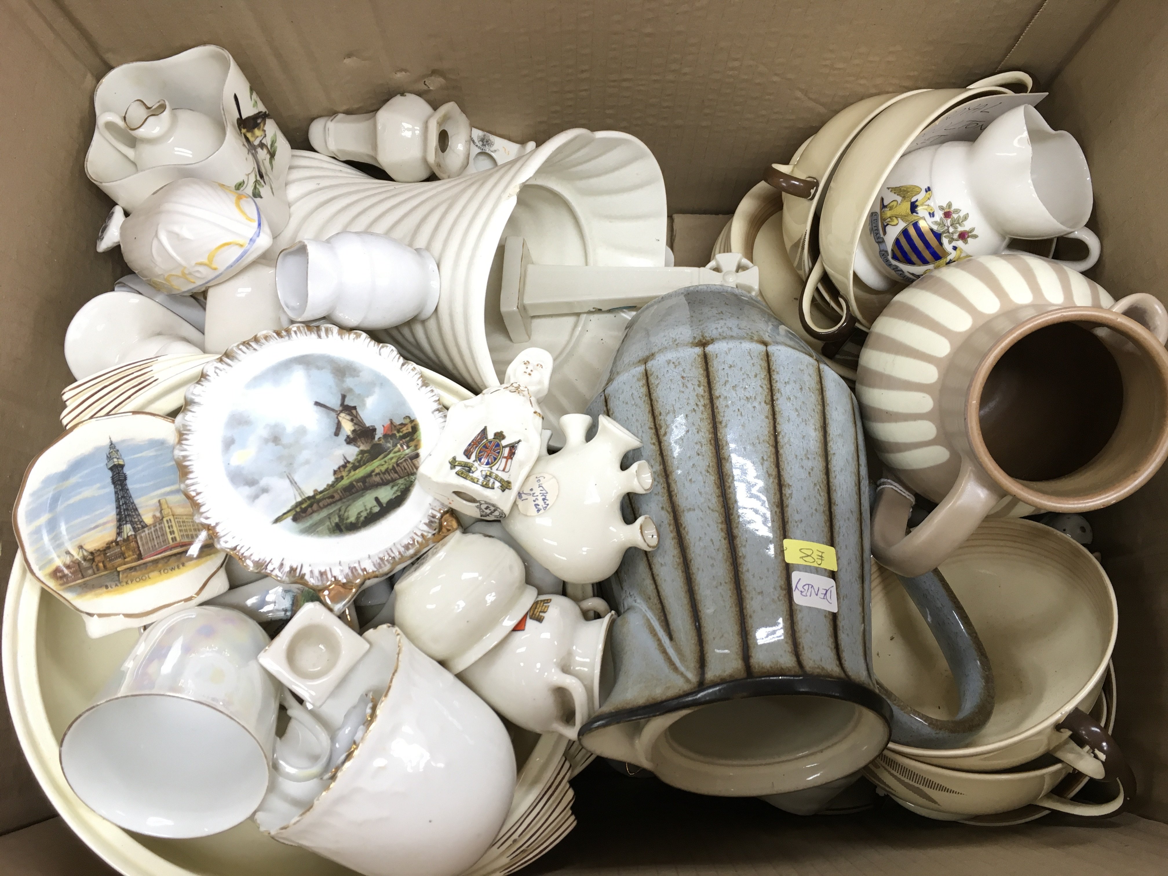 A box containing various ceramic items including Denby and royal Doulton etc Postage D