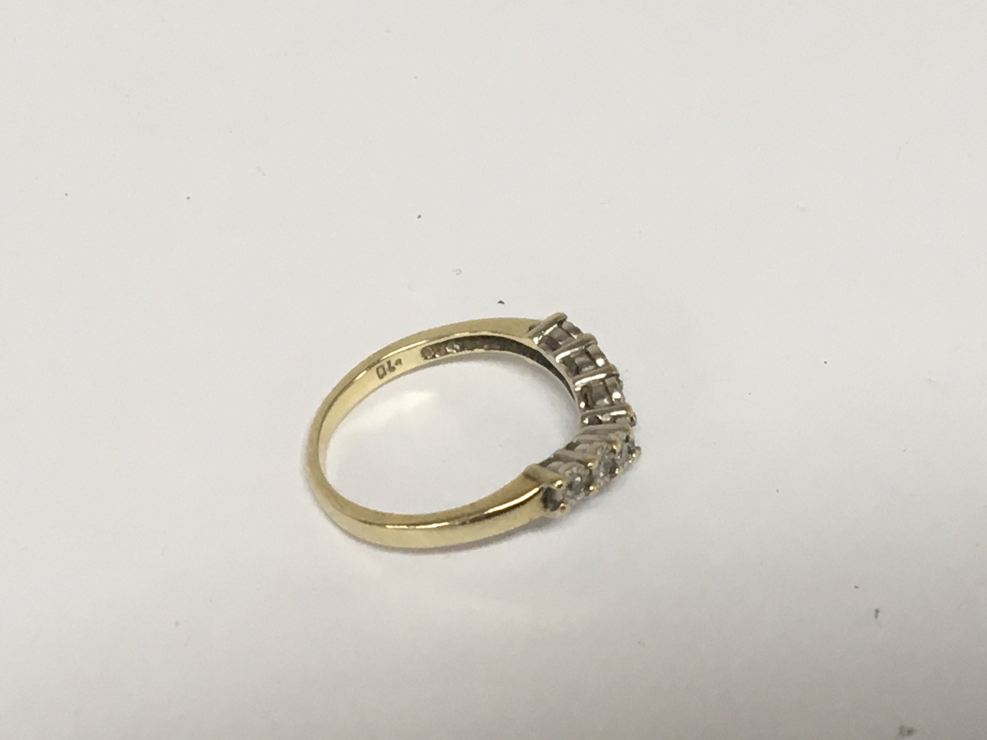 A 9carat gold ring set with a row of small diamonds. Ring size N. Weight 2g