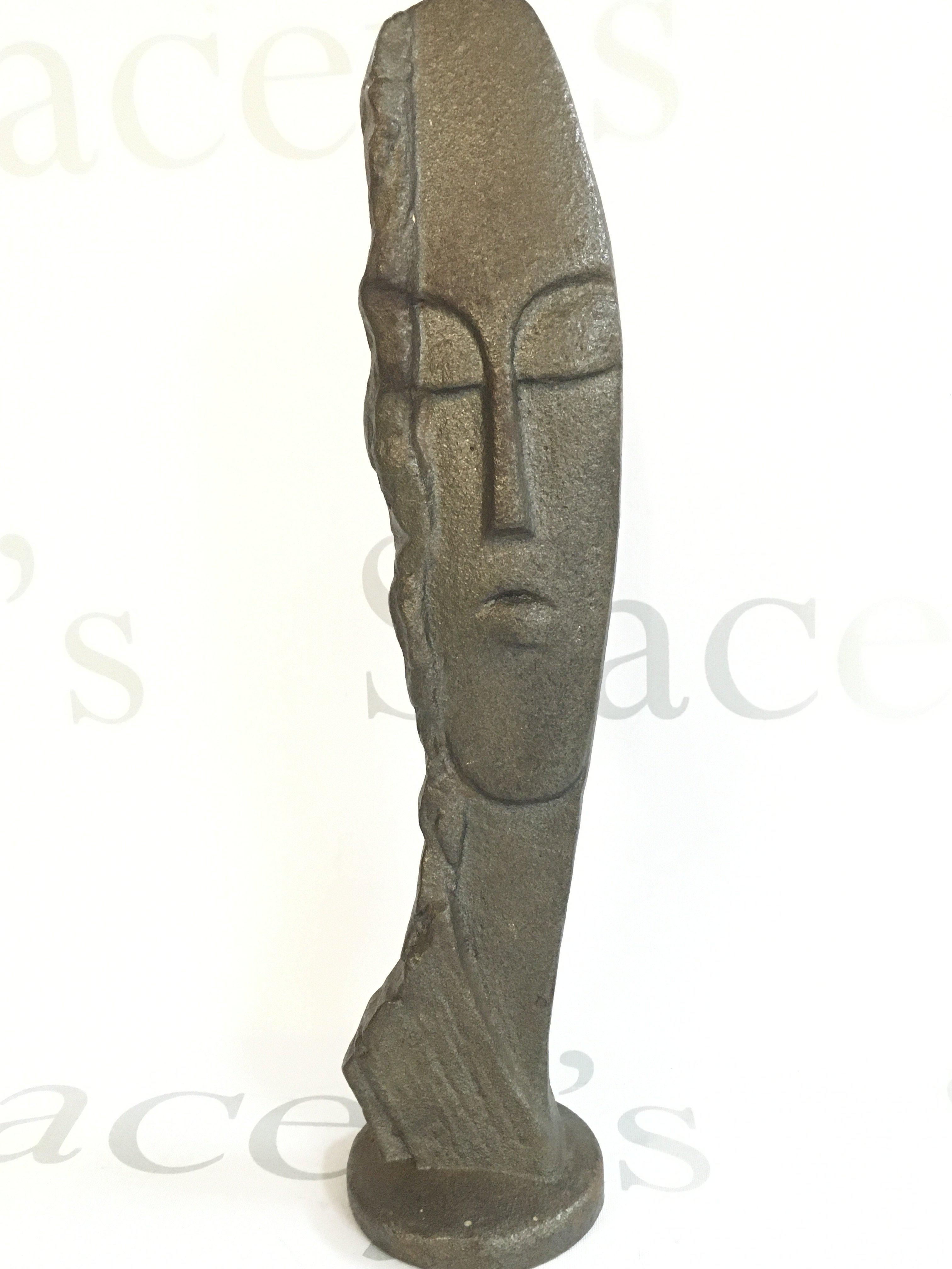 A Modigliani Style iron Head ornament, 30cm tall. postage category b